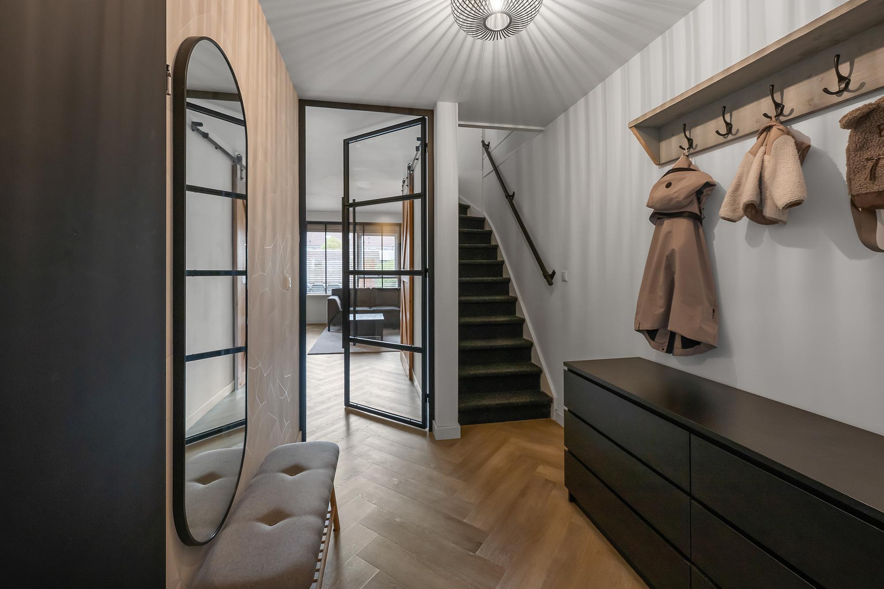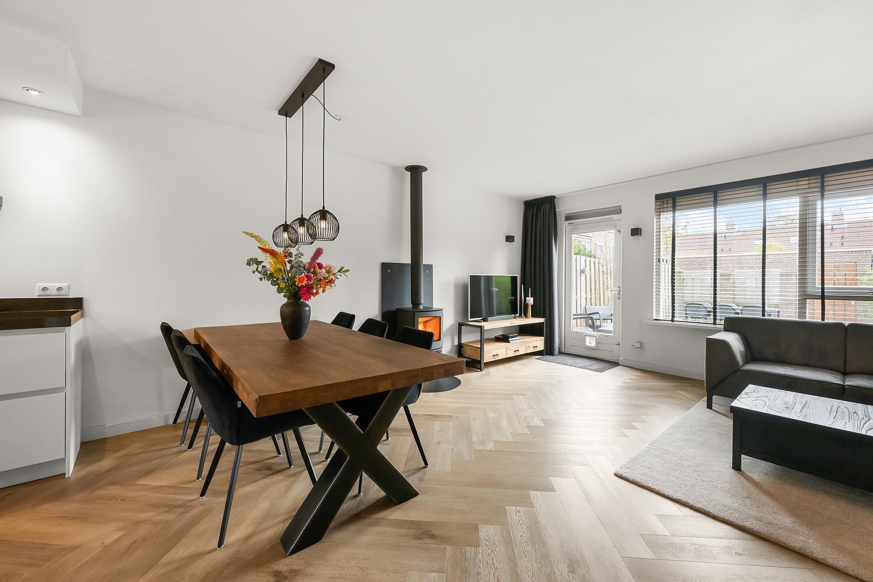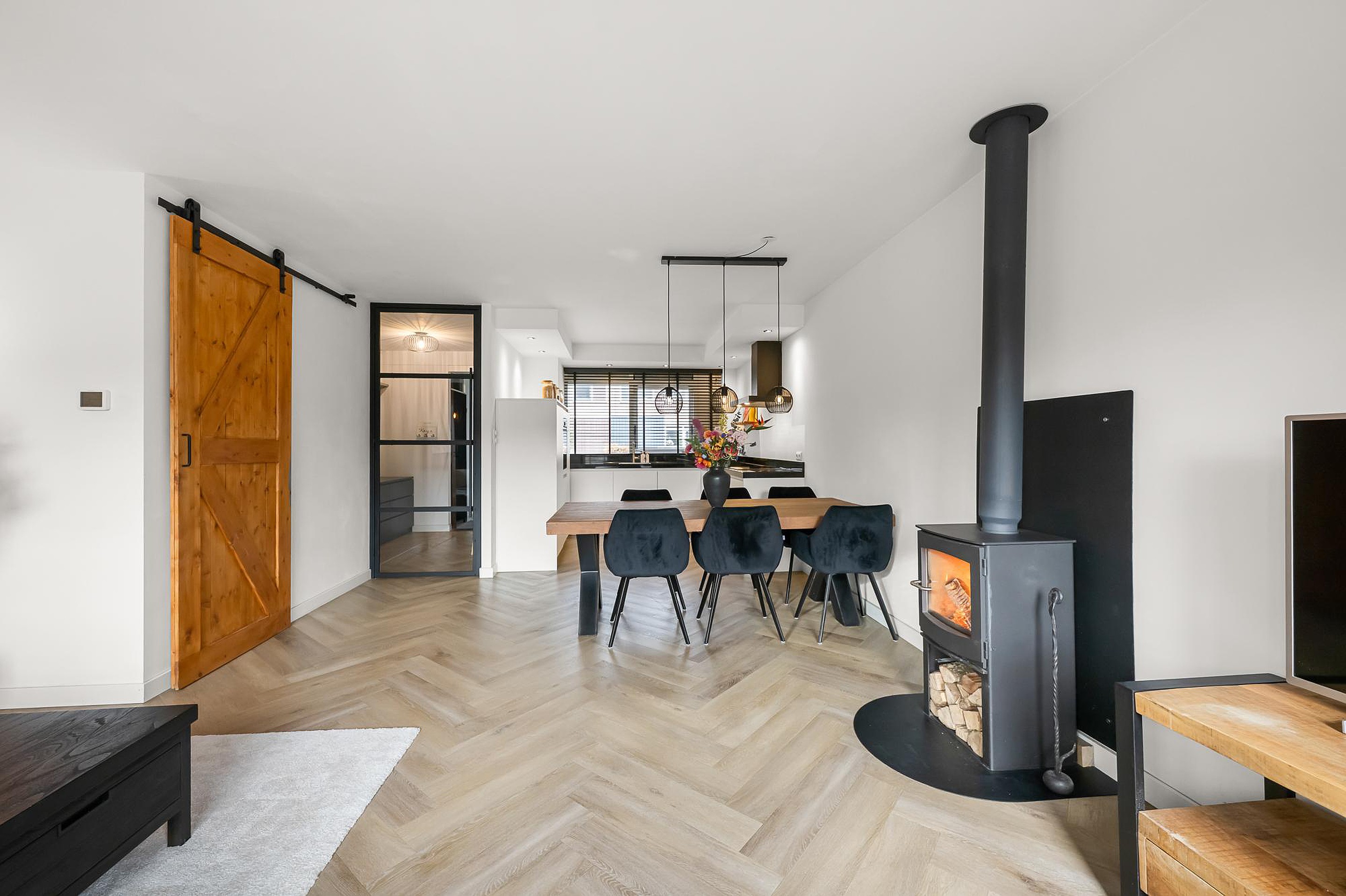 Bij binnenkomst valt direct de moderne afwerking en warme sfeer op. De woonkamer is tuingericht en voorzien van een prachtige visgraatvloer met vloerverwarming en grote ramen die zorgen voor veel lichtinval. Voor extra sfeer en warmte is er een knusse houtkachel aanwezig. De moderne keuken (2021) is volledig uitgerust met een inductiekookplaat, koel-/vriescombinatie, vaatwasser, afzuigkap en handige opberglades. De stalen deur naar de hal geeft de ruimte een stoere, eigentijdse uitstraling. Daarnaast is er een praktische trapkast aanwezig en toegang tot de verzorgde achtertuin.