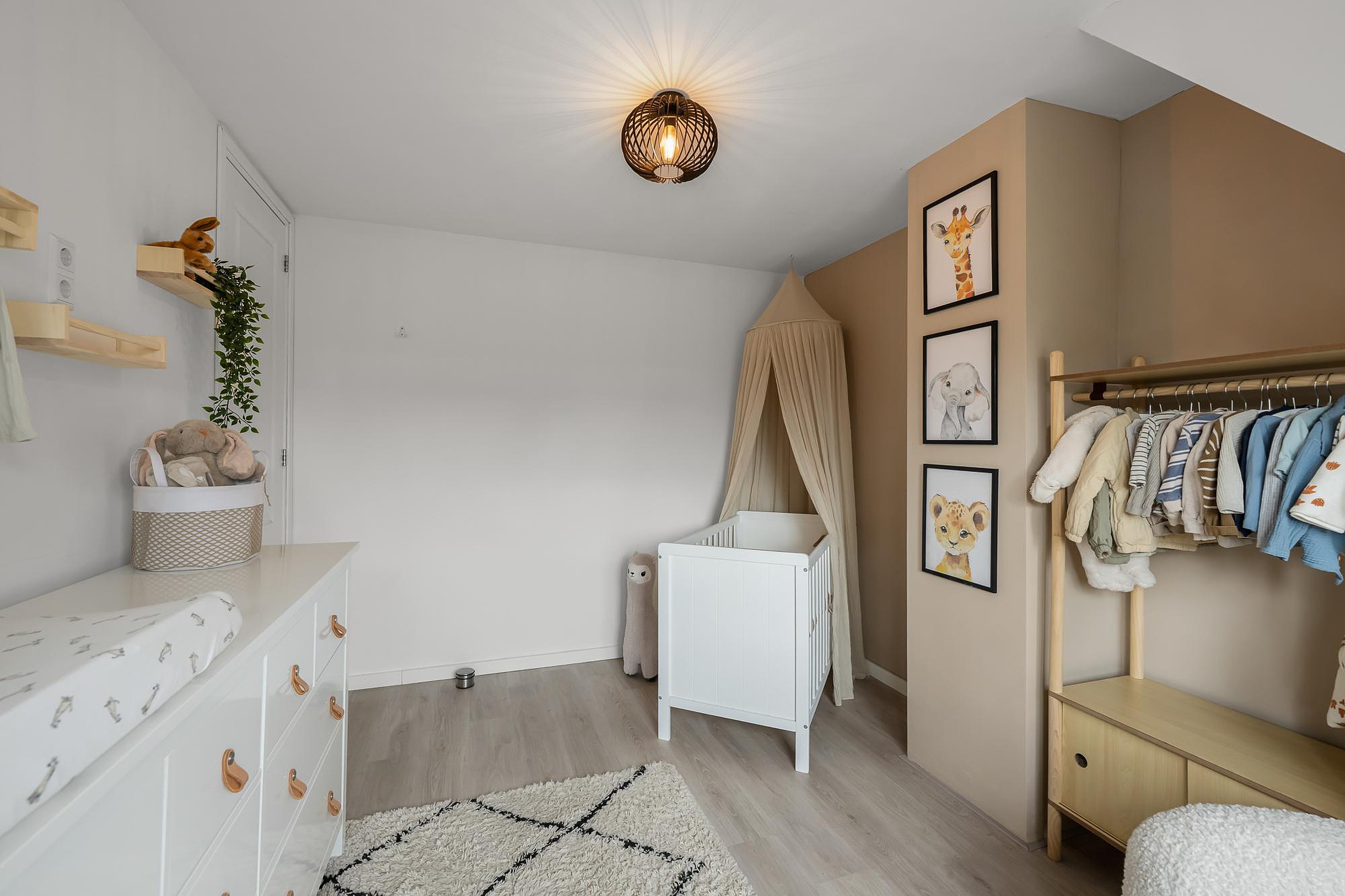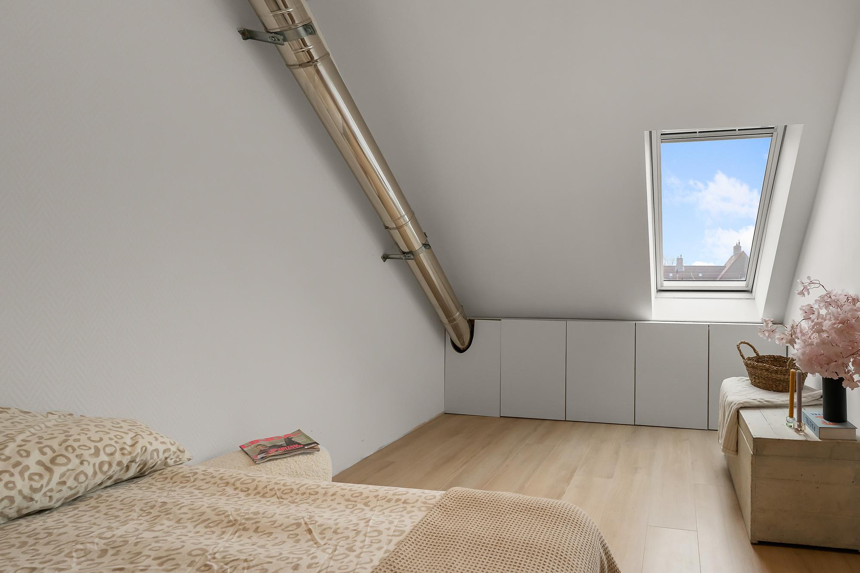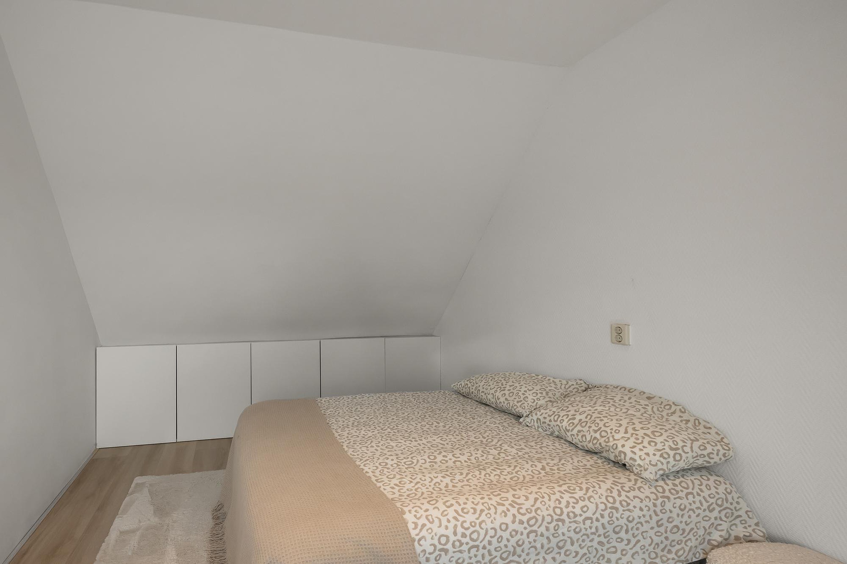 Via de vaste trap kom je op de ruime zolderverdieping met een lichte voorzolder waar de cv-installatie (2021) en aansluitingen voor wasmachine en droger zijn geplaatst. De zolderslaapkamer is recent gestuukt en afgewerkt met een nette laminaatvloer. Achter de knieschotten is bovendien praktische bergruimte aanwezig.
