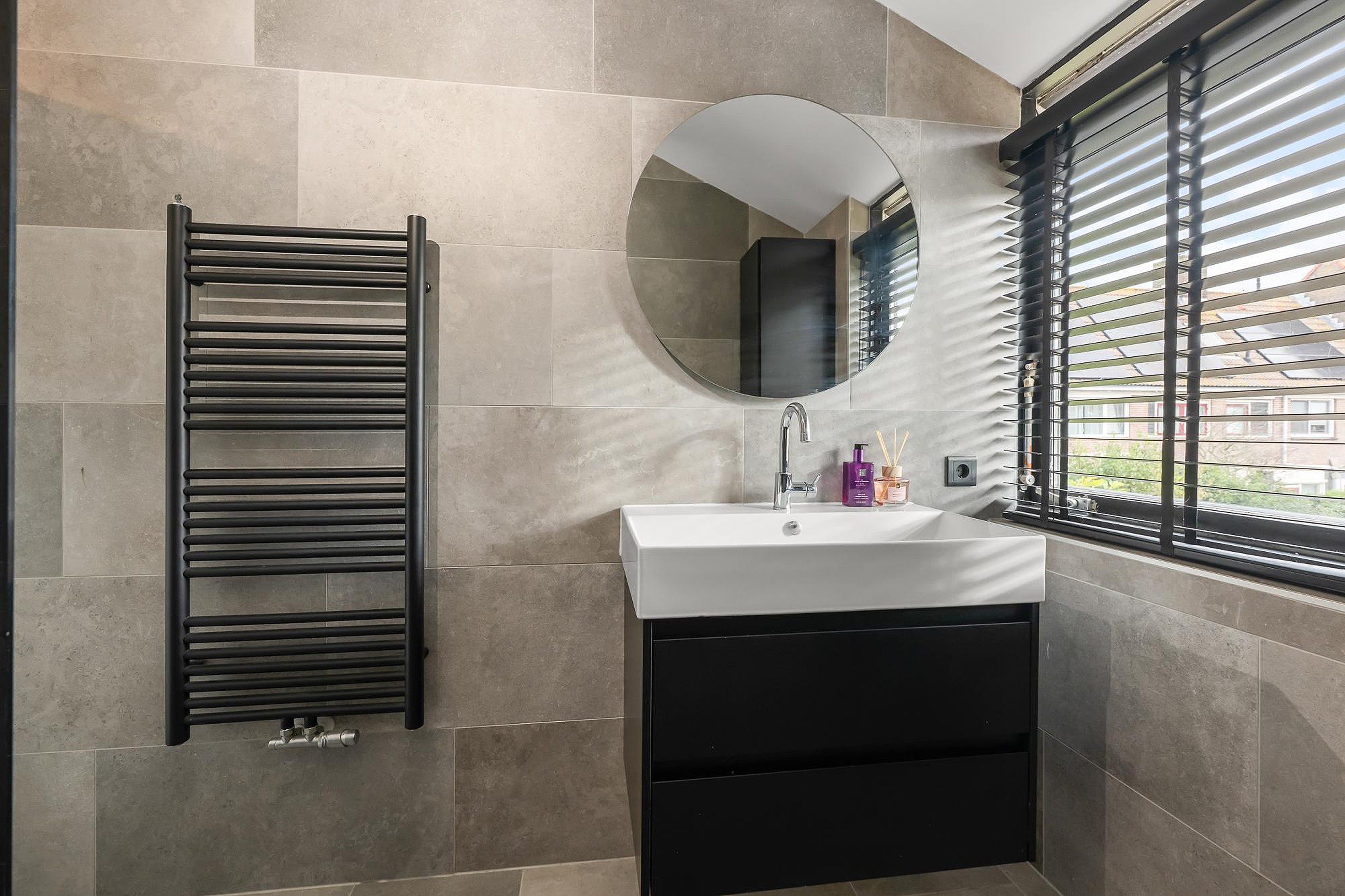 Op de eerste verdieping bevinden zich drie slaapkamers. De vloer loopt op deze etage stijlvol en naadloos door in alle slaapkamers. Aan de voorzijde ligt de ruime master bedroom en een tweede, kleinere kamer. Aan de achterzijde is een derde slaapkamer. De moderne badkamer (2021) is voorzien van een inloopdouche, toilet, wastafelmeubel en vloerverwarming.