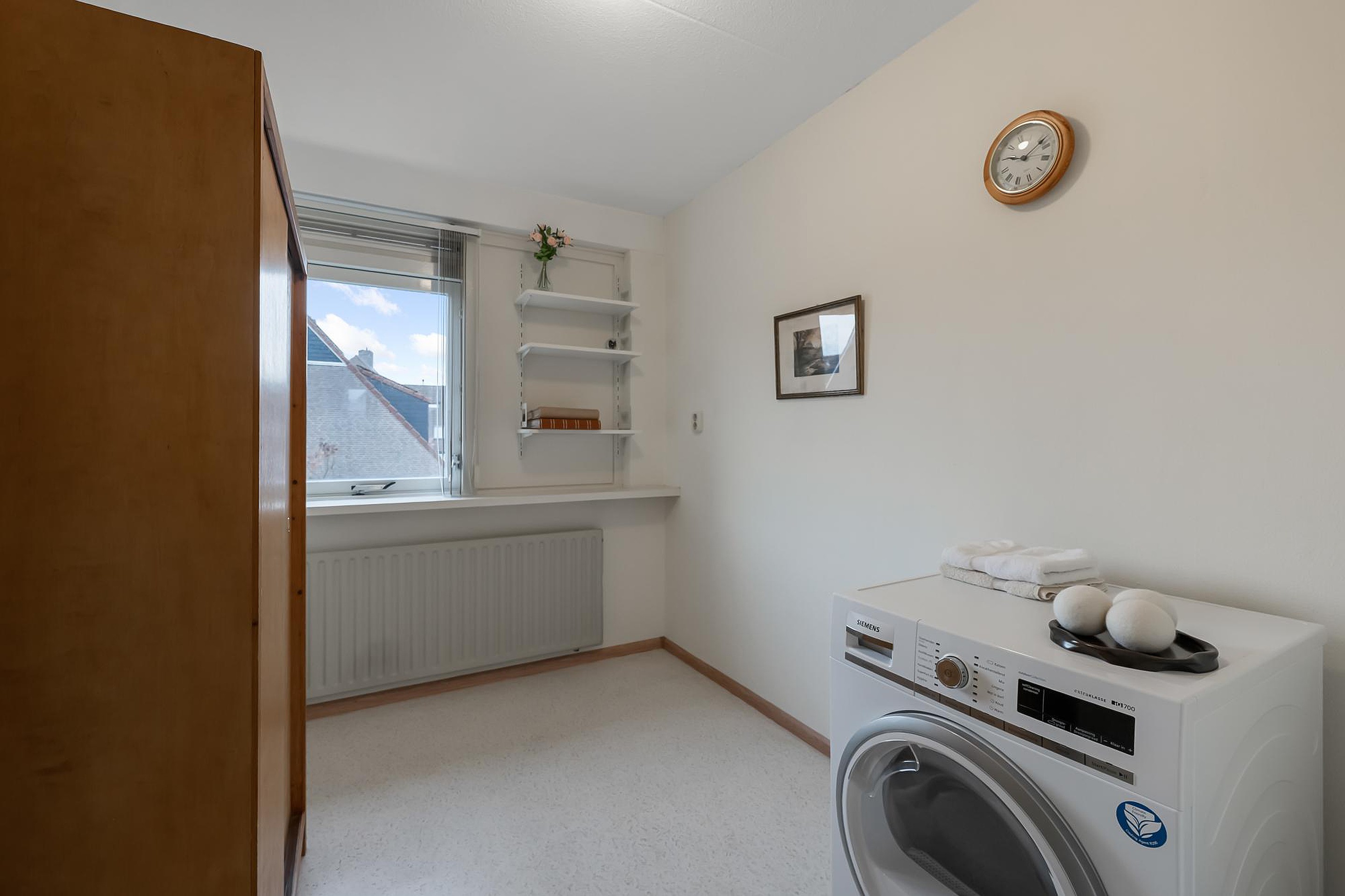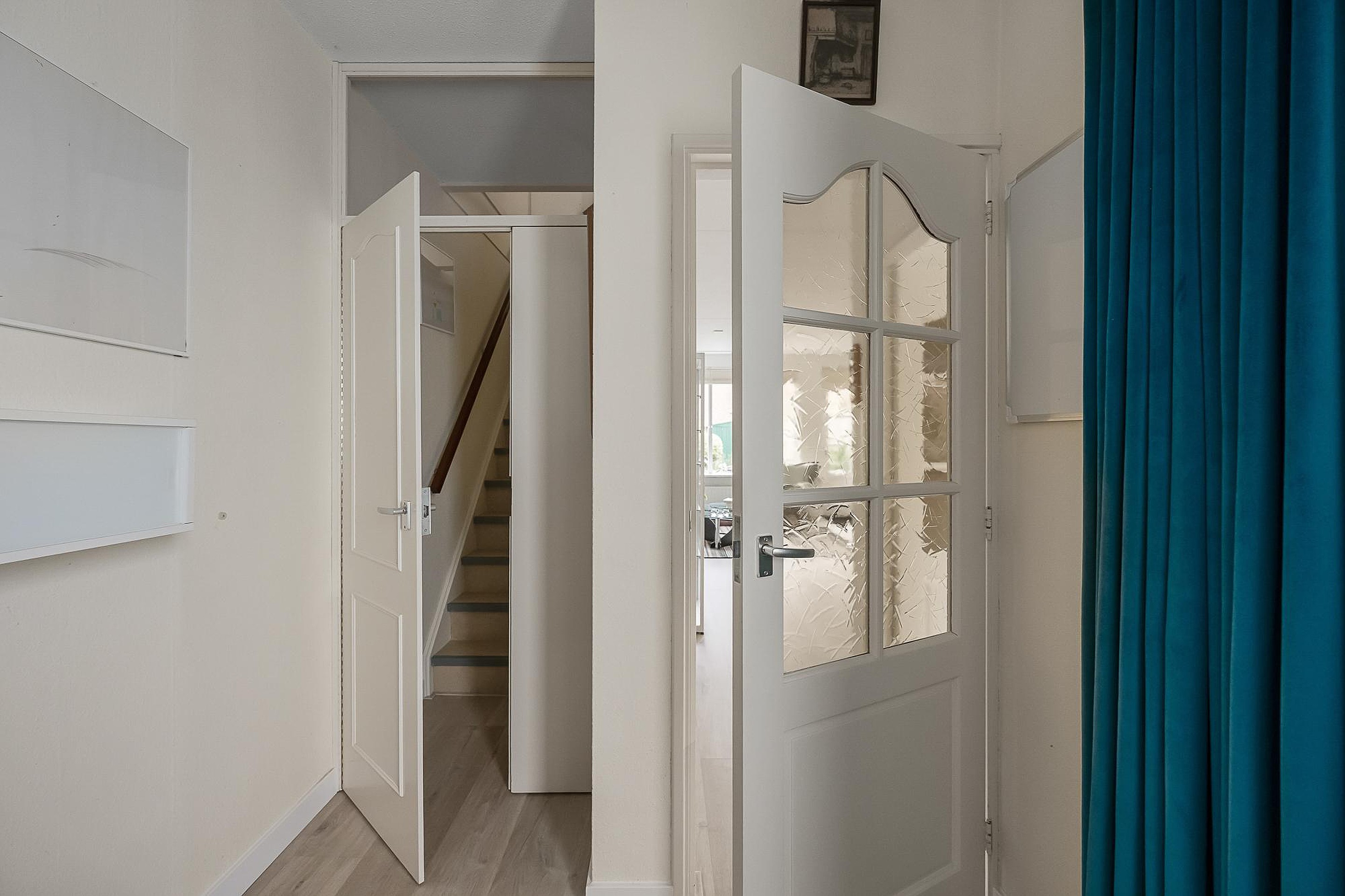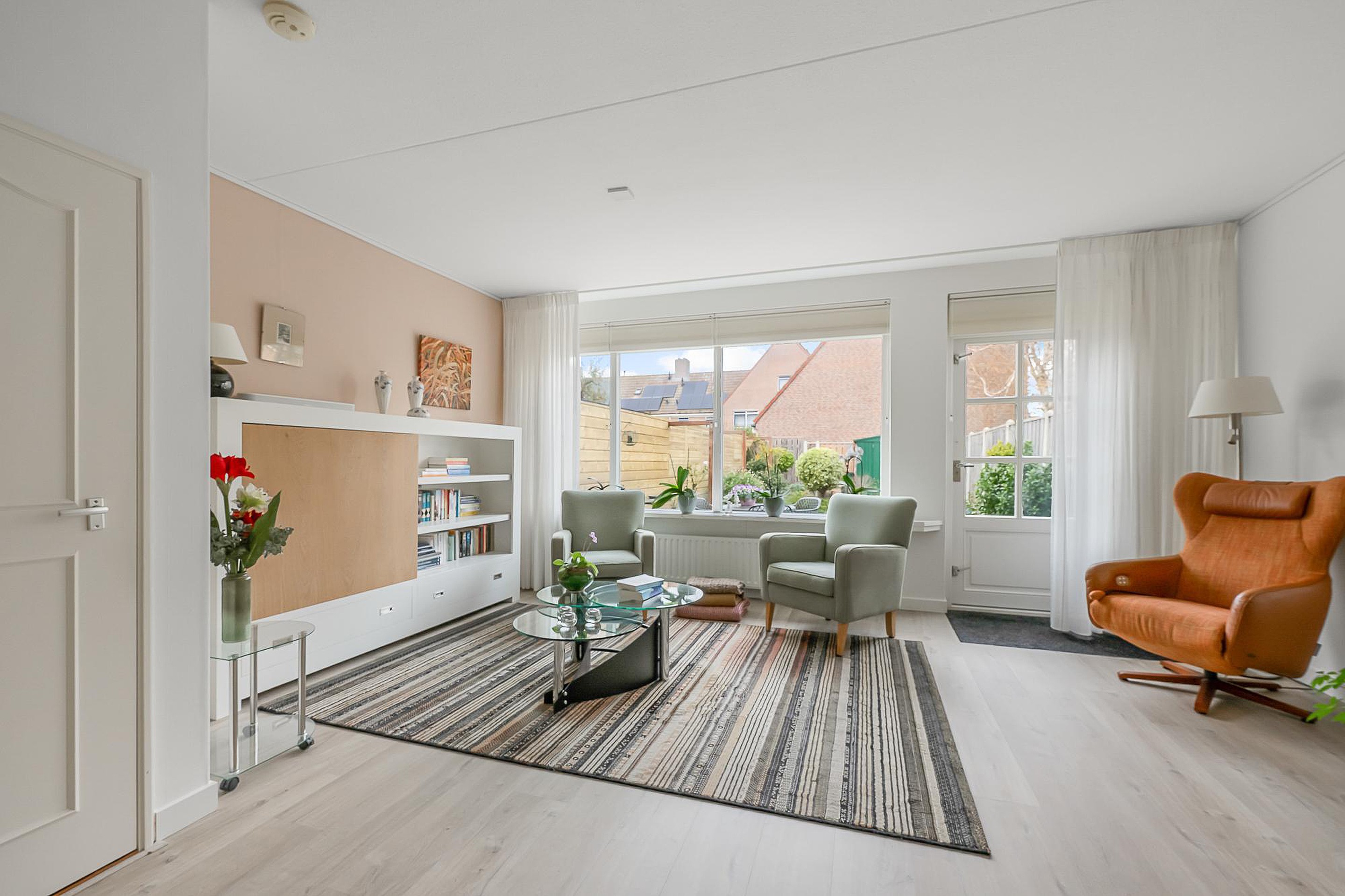 Ruime hal met entree, toilet en meterkast. De woonkamer is tuingericht, licht en comfortabel en biedt voldoende ruimte voor een fijne zit- en eethoek. De keuken is afgesloten van de woonkamer, wat zorgt voor rust tijdens het koken en een opgeruimd woongedeelte. De keuken (2022) is uitgerust met moderne inbouwapparatuur en beschikt over veel werk- en bergruimte, ideaal voor iedereen die van koken houdt.