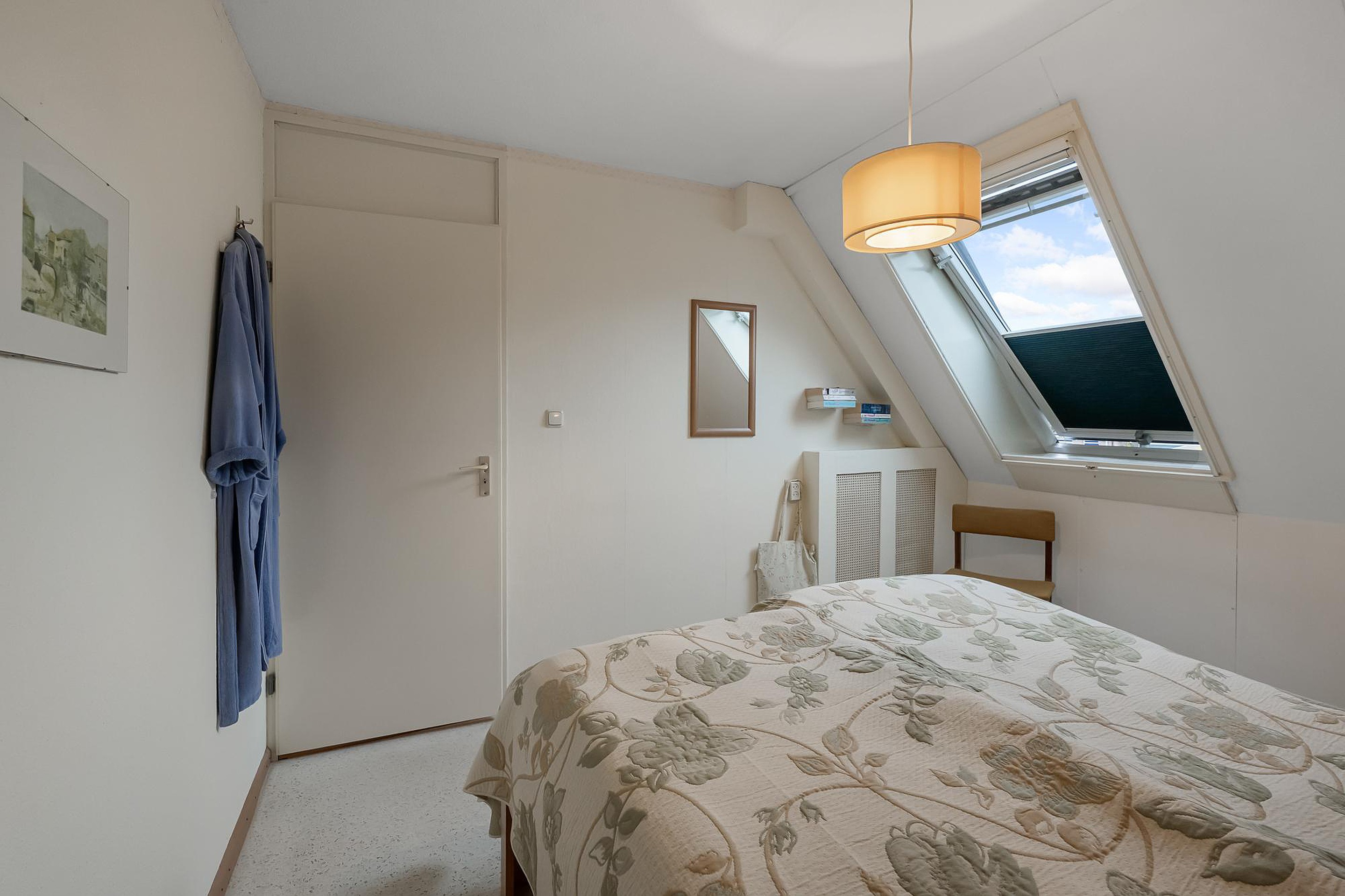 Via een vaste trap bereik je een ruime zolderverdieping met veel mogelijkheden. Hier vind je de Remeha CV-opstelling (2024). Er is een vierde slaapkamer, voorzien van dakraam en extra bergruimte onder de schuine wanden.
