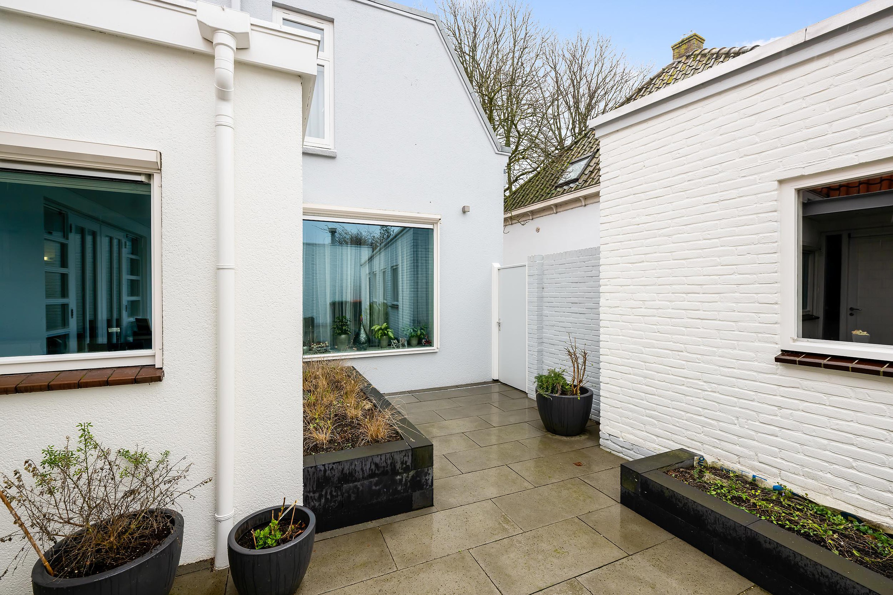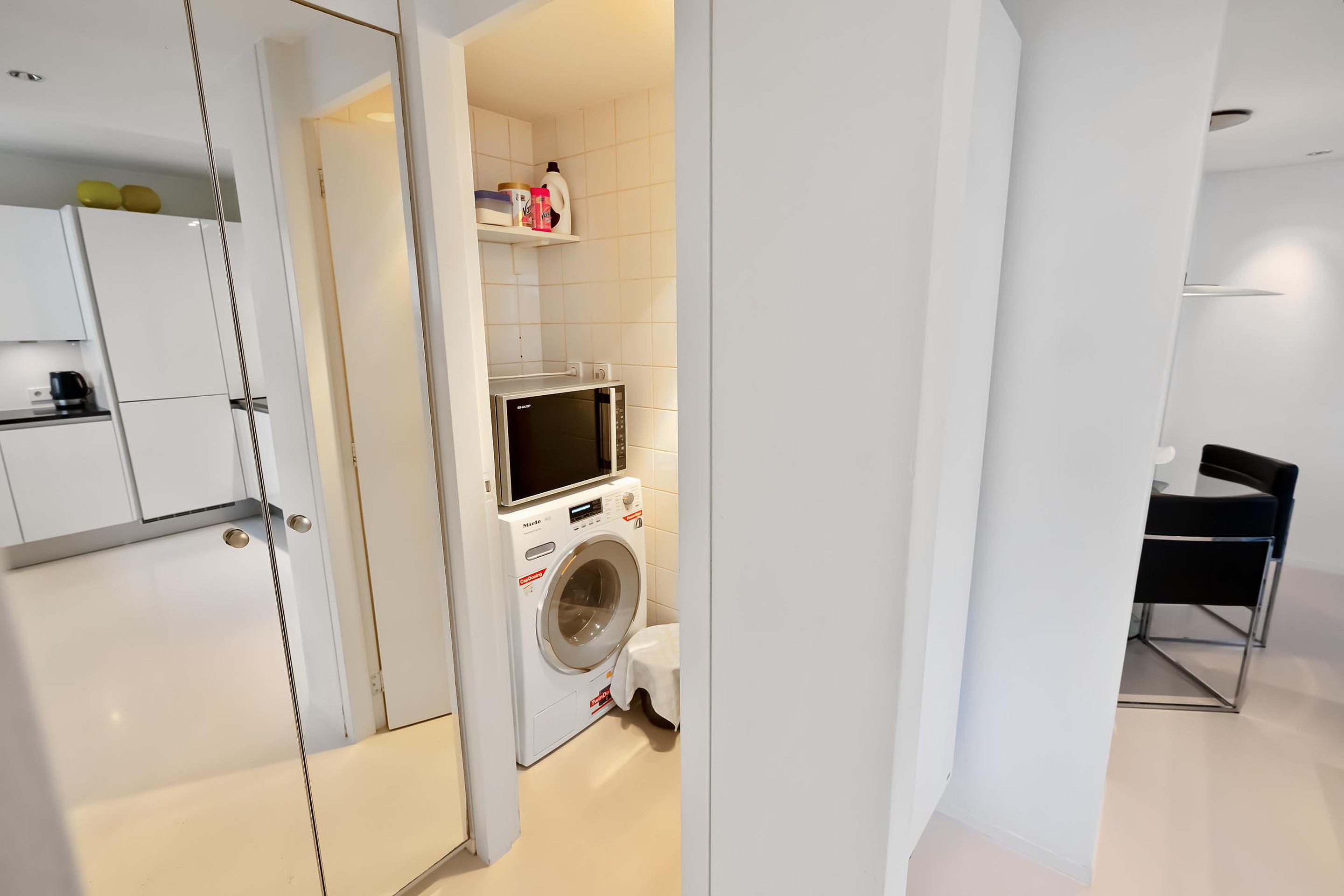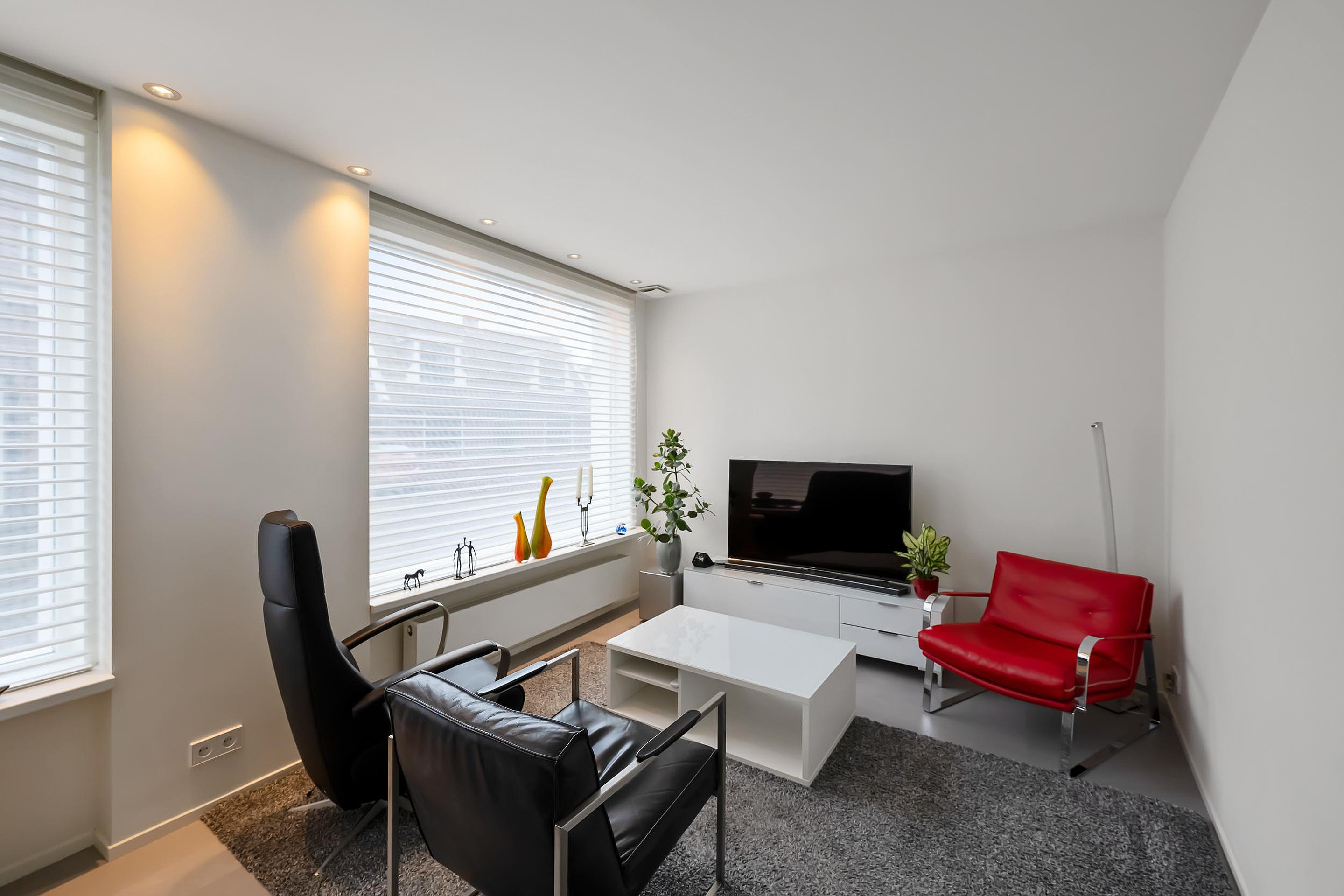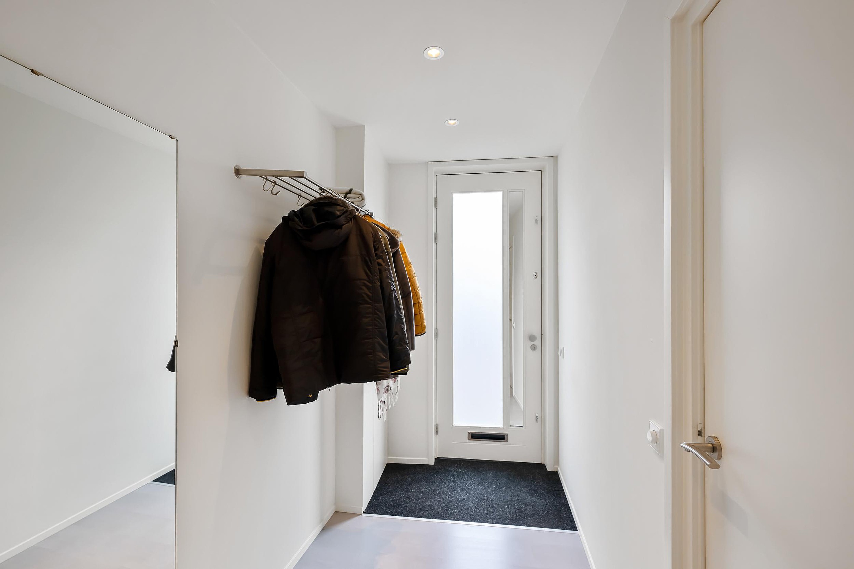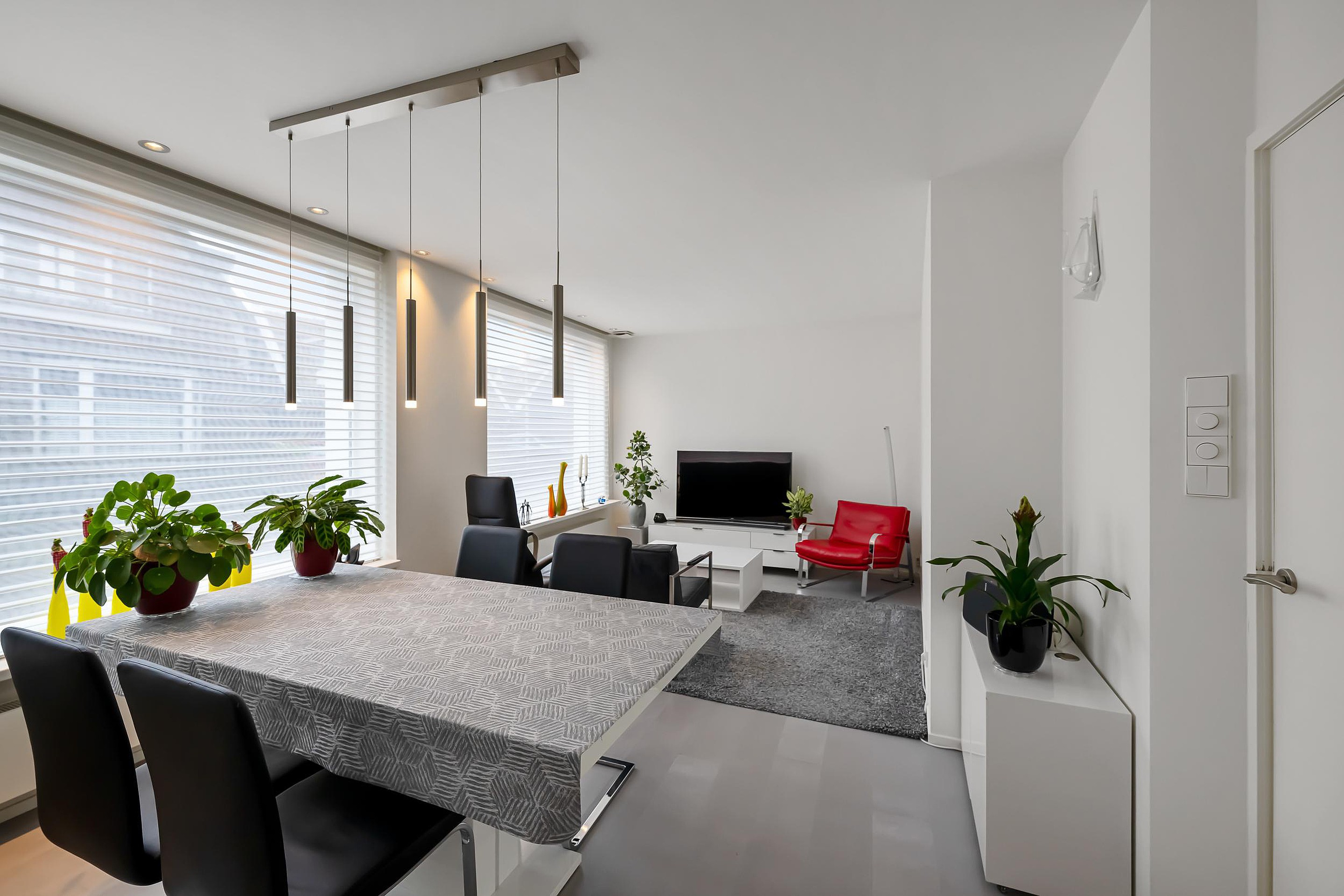 Via de tweede hal is de trap naar de eerste verdieping, en ook de toegang naar de achter(woonkamer). Vanaf hier loop je zo de luxe open keuken in die is voorzien van alle benodigde apparatuur om heerlijk te kokkerellen.