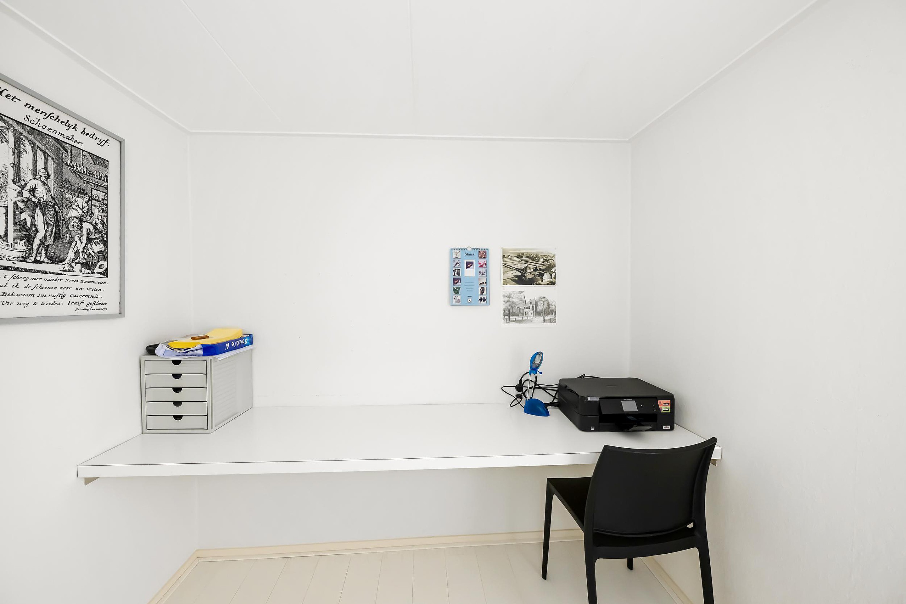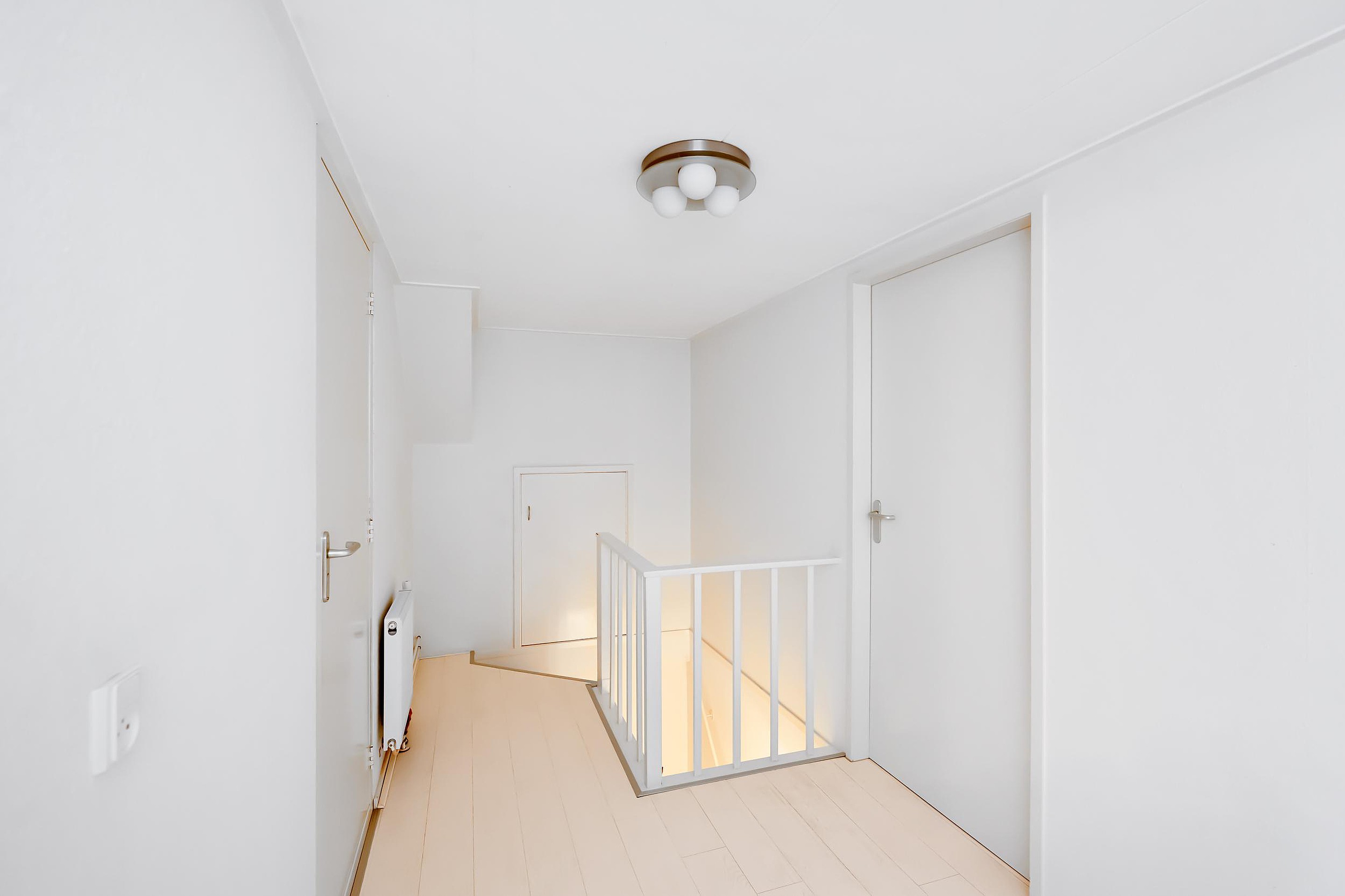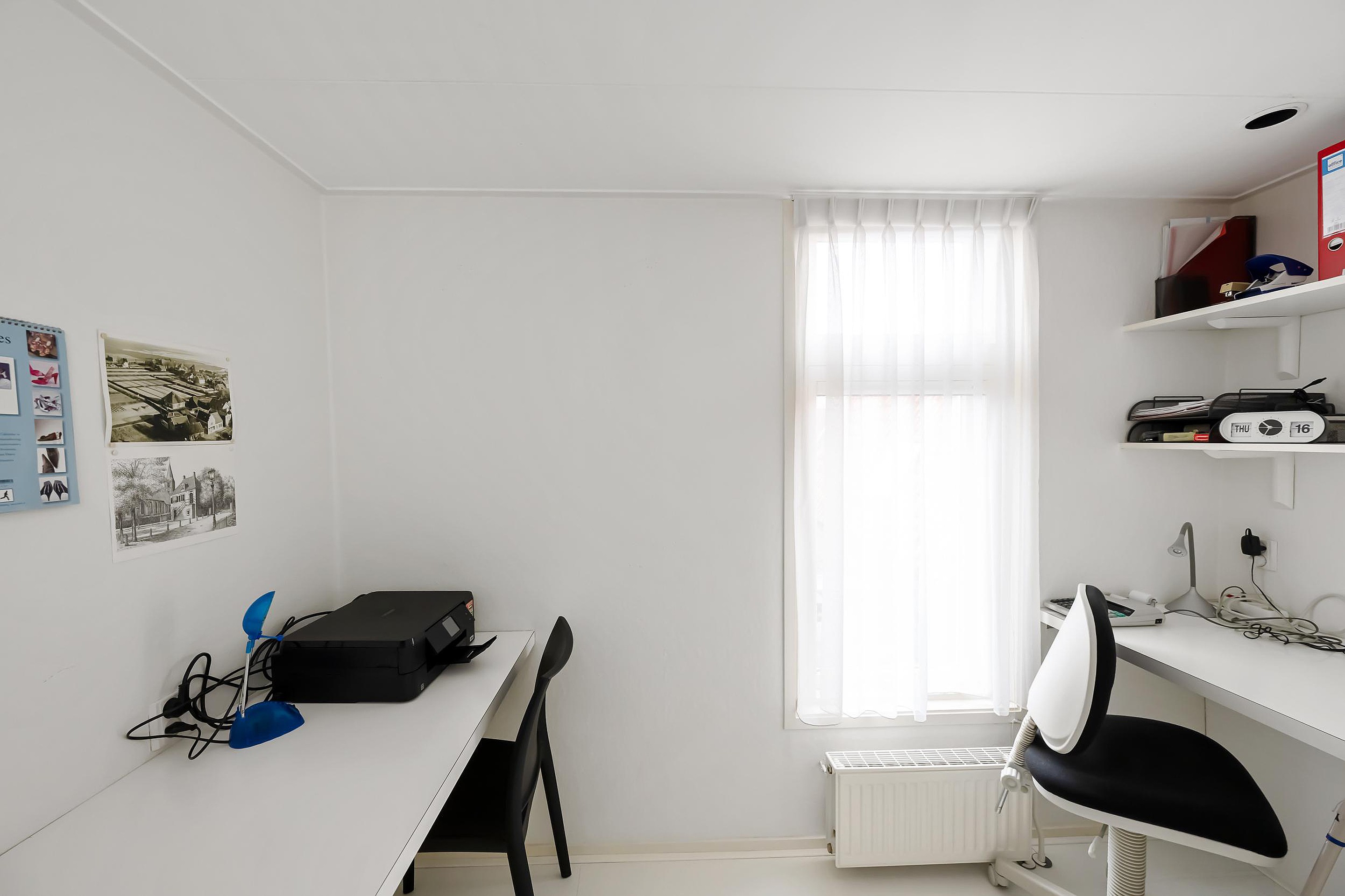 Middels de vaste trap komen we aan op de overloop van de eerste verdieping. Aan de voorzijde zijn twee slaapkamers met inbouwkasten. Aan de achterzijde is een kantoortje en een tweede badkamer. De badkamer is uitgerust met ligbad, douche, toilet en wastafel. Op de overloop is in een berging de CV ketel weggewerkt.
