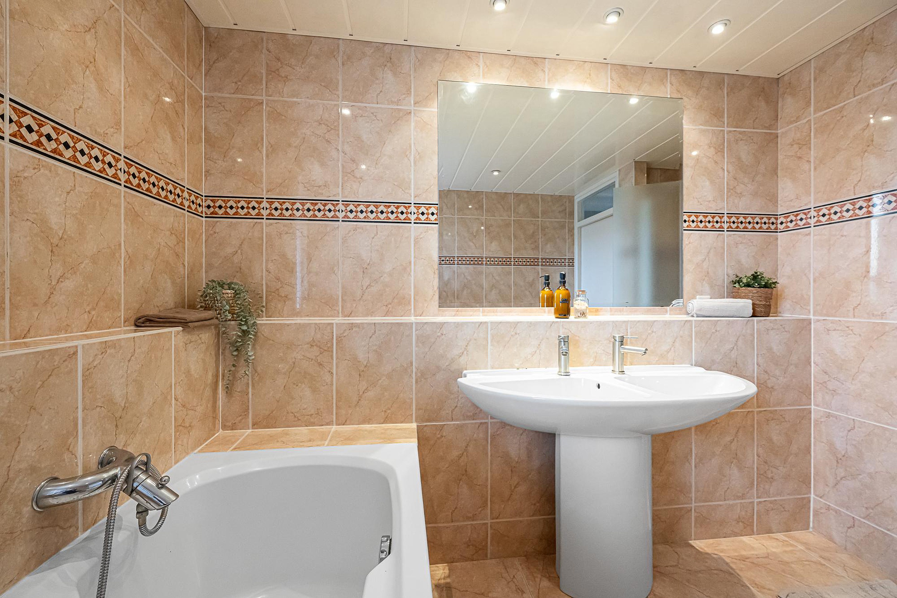 Overloop met toegang tot drie ruime slaapkamers. Twee slaapkamers aan de achterzijde hebben directe toegang tot het balkon. De badkamer is voorzien van een ligbad, douche en wastafelmeubel. Er is een separaat toilet.