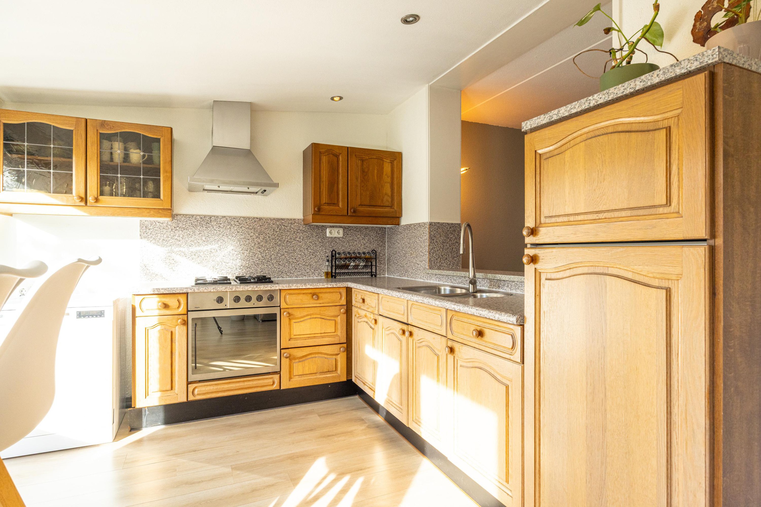 De woonkamer staat in directe verbinding met de open keuken, waardoor beide ruimtes mooi in elkaar overlopen. De keuken biedt voldoende werkruimte en is verbonden met zowel de buiten als binnenruimte. Hier vind je alle benodigde inbouwapparatuur, zoals een 4-pits gasfornuis, afzuigkap, combi-oven. De deur naar de achtertuin zorgt niet alleen voor veel licht, maar maakt het ook makkelijk om binnen en buiten met elkaar te verbinden perfect voor een ontbijt in de ochtendzon of een barbecue op een warme zomeravond.