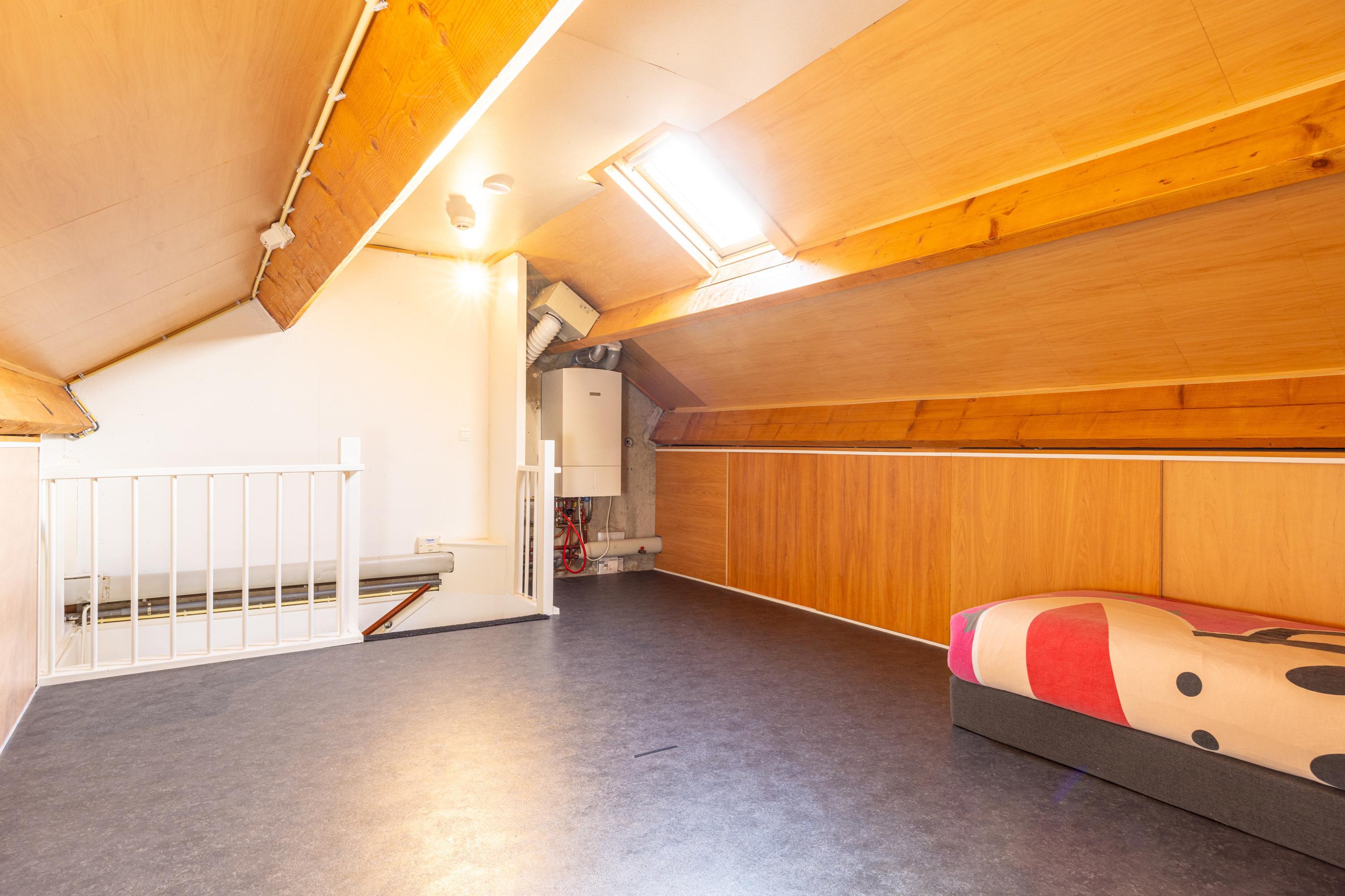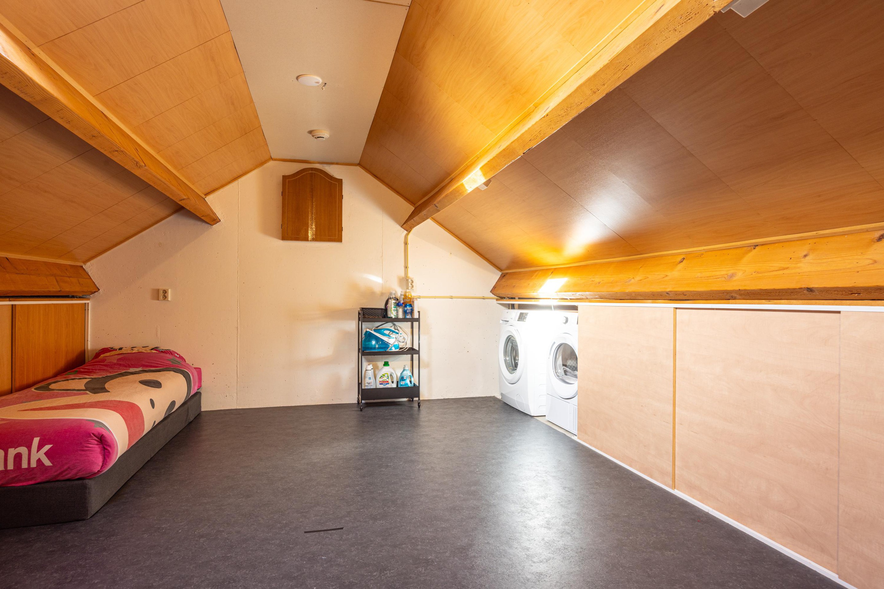 Tweede verdieping Via een vaste trap afgewerkt met tapijt, bereik je de tweede verdieping. Deze ruime zolderverdieping is voorzien van de witgoedaansluitingen en herbergt de cv-installatie. Dankzij de goede afmetingen kan deze verdieping ook gebruikt worden als logeerruimte, werkplek of hobbykamer.