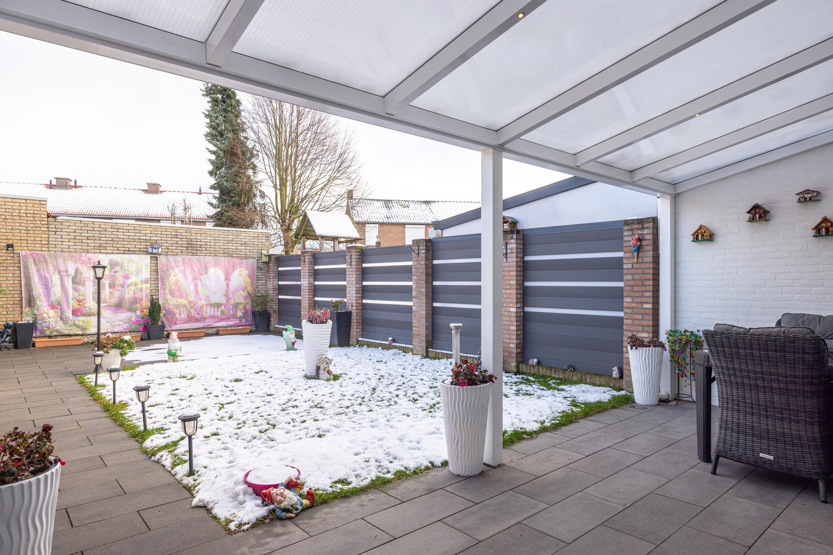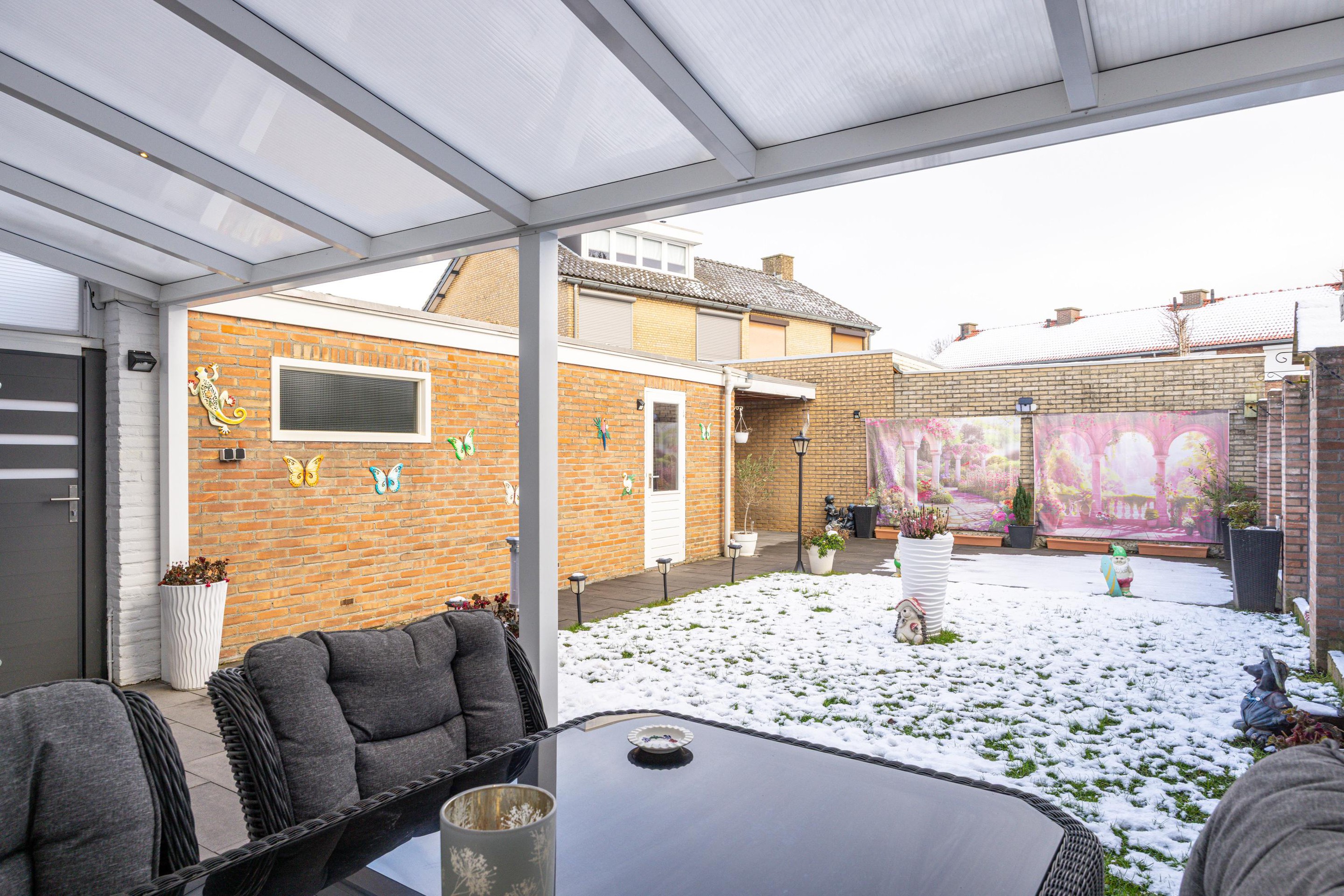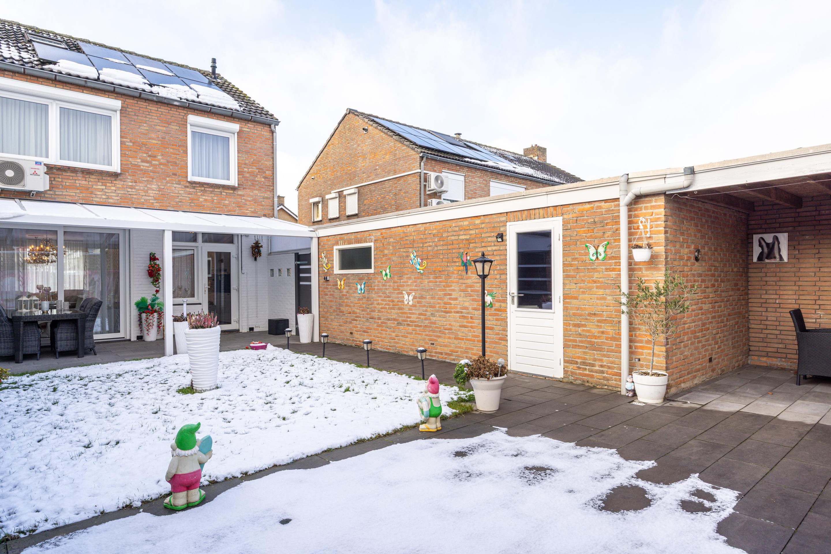 Via de oprit is er directe toegang naar de achtertuin en de woning.