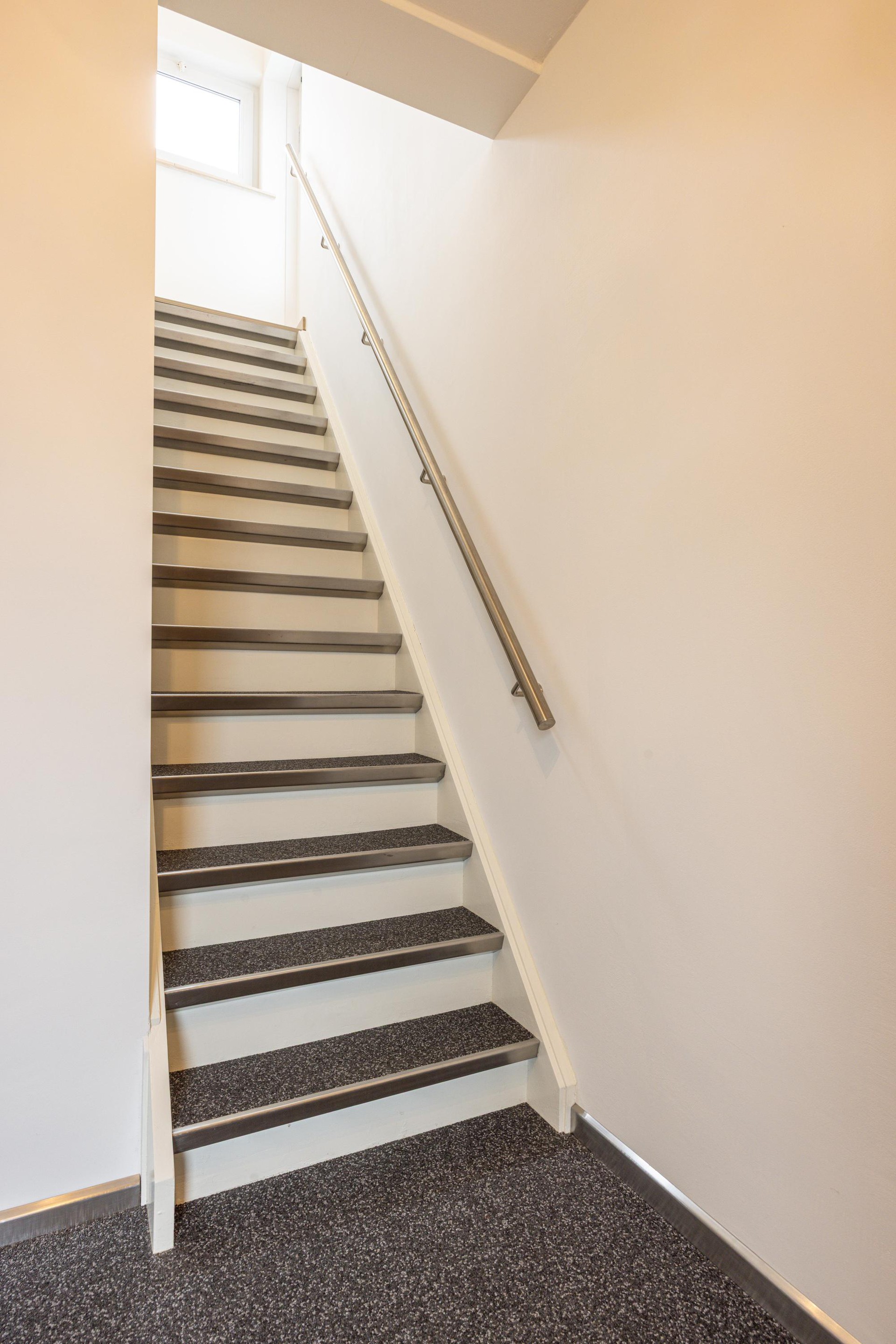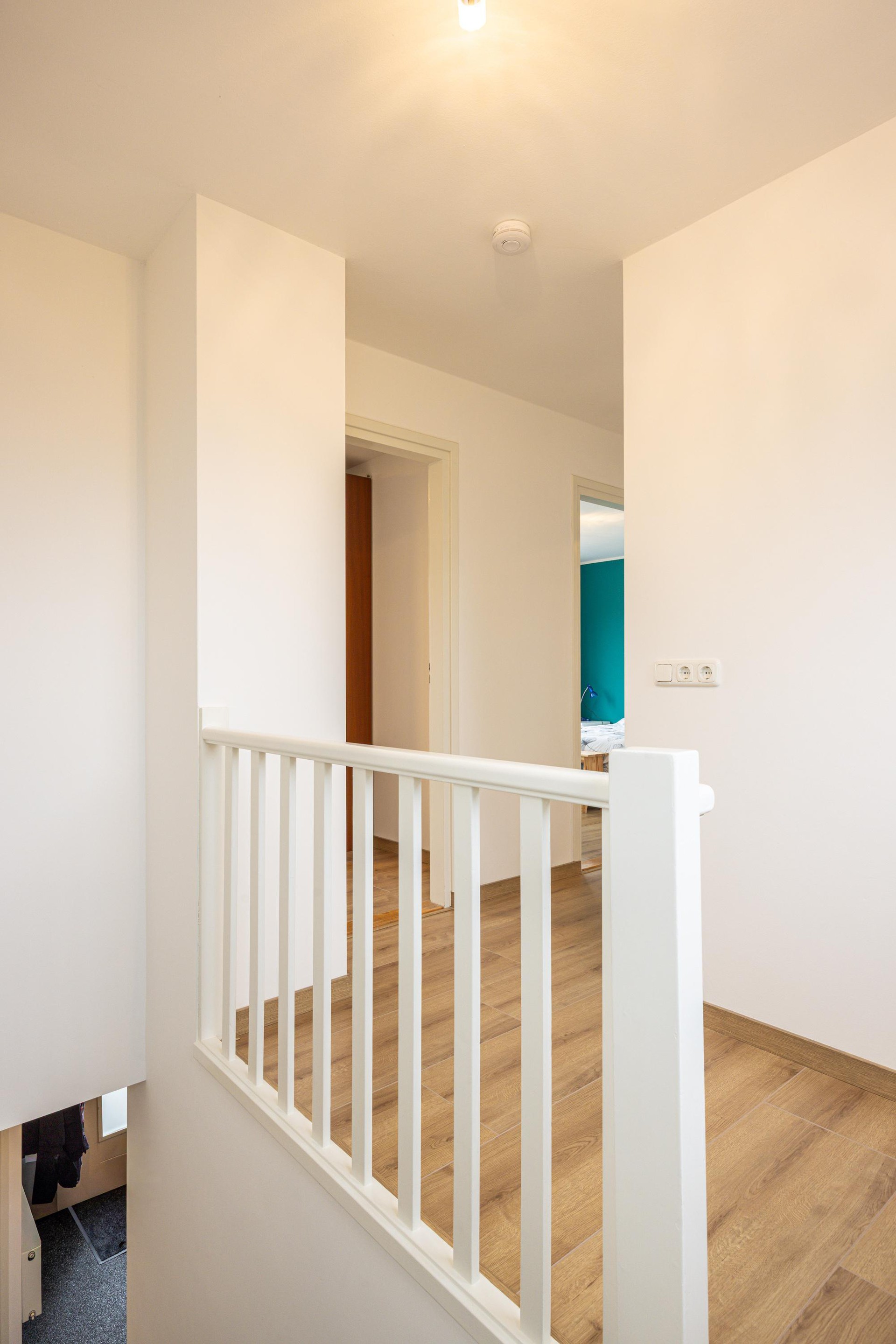 Eerste verdieping Via de vaste trap bereik je de eerste verdieping. De overloop is afgewerkt met een laminaatvloer en hoge plinten, wat zorgt voor een nette en verzorgde uitstraling. Hier is tevens een airconditioning geplaatst, die bijdraagt aan een aangenaam binnenklimaat tijdens warme dagen. De verdieping is grotendeels voorzien van kunststof kozijnen met dubbelglas en HR+ glas.