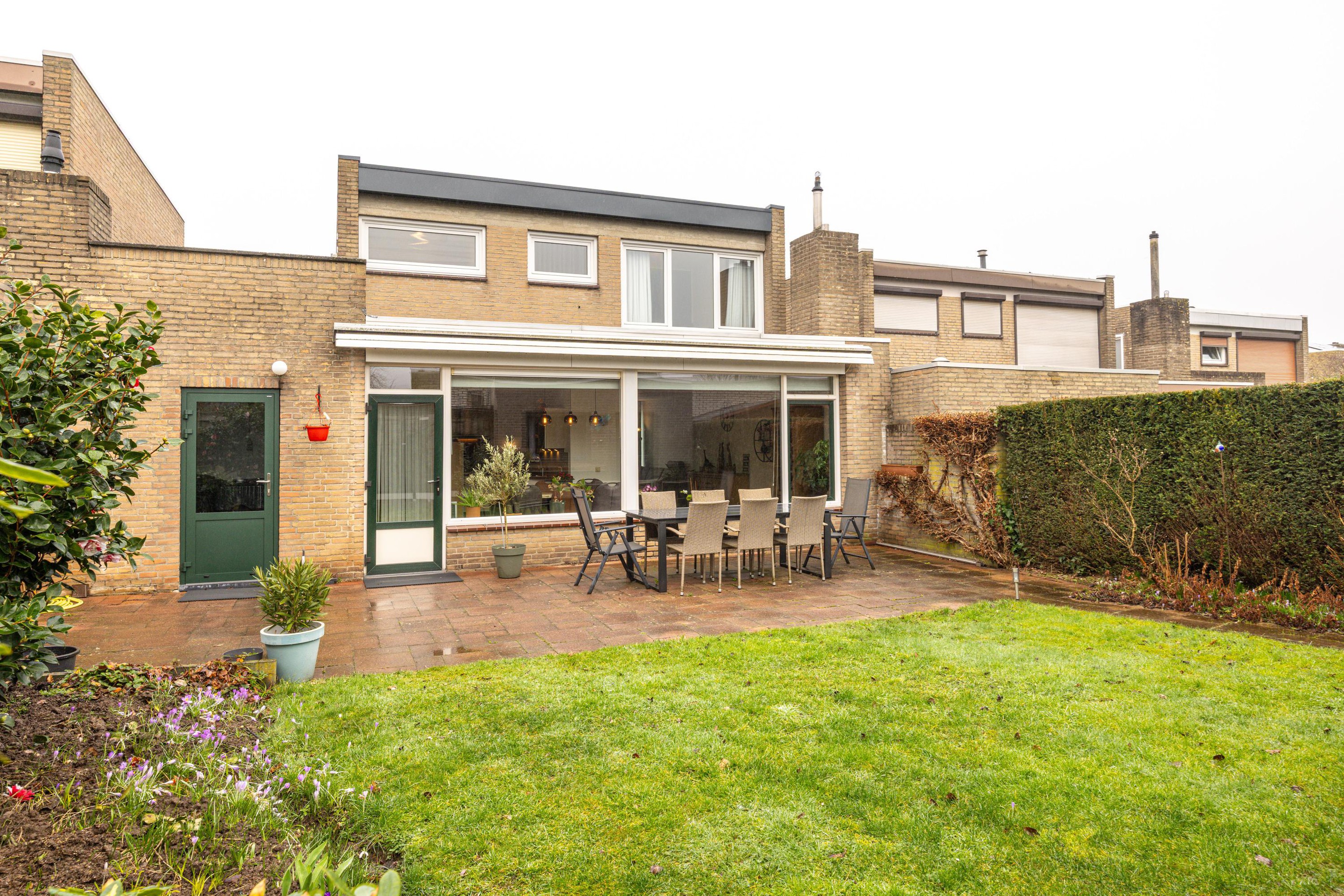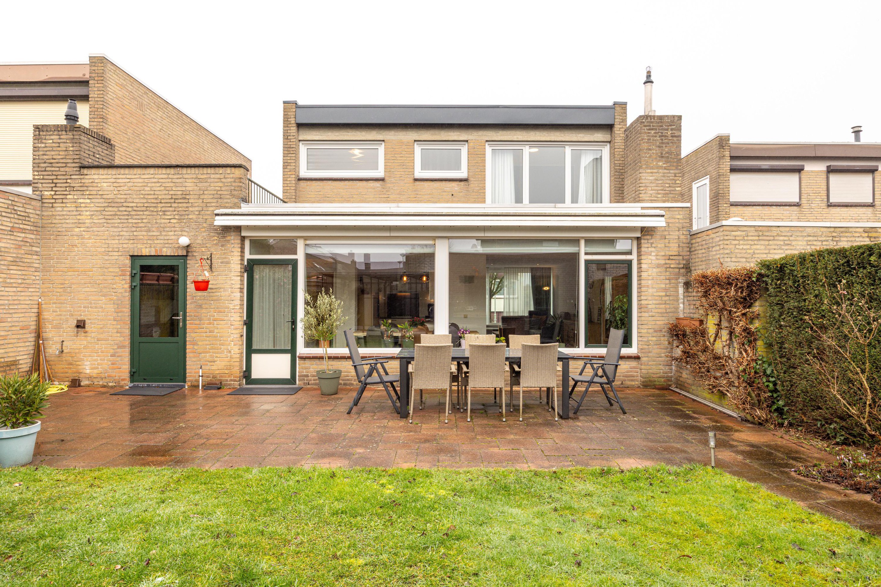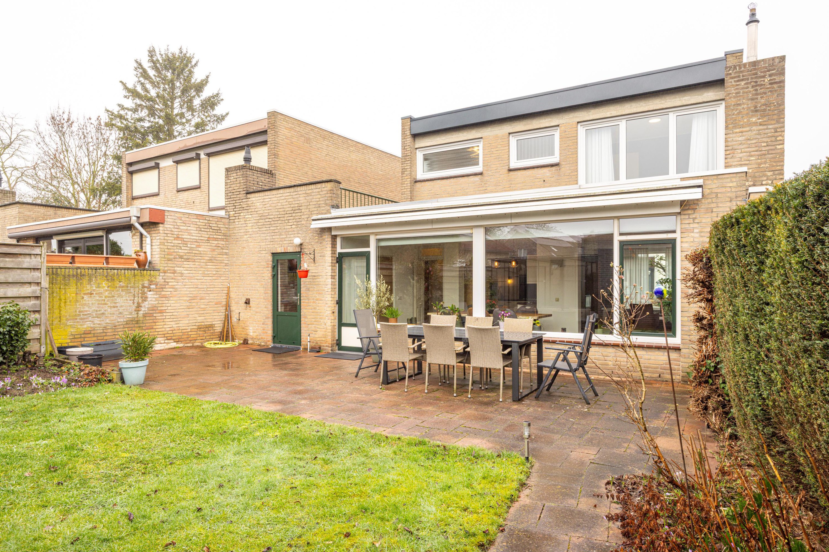 Tuin De achtertuin is verzorgd aangelegd en biedt een prettige combinatie van bestrating en gazon. Dankzij de indeling is er voldoende ruimte voor een terras en groen, waardoor je hier zowel kunt ontspannen als gezellig buiten kunt dineren. De tuin biedt veel privacy en vormt een fijne verlenging van de leefruimte.