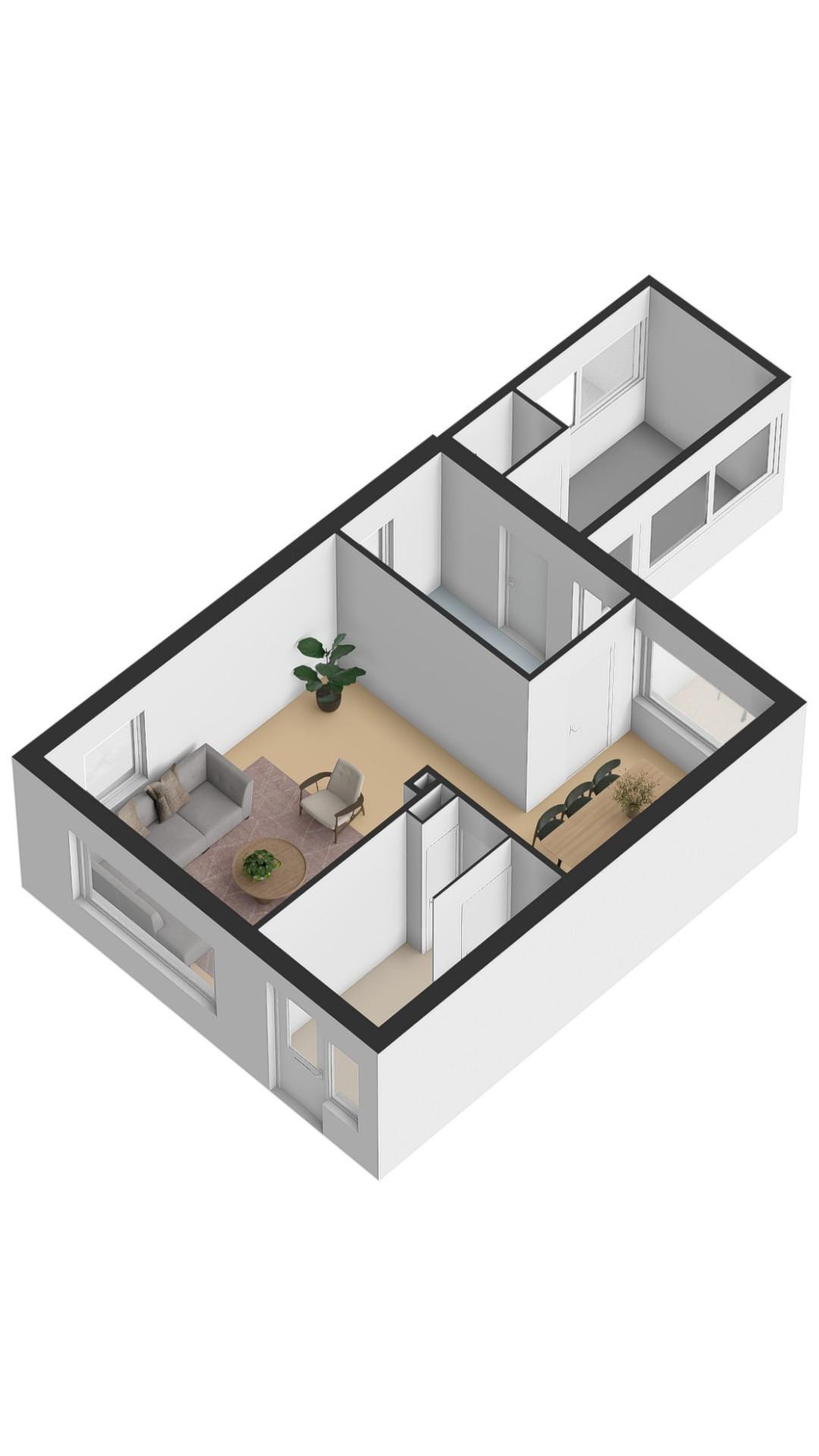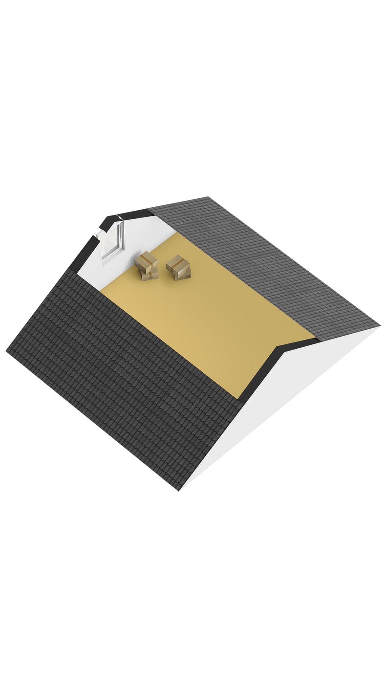 Tweede verdieping via een vlizotrap bereikbare ruime zolderverdieping.
