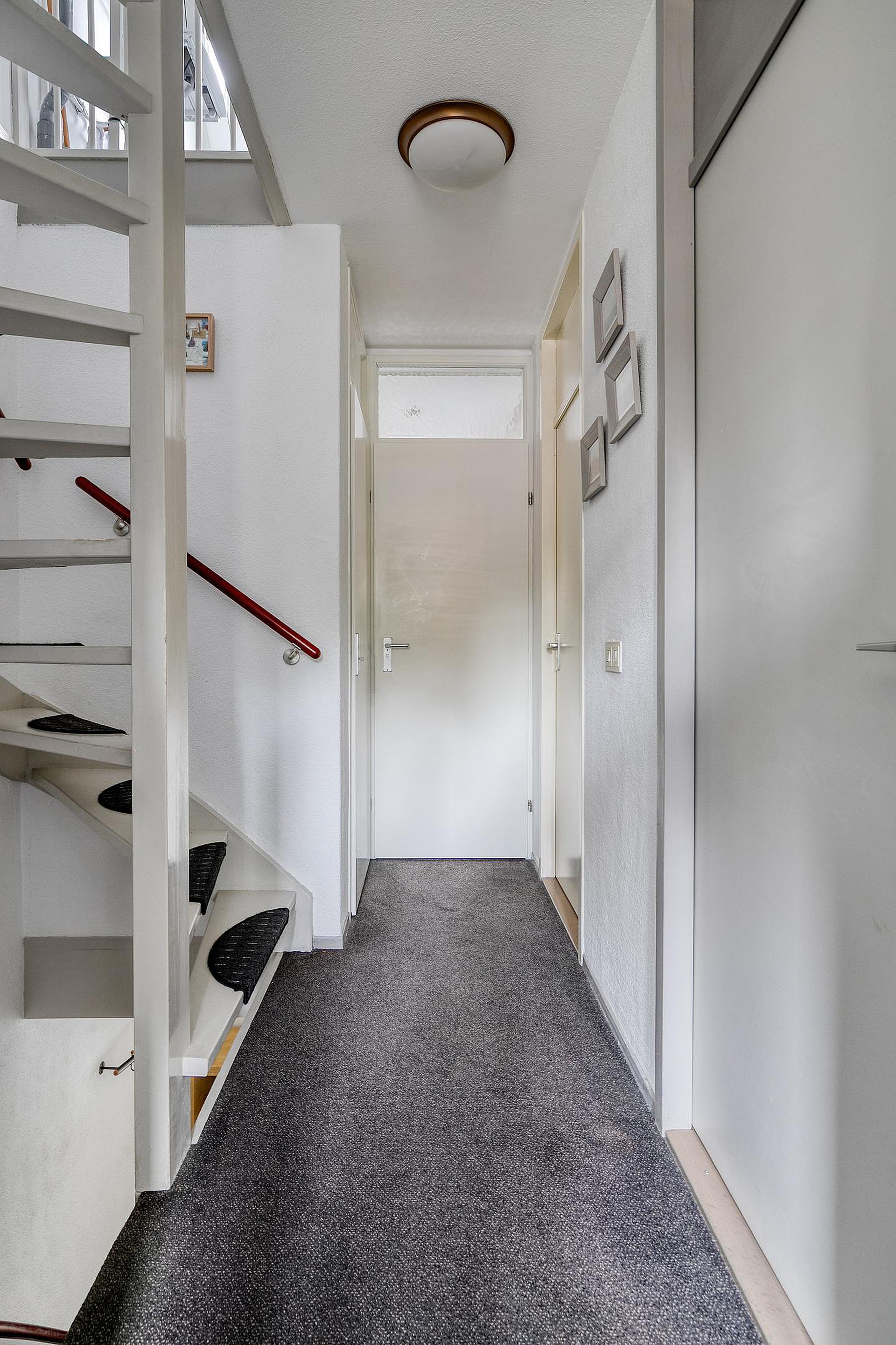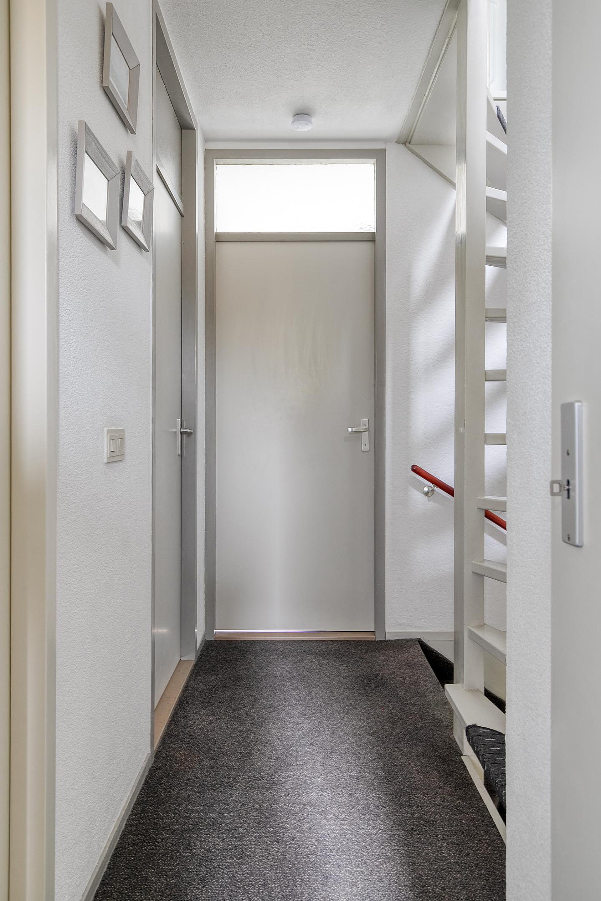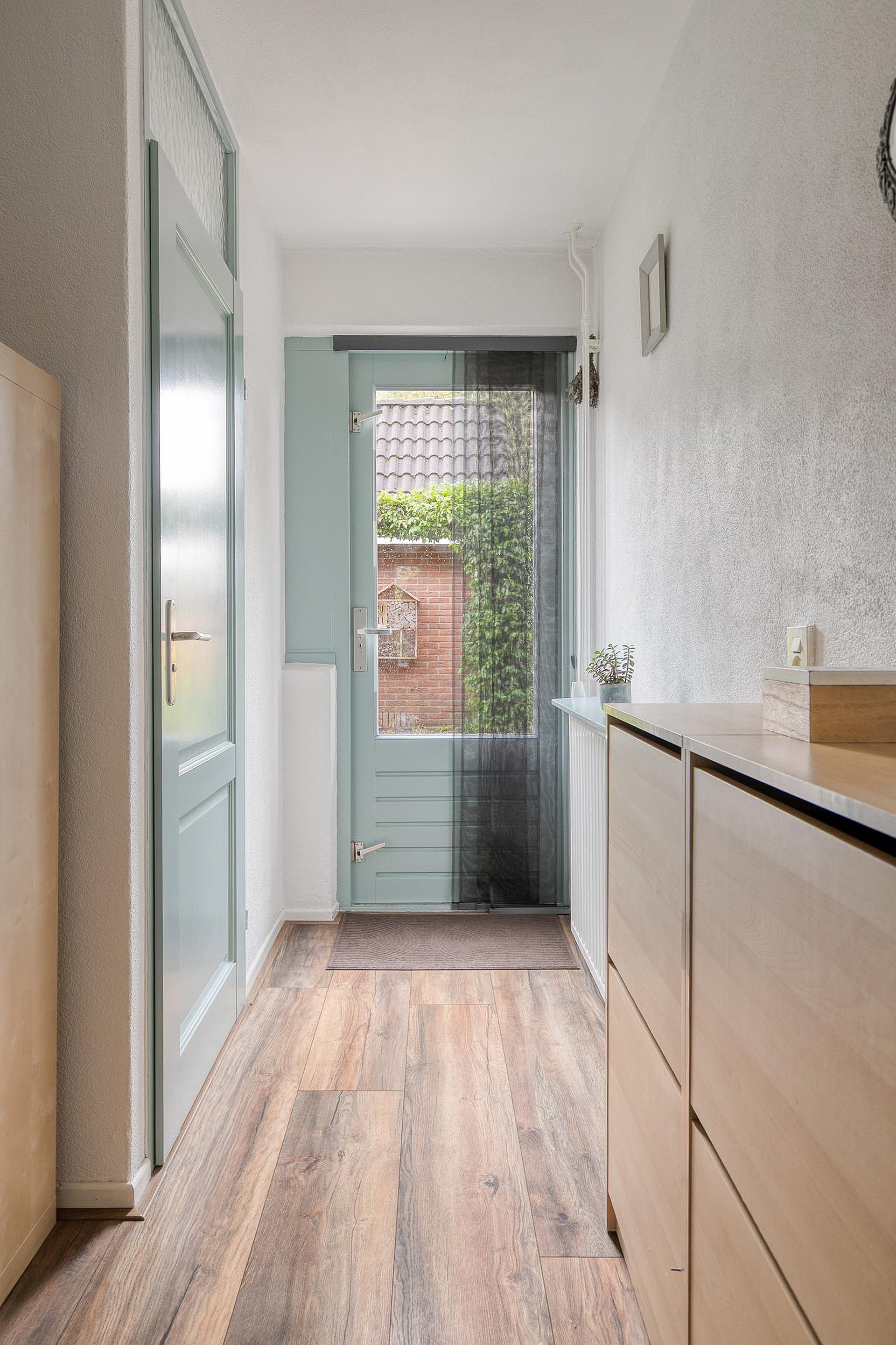 Vanaf de rustige straat bereikt u de woning via de eigen oprit, waar ruimte is om uw auto te parkeren. Ook heeft u hier directe toegang tot de ruime garage, handig voor extra opslag of als hobbyruimte. Eenmaal binnen komt u in de hal, die een verzorgde indruk maakt en toegang biedt tot het woongedeelte. De lichte afwerking en het gevoel van ruimte heten u direct welkom.