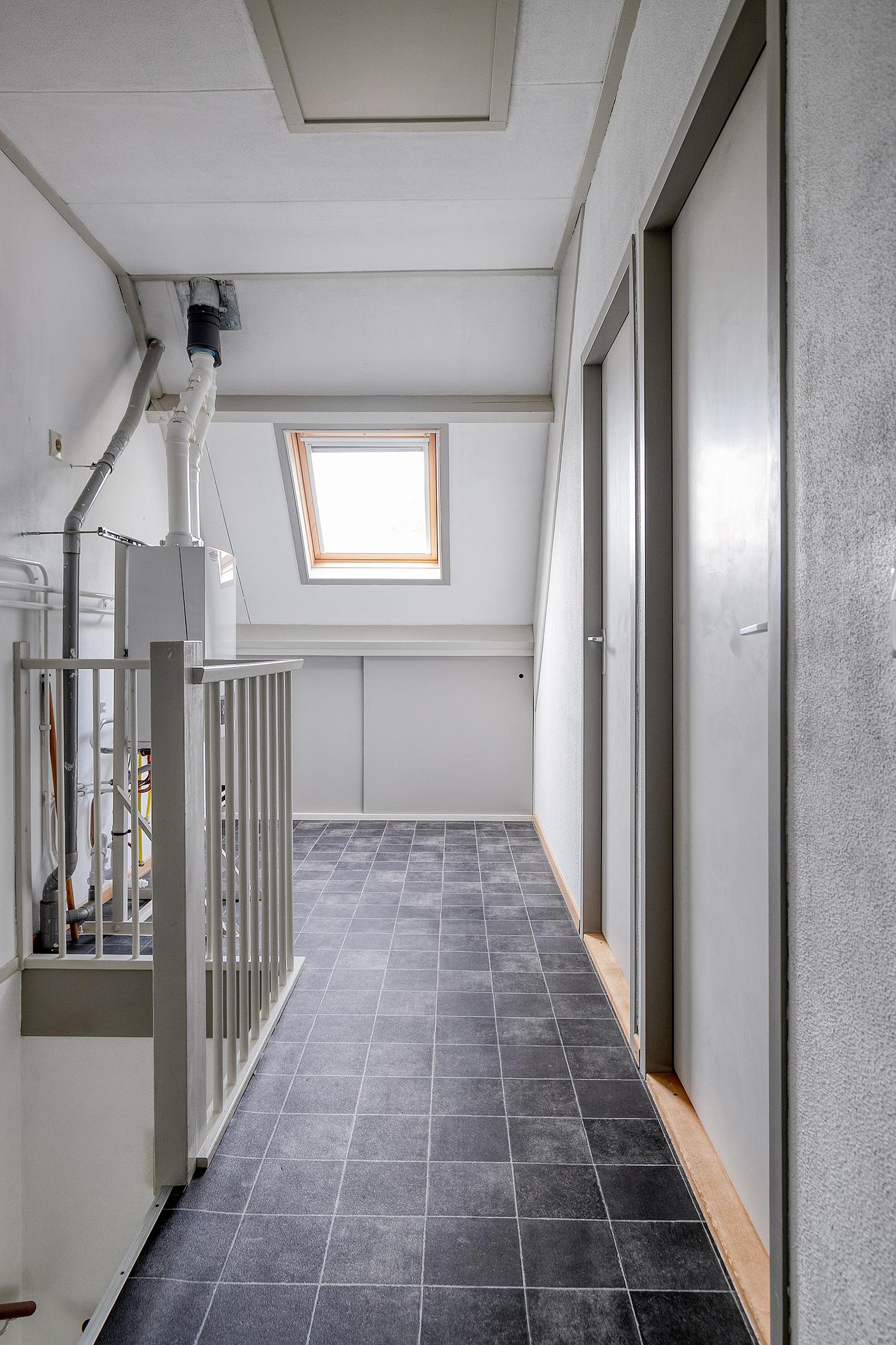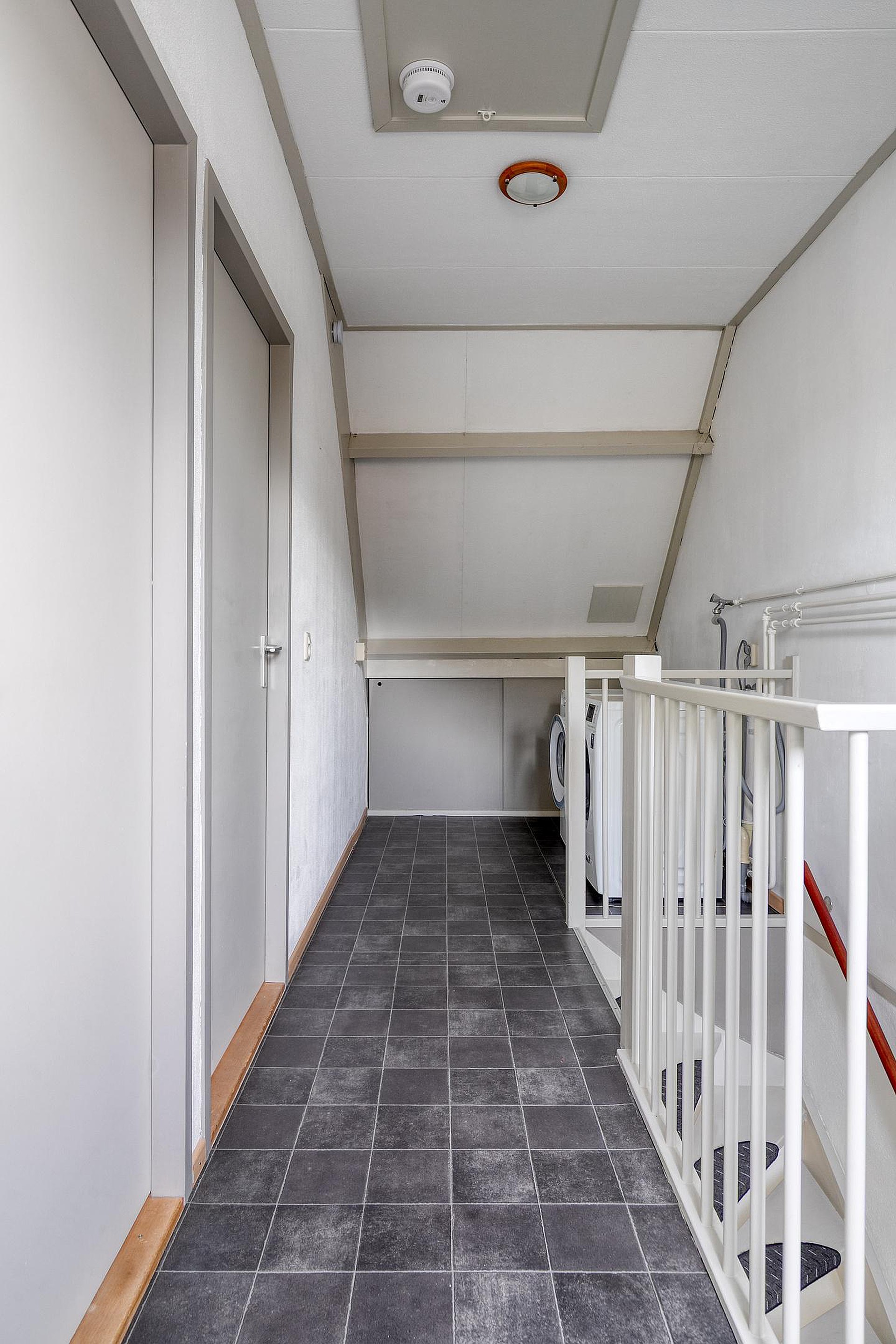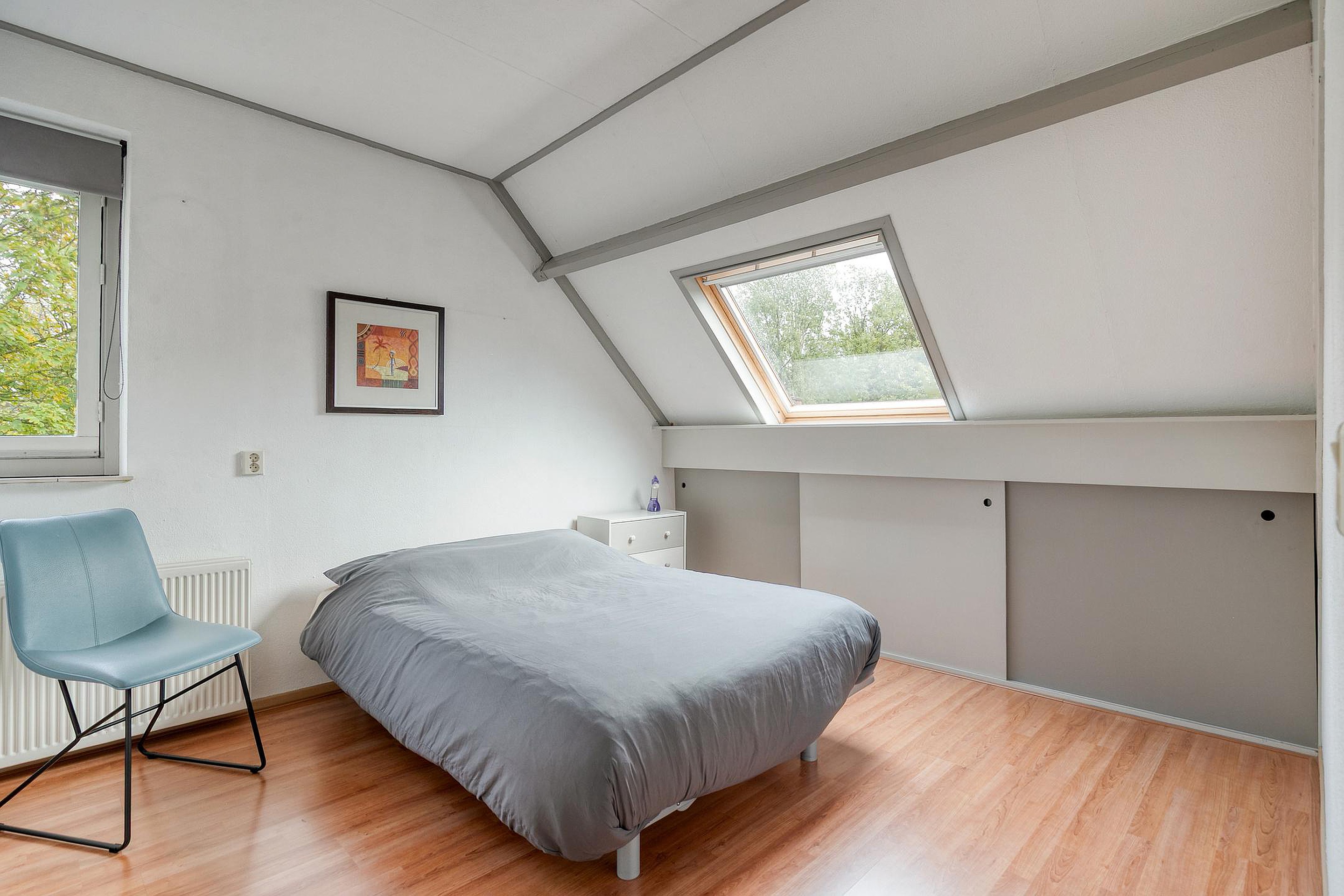 Boven aangekomen op de tweede verdieping ontdekt u nog eens twee extra slaapkamers. Beide kamers zijn veelzijdig te gebruiken, bijvoorbeeld als logeerkamer, thuiskantoor of extra opslagruimte. Op de overloop vindt u tevens de aansluitingen voor wasmachine en droger, evenals extra bergruimte onder het schuine dak. Dankzij de stahoogte op de vliering is ook deze zolder verrassend praktisch voor bergruimte.