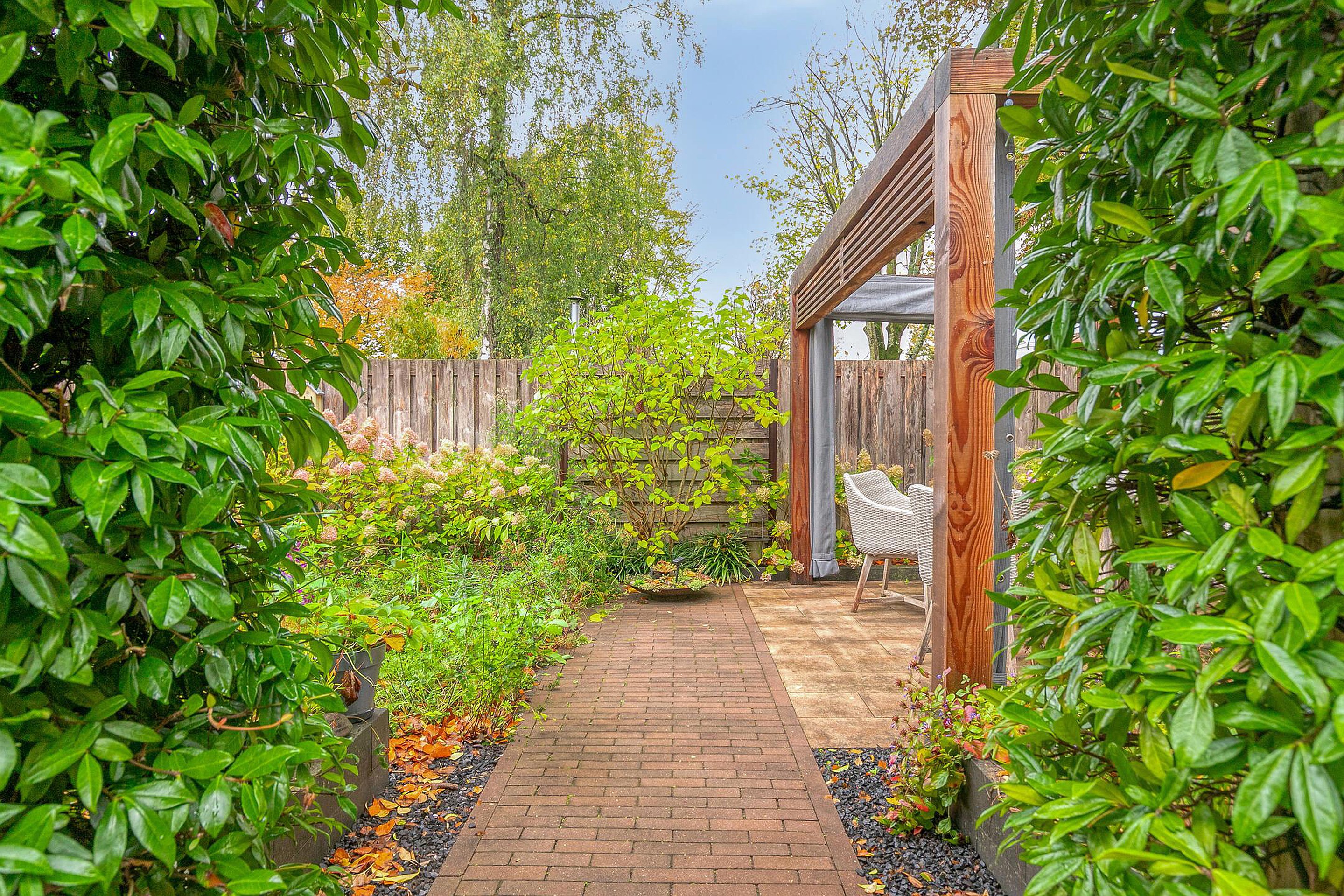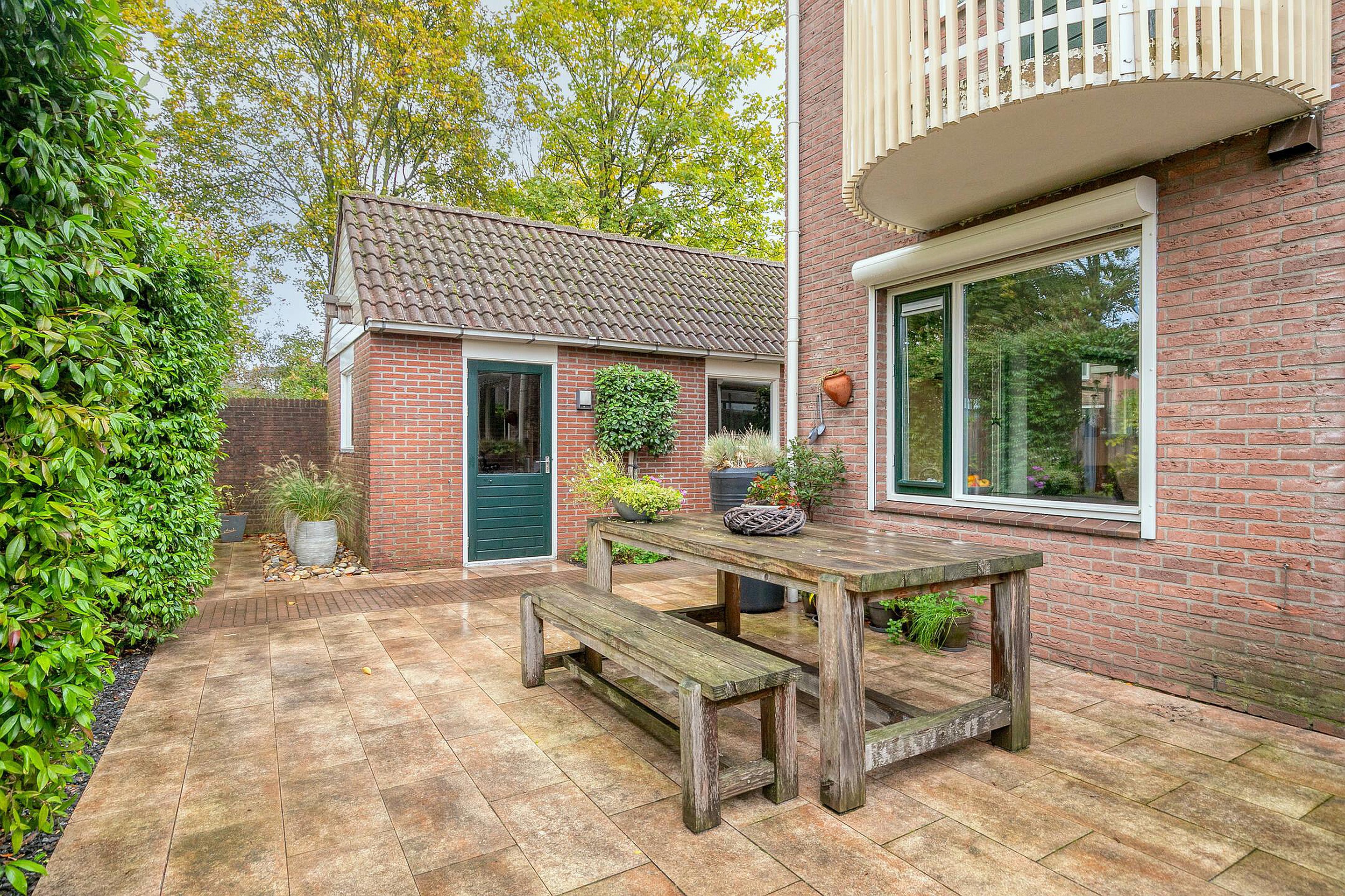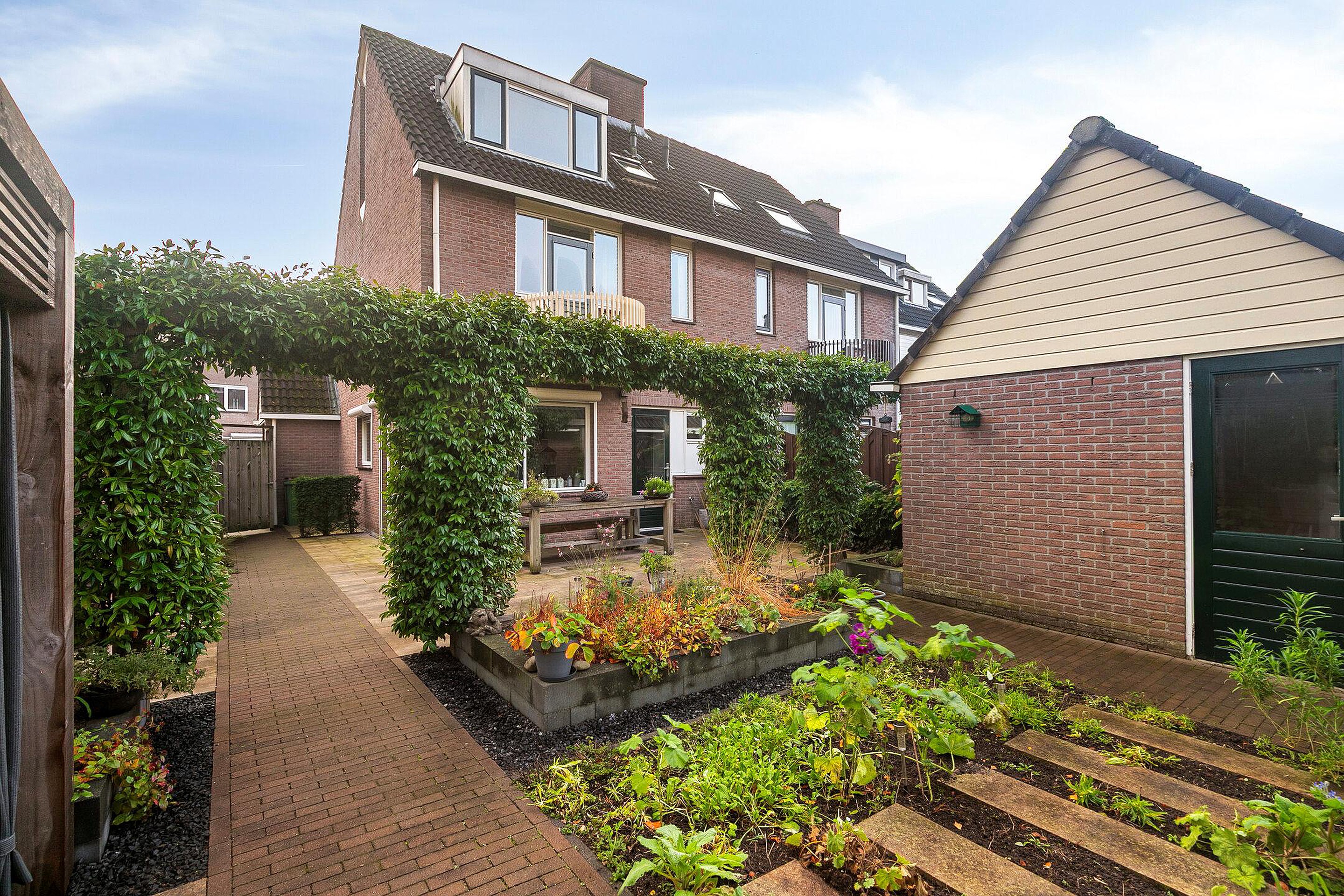 De voortuin is fraai aangelegd en geeft de woning direct een verzorgde uitstraling. Achter de woning ligt een zonnige tuin met veel privacy en groen. Hier kunt u volop genieten van het buitenleven, of u nu kiest voor een lounge set, eettafel of speelruimte voor kinderen. De tuin is onderhoudsvriendelijk aangelegd en beschikt over een berging, ideaal voor fietsen, tuingereedschap of andere spullen. Een heerlijke plek om in alle rust te ontspannen.