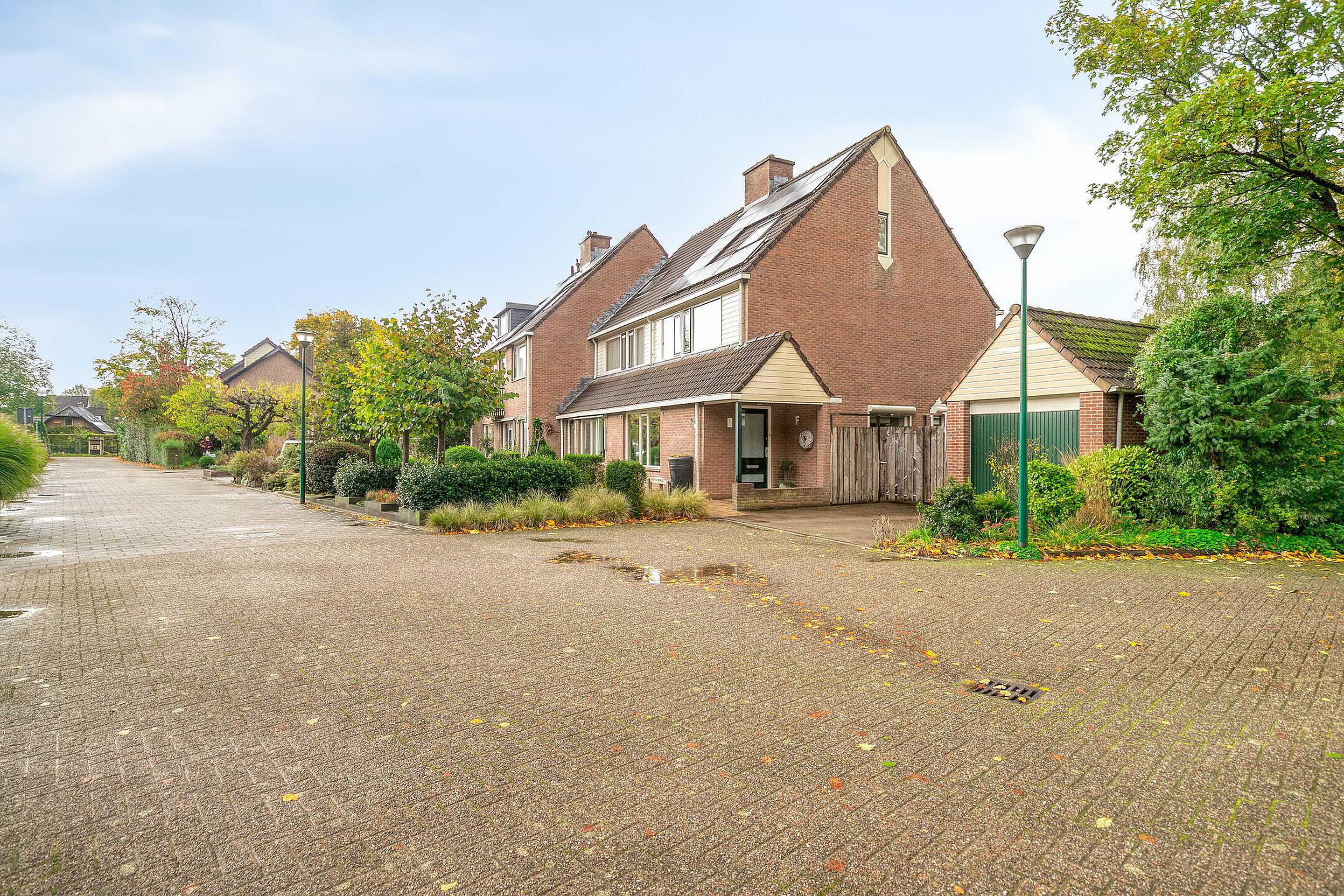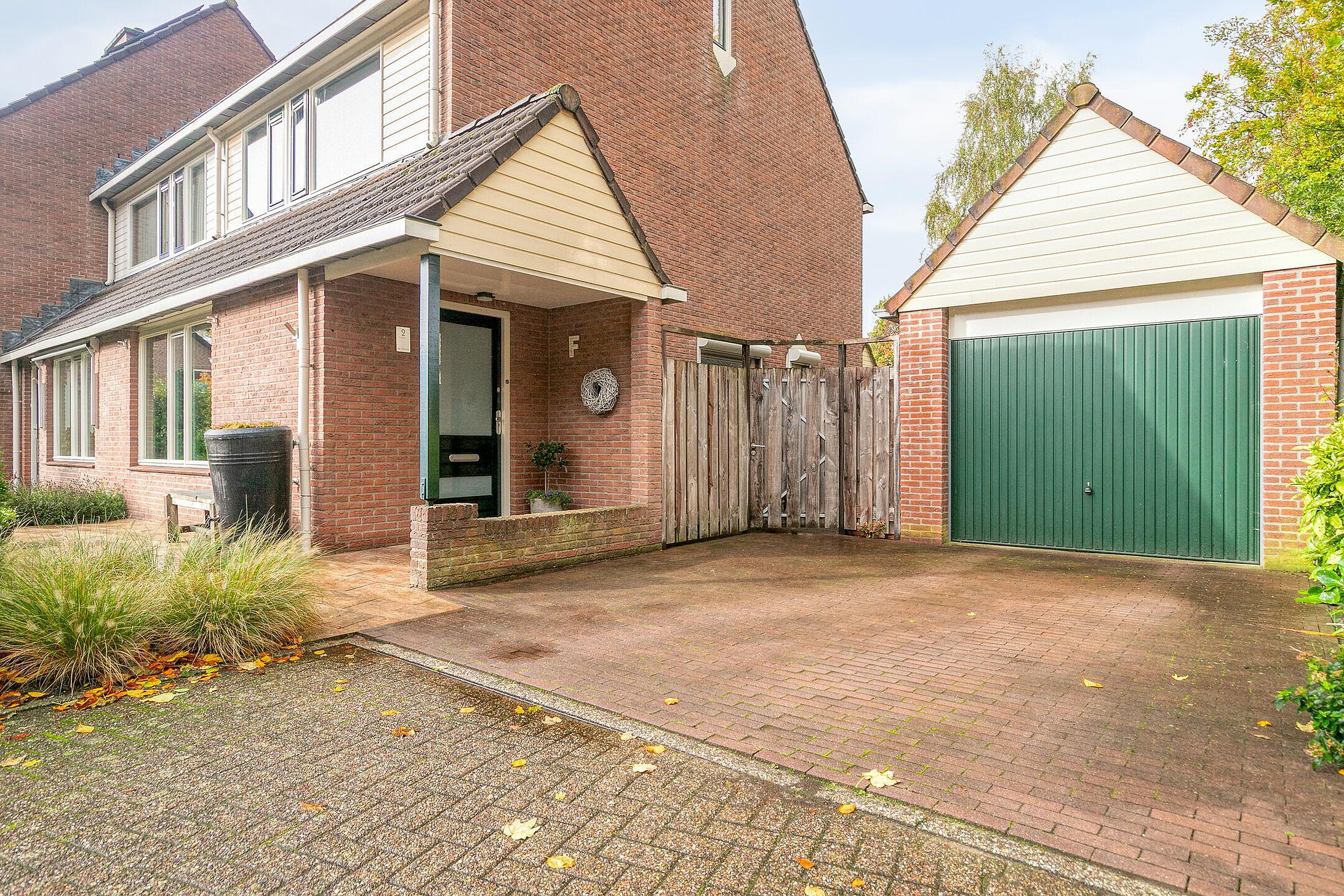 Aan de zijkant bevindt zich een ruime oprit met toegang tot de garage, waardoor er volop parkeergelegenheid is op eigen terrein.
