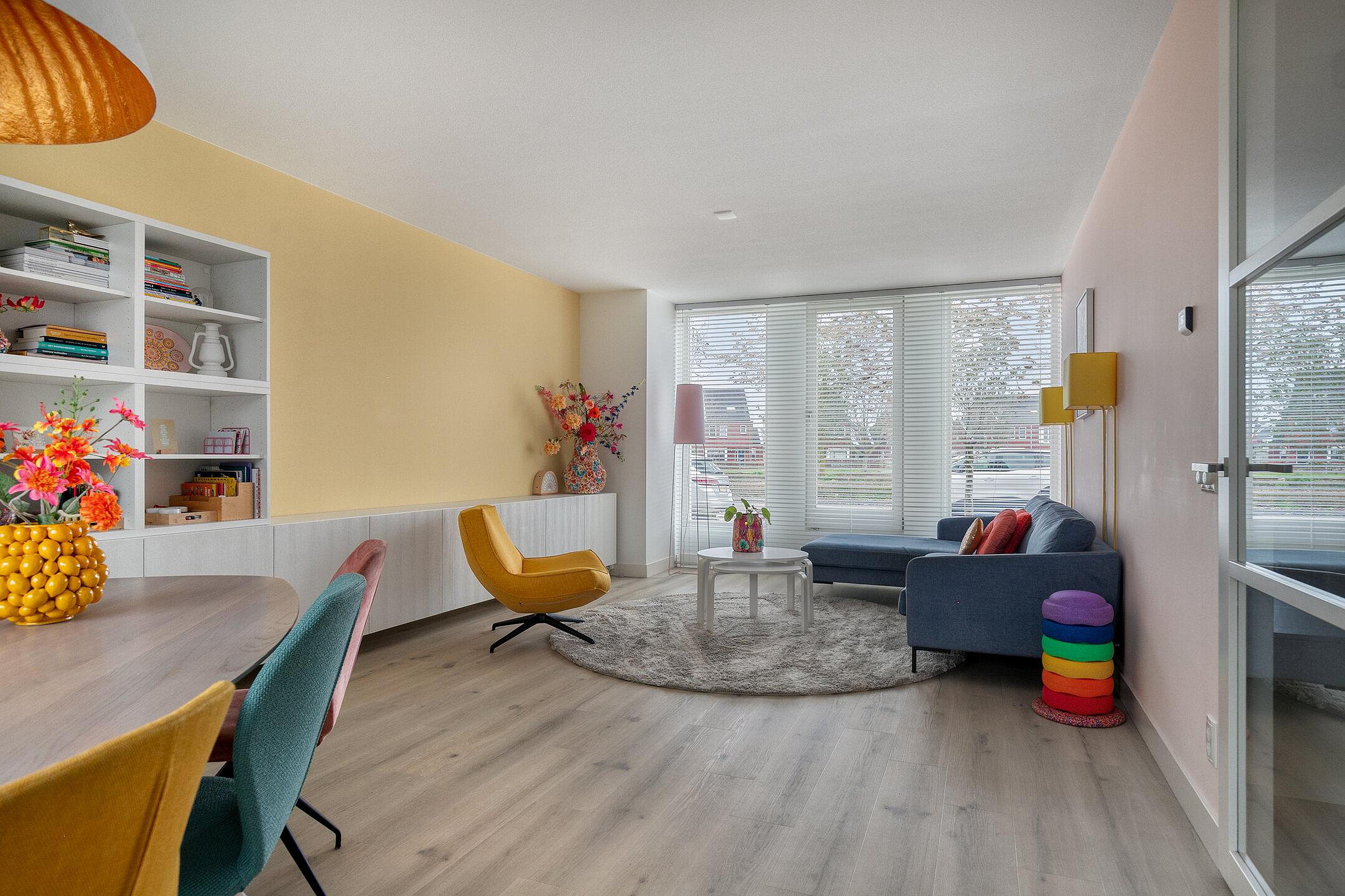 De woonkamer sluit direct aan op de hal en heeft een prettige open indeling en royale lichtinval dankzij de grote raampartijen aan de voorzijde. U heeft hier volop ruimte om zowel een comfortabele zithoek als een sfeervolle eethoek te creëren. Het uitzicht op de rustige straat en de ontspannen ambiance maken dit tot een heerlijke plek om te ontspannen of gasten te ontvangen.