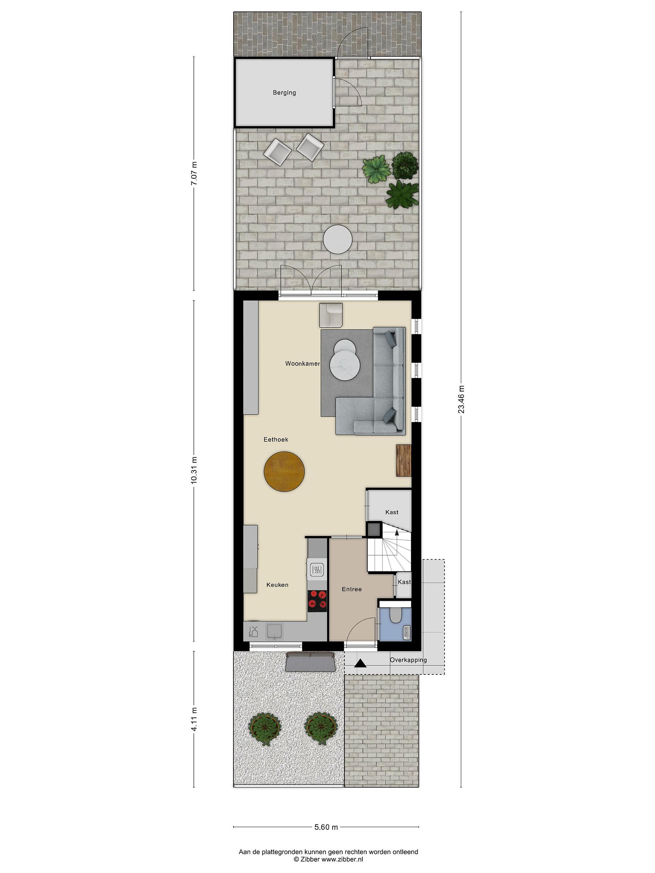 In de woonkamer geniet u van een lichte en open indeling, waarbij de ramen rondom voor een prachtige lichtinval zorgen. De ruimte biedt volop mogelijkheden om een comfortabele zithoek en een royale eethoek te creëren. Dankzij de moderne afwerking sluit de woonkamer naadloos aan bij de eigentijdse woonwensen. De openslaande deuren naar de tuin maken dit tot een ideale plek om binnen en buiten met elkaar te verbinden.