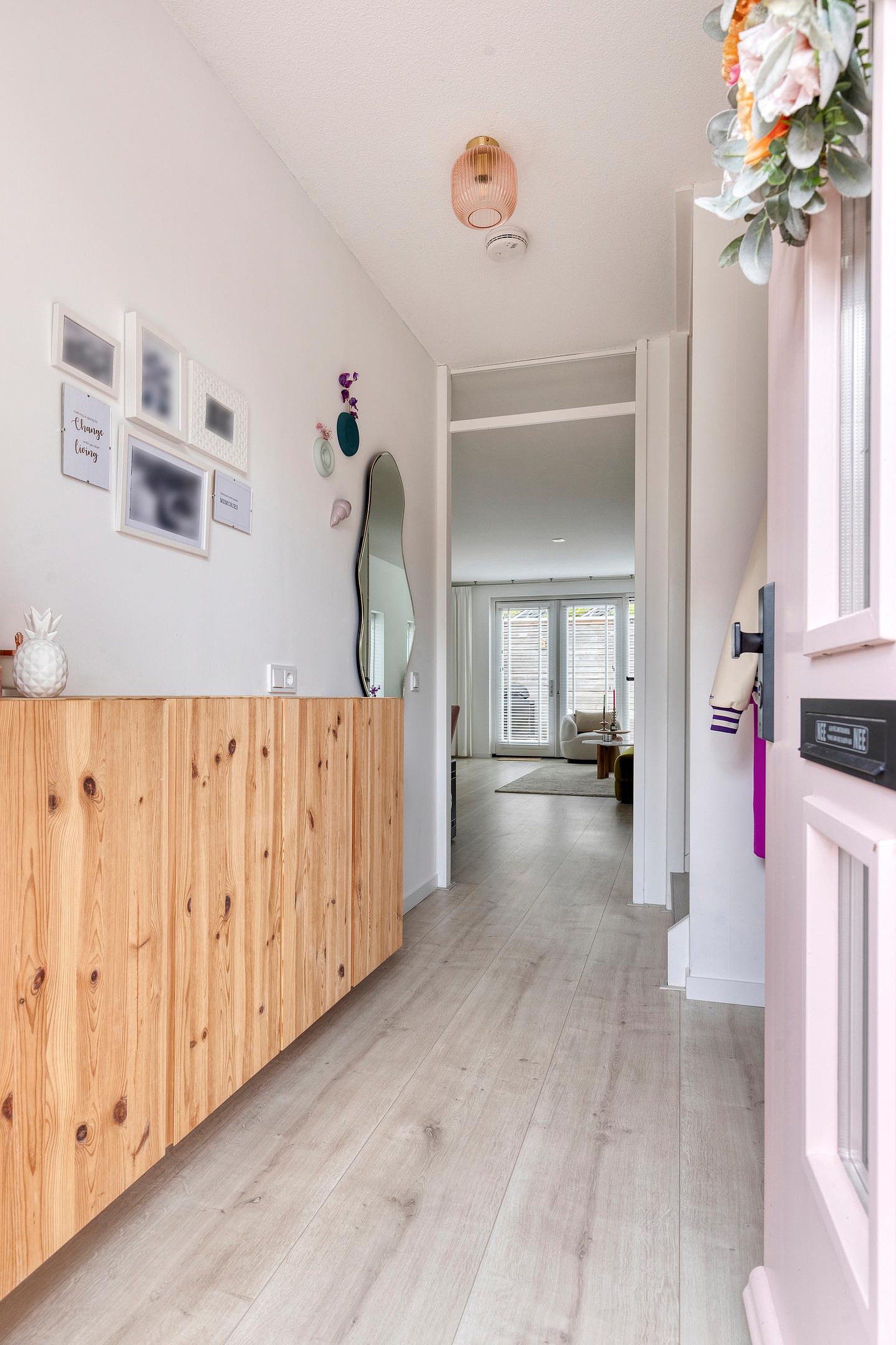 U betreedt de woning aan de voorzijde. Daar zijn voldoende parkeerplekken in de straat aanwezig. Eenmaal binnen betreedt u de hal, die u toegang biedt tot de toiletruimte, de trap naar de eerste verdieping en de doorgang naar de woonkamer en keuken. Deze entree vormt een prettige binnenkomst en geeft meteen een indruk van de verzorgde uitstraling van het huis.