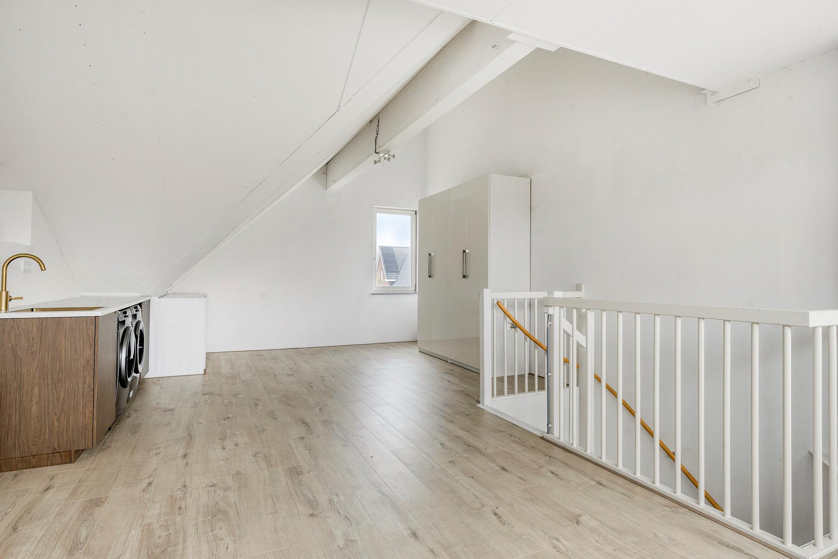 Via een vaste trap bereikt u de tweede verdieping, waar zich nog een ruime slaapkamer over de gehele verdieping bevindt. De grote raampartijen zorgen voor veel daglicht, wat deze kamer bijzonder aangenaam maakt. Deze ruimte is niet alleen geschikt als slaapkamer, maar kan ook uitstekend gebruikt worden als hobbykamer of werkkamer. Hier bevindt zich tevens een recent gerealiseerde wasruimte met aansluiting voor witgoed en een praktische spoelbak met kraan. Indien gewenst kunnen op deze verdieping gemakkelijk 2 a 3 kamers gecreëerd worden. Een vlizotrap leidt naar de zolder, die perfect dienstdoet als extra opslagruimte.
