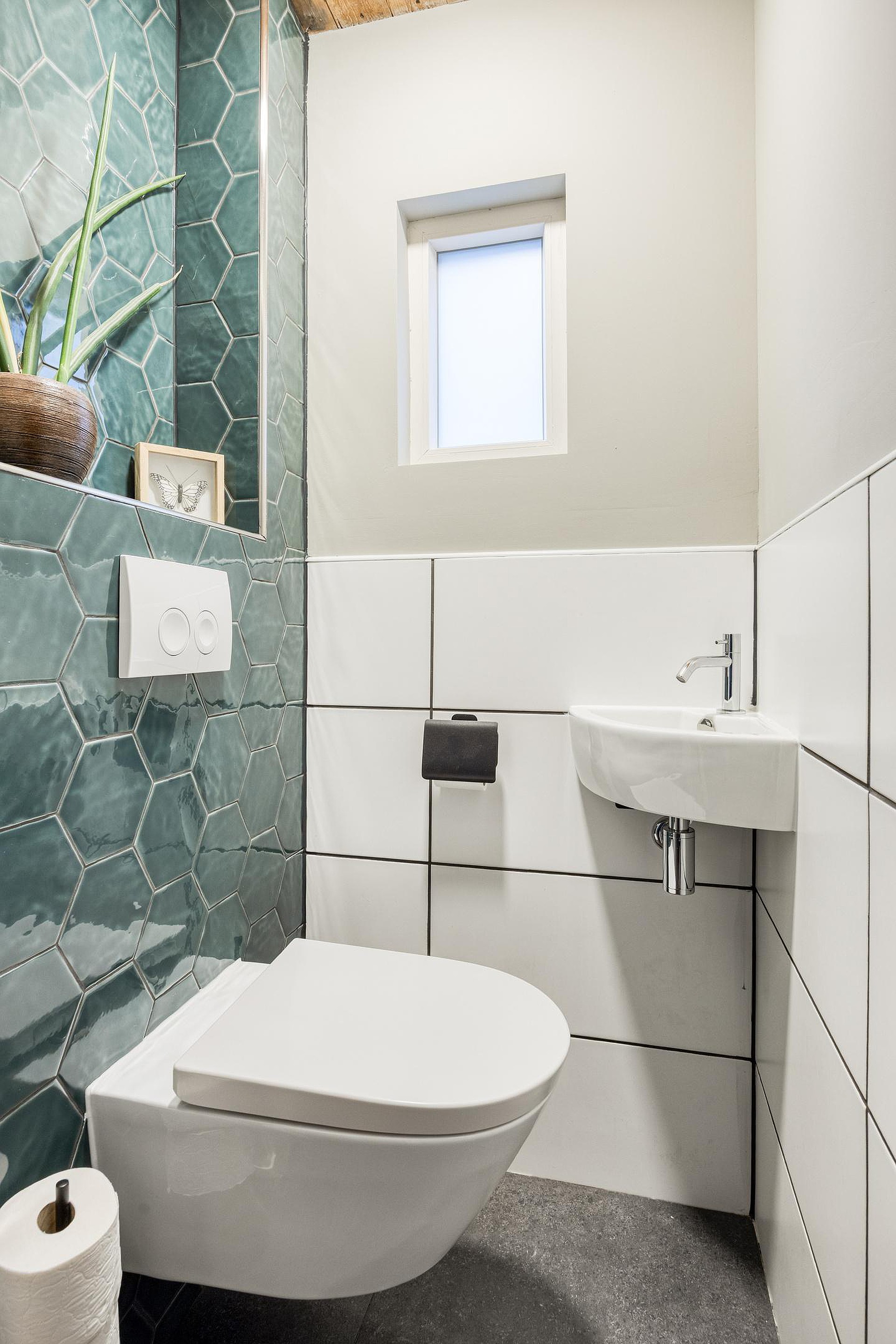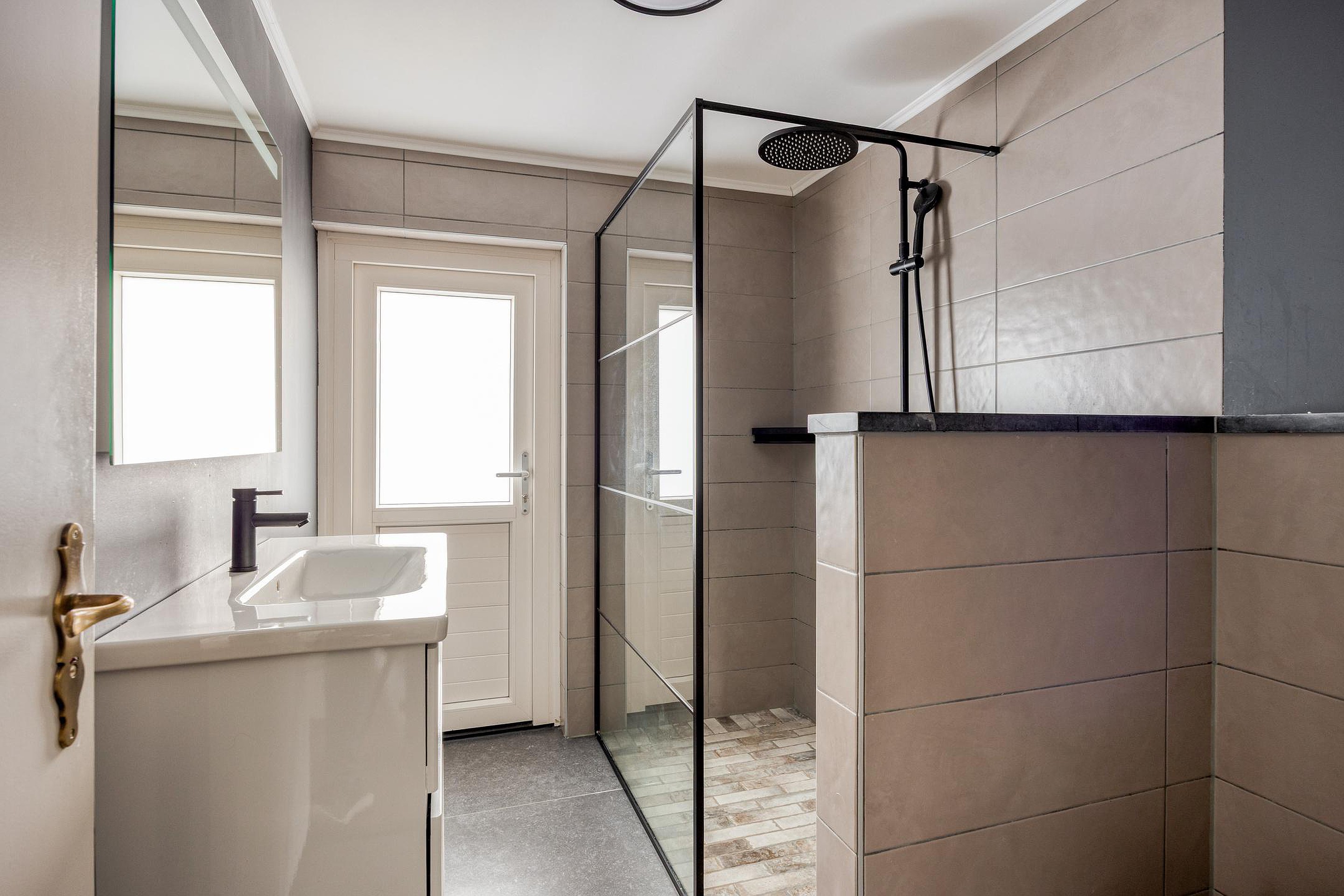 De modern ingerichte badkamer is volledig betegeld en straalt een frisse, eigentijdse stijl uit. U beschikt hier over een ruime douche met glazen wand, een zwevend toilet en een verzorgde wastafel met spiegel. Het geheel is strak afgewerkt en is een fijne plek om de dag te starten of af te sluiten.