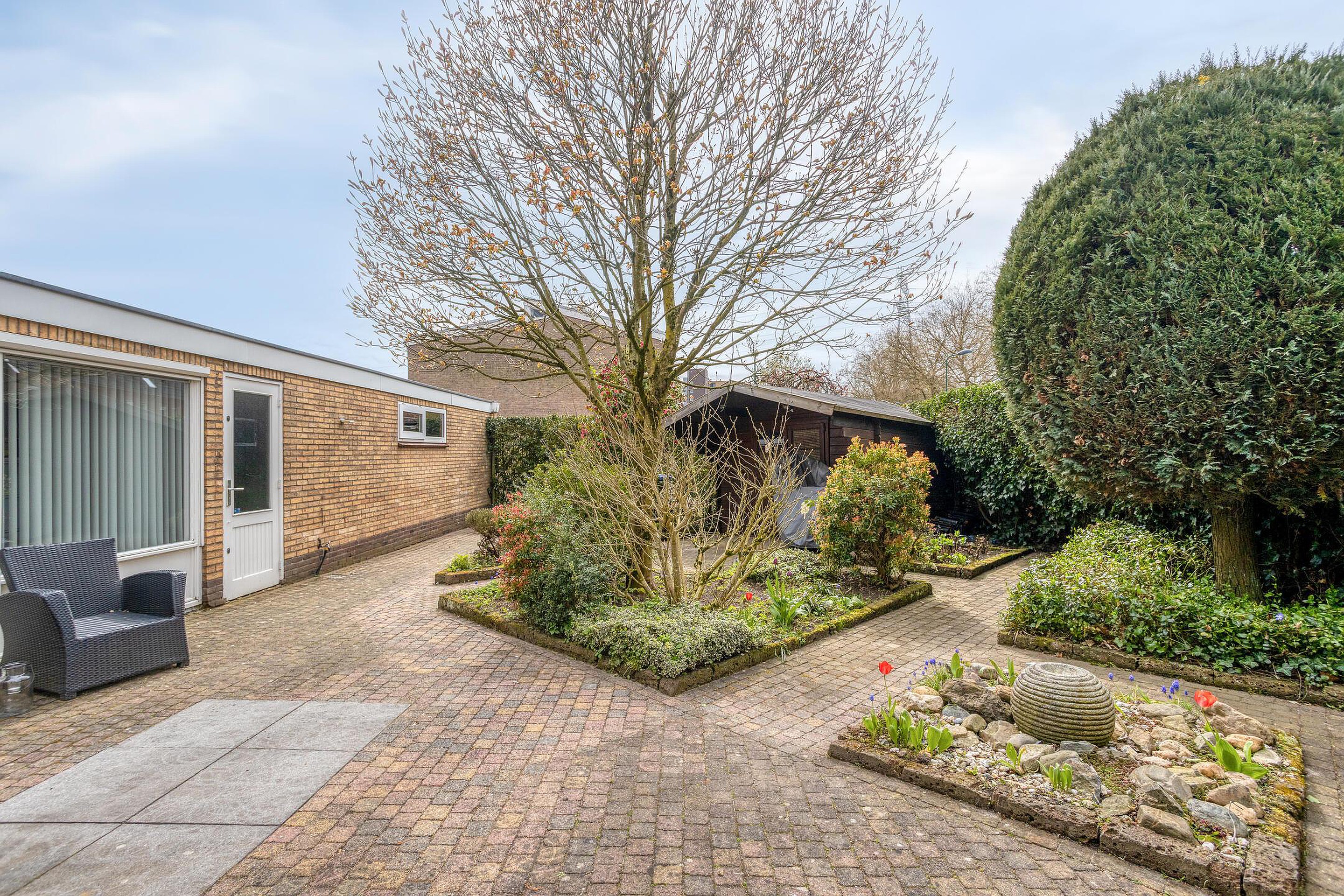 Ook buiten is het plaatje compleet. De tuin is royaal opgezet en biedt veel privacy, met meerdere plekken om te zitten en te genieten van het buitenleven. In combinatie met de garage en de praktische indeling ontstaat hier een plek waar u zich zeker thuis zult voelen.