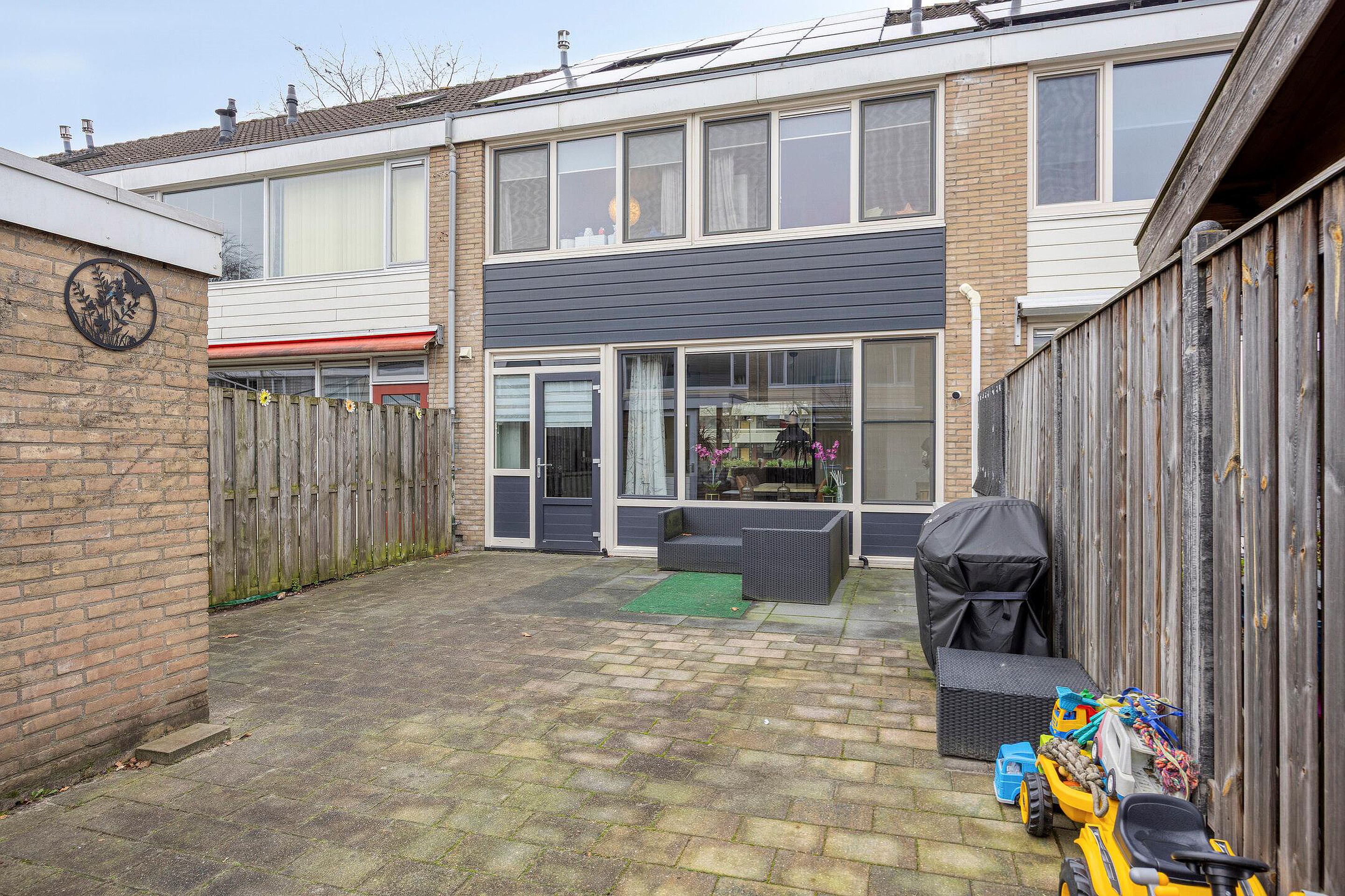 De zonnige achtertuin is grotendeels bestraat, waardoor u meerdere plekken heeft om een lounge set, eettafel of speelruimte te creëren. Dankzij de gunstige ligging geniet u in de achtertuin en in de voortuin hier tot laat op de dag van de zon. Achterin de tuin vindt u een praktische, vrijstaande berging die perfect is voor het opbergen van fietsen, gereedschap of tuinmeubelen. Bovendien heeft de tuin een achterom, wat voor extra comfort zorgt.