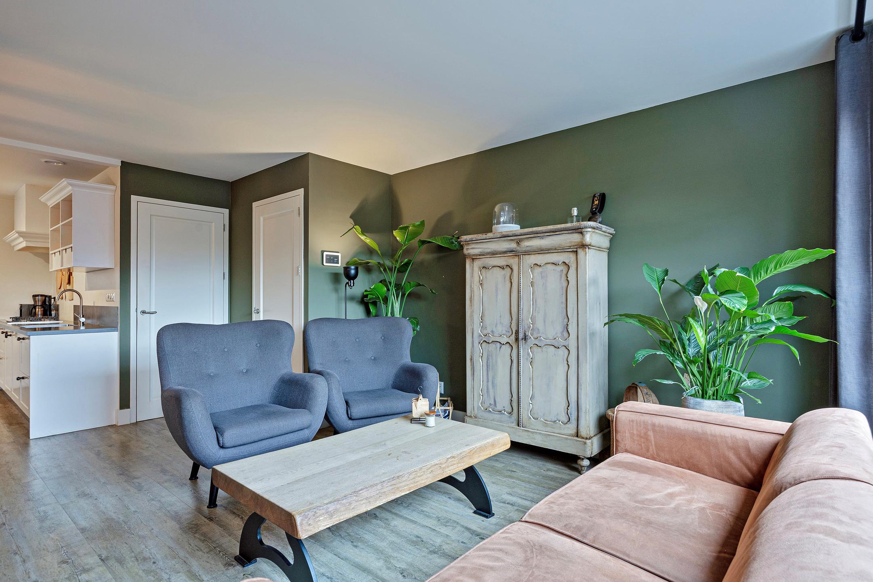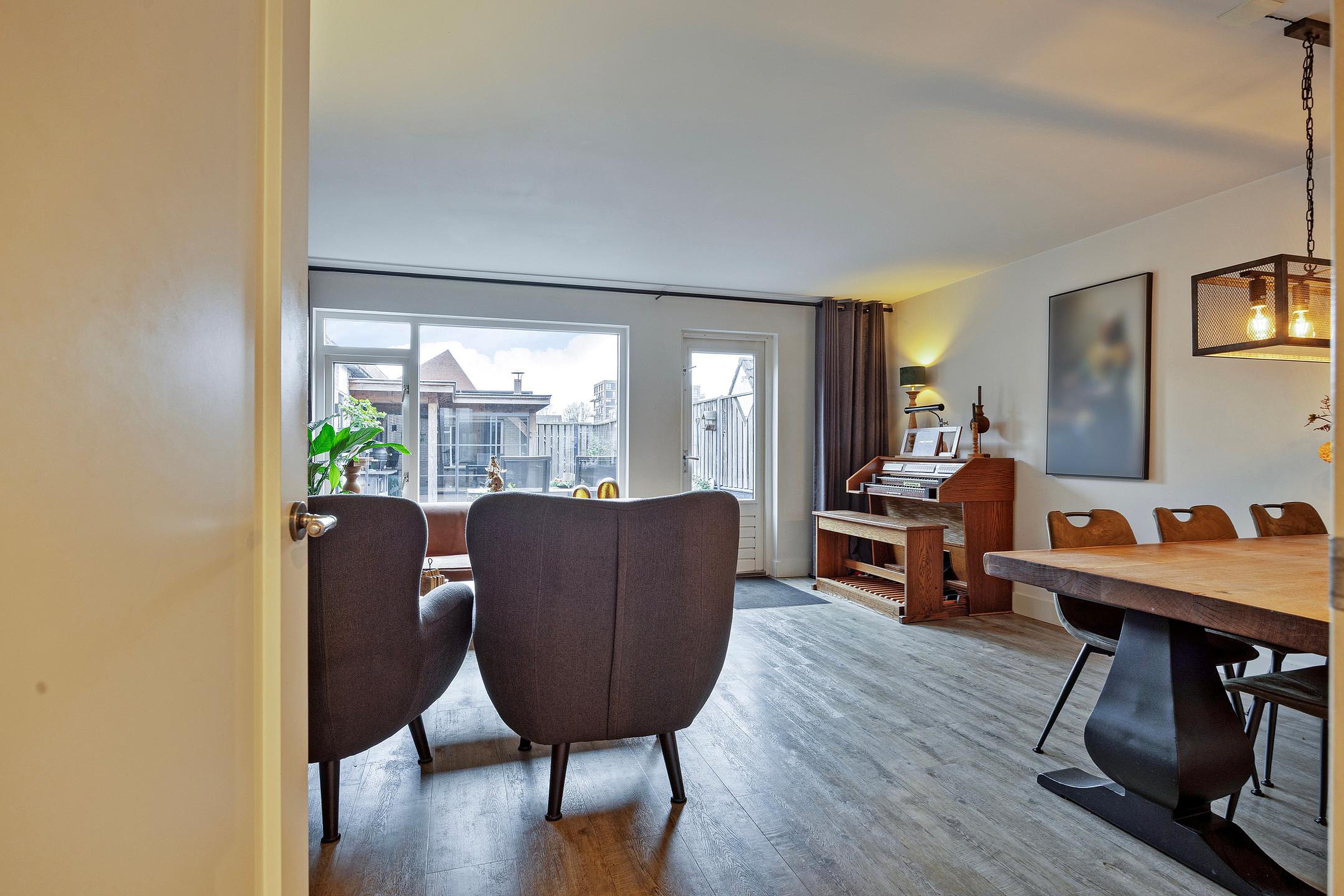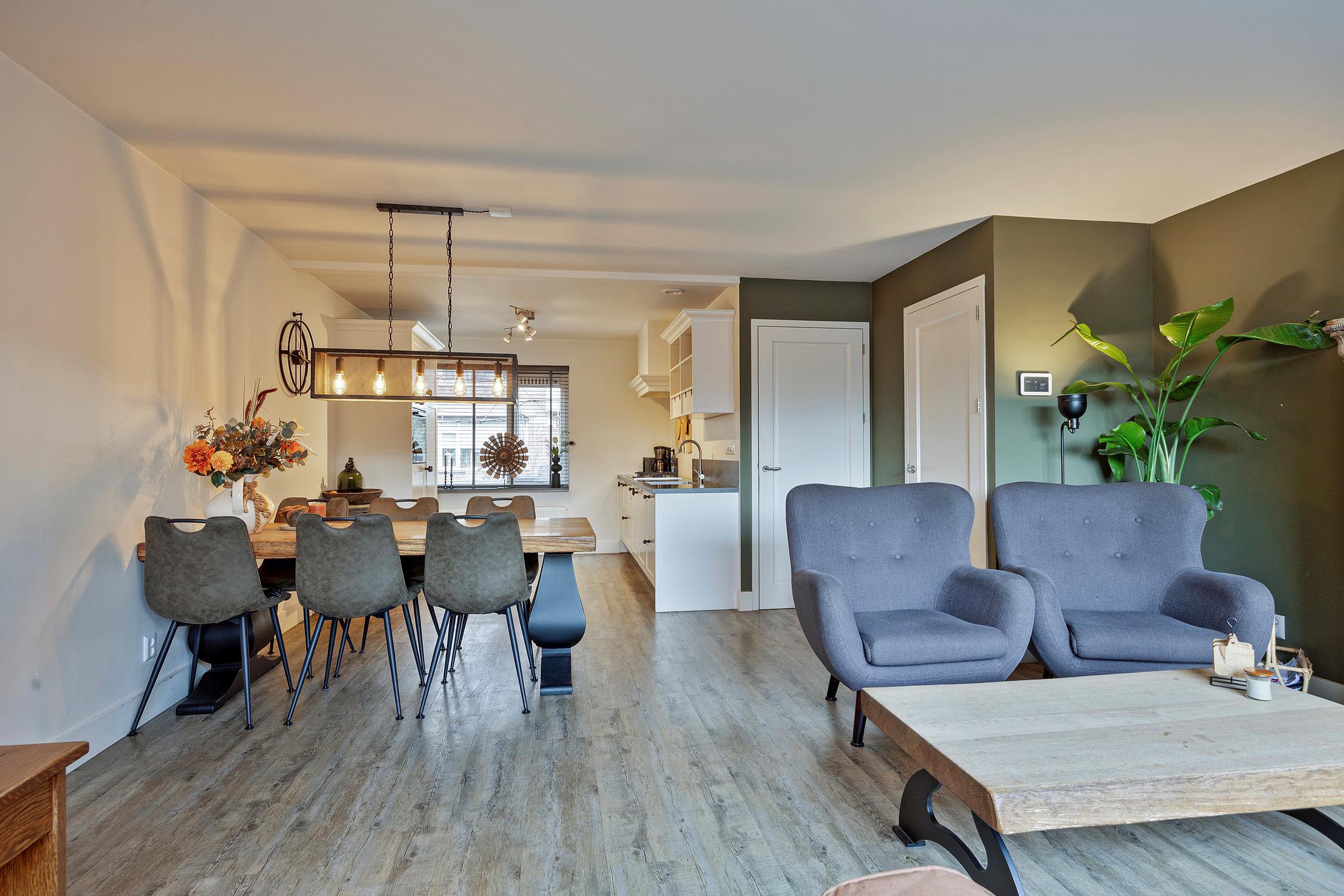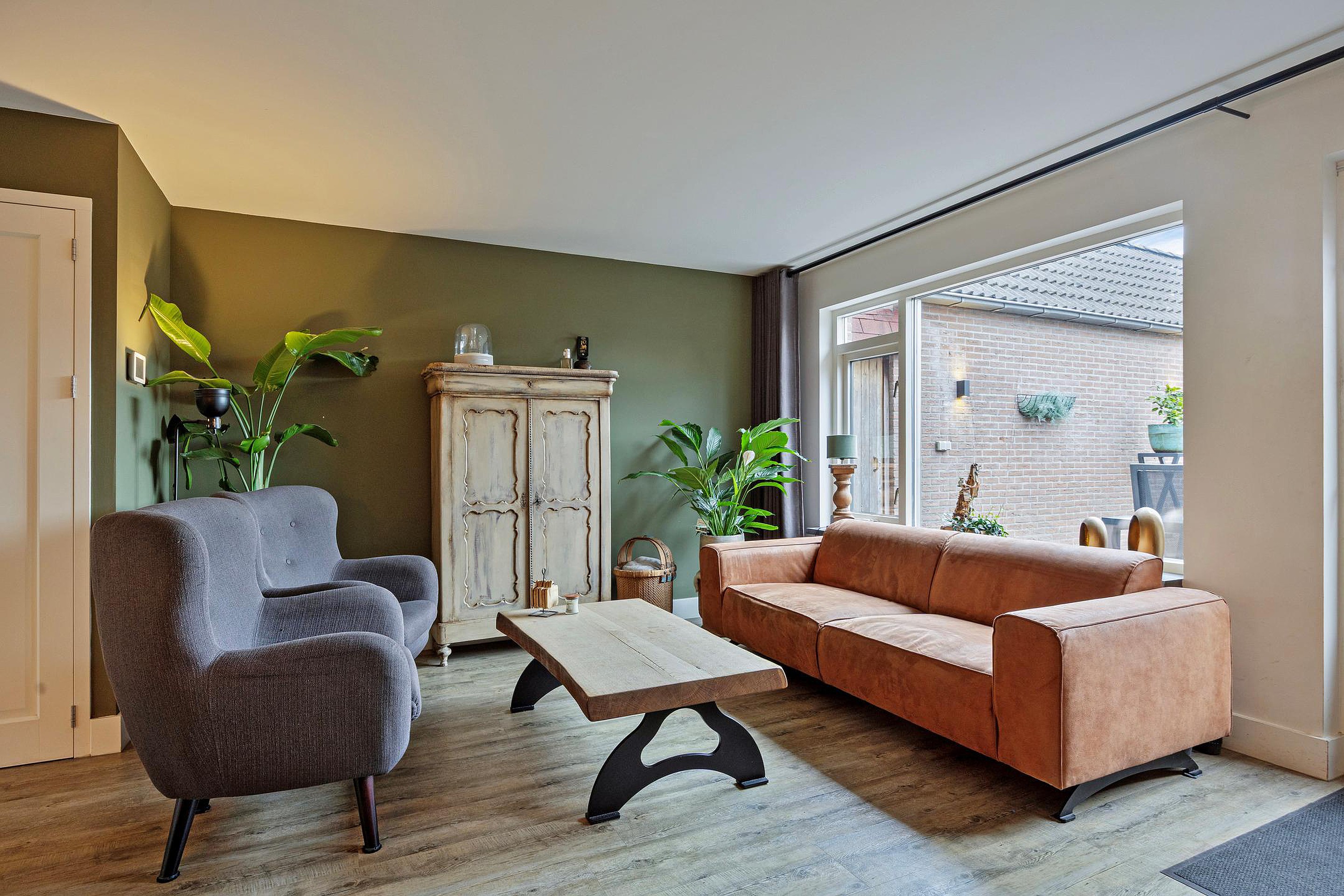 Via de entree stapt u een verzorgde hal binnen, met toegang tot het toilet met fonteintje, en de trapopgang. Eenmaal in de woonkamer merkt u direct hoe prettig de ruimte voelt: sfeervolle kleuren, grote raamvlakken en een natuurlijke overgang naar de tuin creëren een ontspannen leefruimte. De eethoek ligt centraal in de ruimte en vormt een gezellige schakel tussen de woonkamer en de royale keuken aan de voorzijde. Deze keuken is uitgerust met diverse inbouwapparatuur, waaronder een combi-oven, een gaskookplaat met schouwafzuigkap, koel-/vriescombinatie en een contrasterend werkblad dat genoeg werkruimte biedt. Alles is overzichtelijk, sfeervol en praktisch ingedeeld; helemaal klaar voor uw culinaire hoogstandjes.