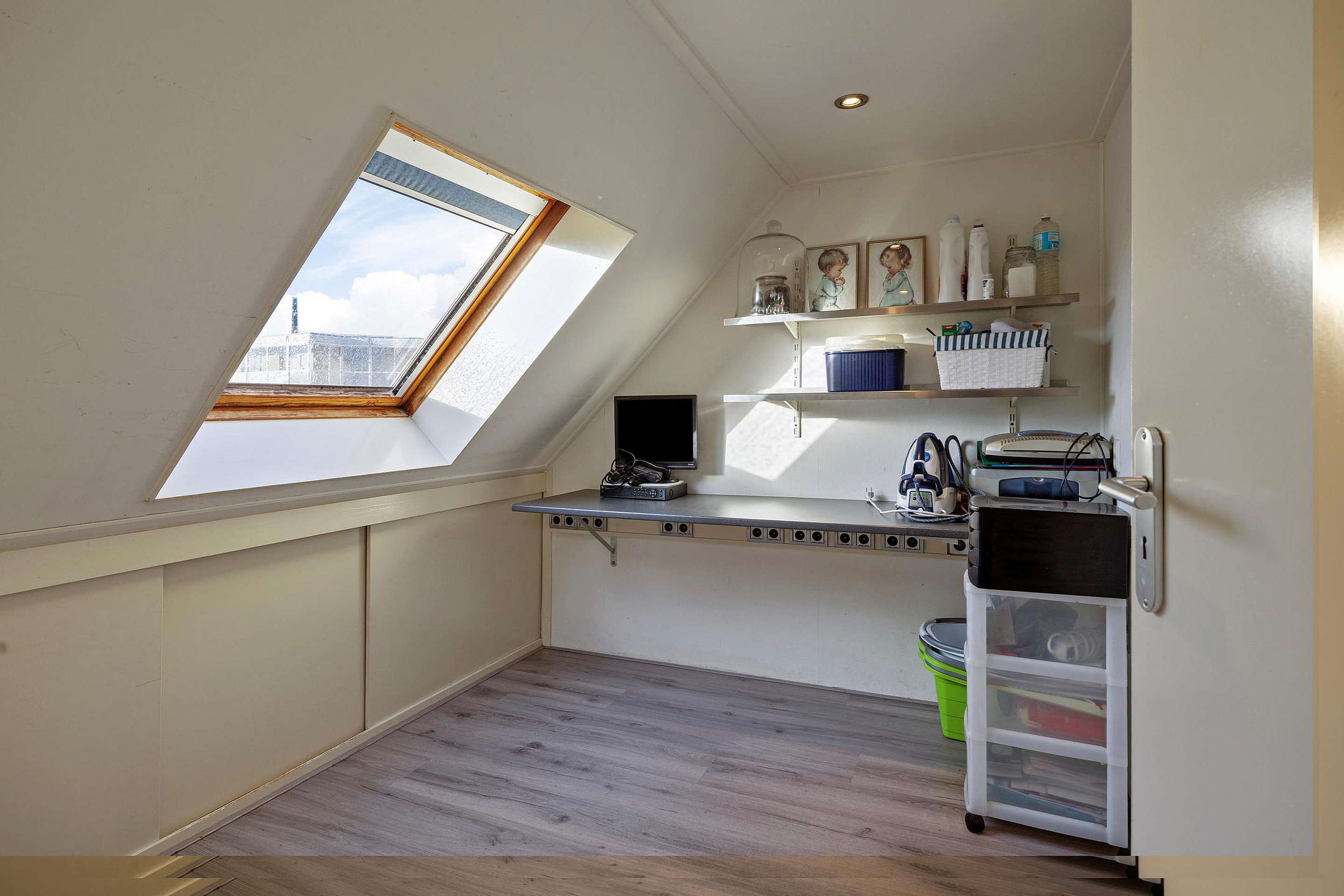 Op de tweede verdieping vindt u een praktische overloop met wasruimte, airconditioning, voldoende bergruimte achter de knieschotten en toegang tot nog twee slaapkamers. Ook deze kamers zijn netjes afgewerkt en beide voorzien van een dakraam die zorgt voor aangenaam daglicht. De verdieping voelt verrassend ruim dankzij de slimme indeling. Middels een vlizotrap bereikt u de bergzolder, waar u nog meer opbergruimte tot uw beschikking heeft.
