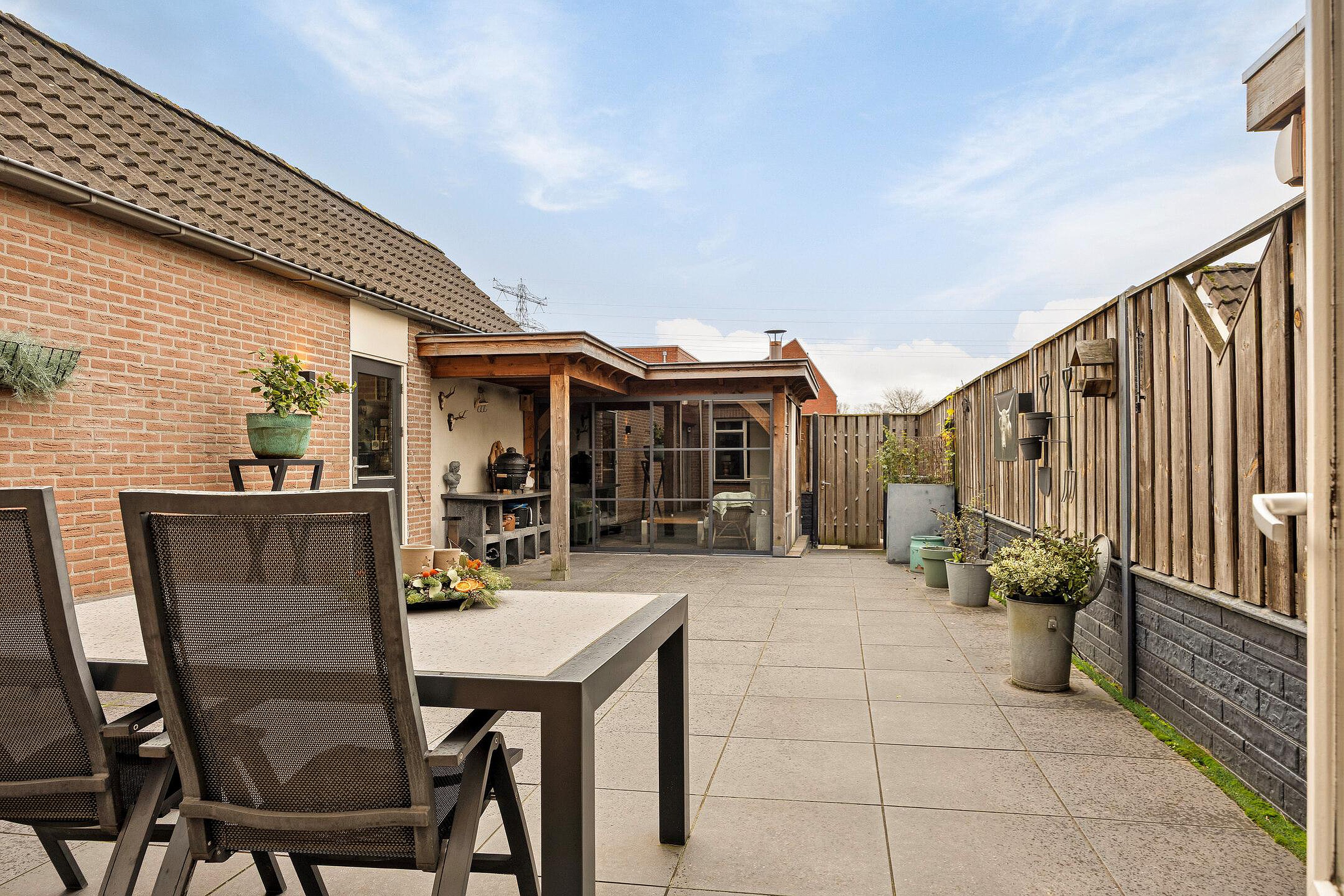 De achtertuin is een van de grote troeven van deze woning. Breed, onderhoudsvriendelijk en volledig omheind: een heerlijke plek waar u de hele dag graag zit. De veranda, met glazen schuifwanden, houtkachel en elektra, zorgt voor een sfeervolle buitenruimte die u het hele jaar door kunt gebruiken. Aangrenzend beschikt u nog over een handige overkapping, voor bijvoorbeeld een barbecue. Vanuit de tuin loopt u bovendien zo naar de vrijstaande garage, die zowel voor opslag als hobby of parkeren bijzonder praktisch is, en er is een achterom. Aan de voorzijde beschikt u over een ruime oprit voor meerdere auto’s.