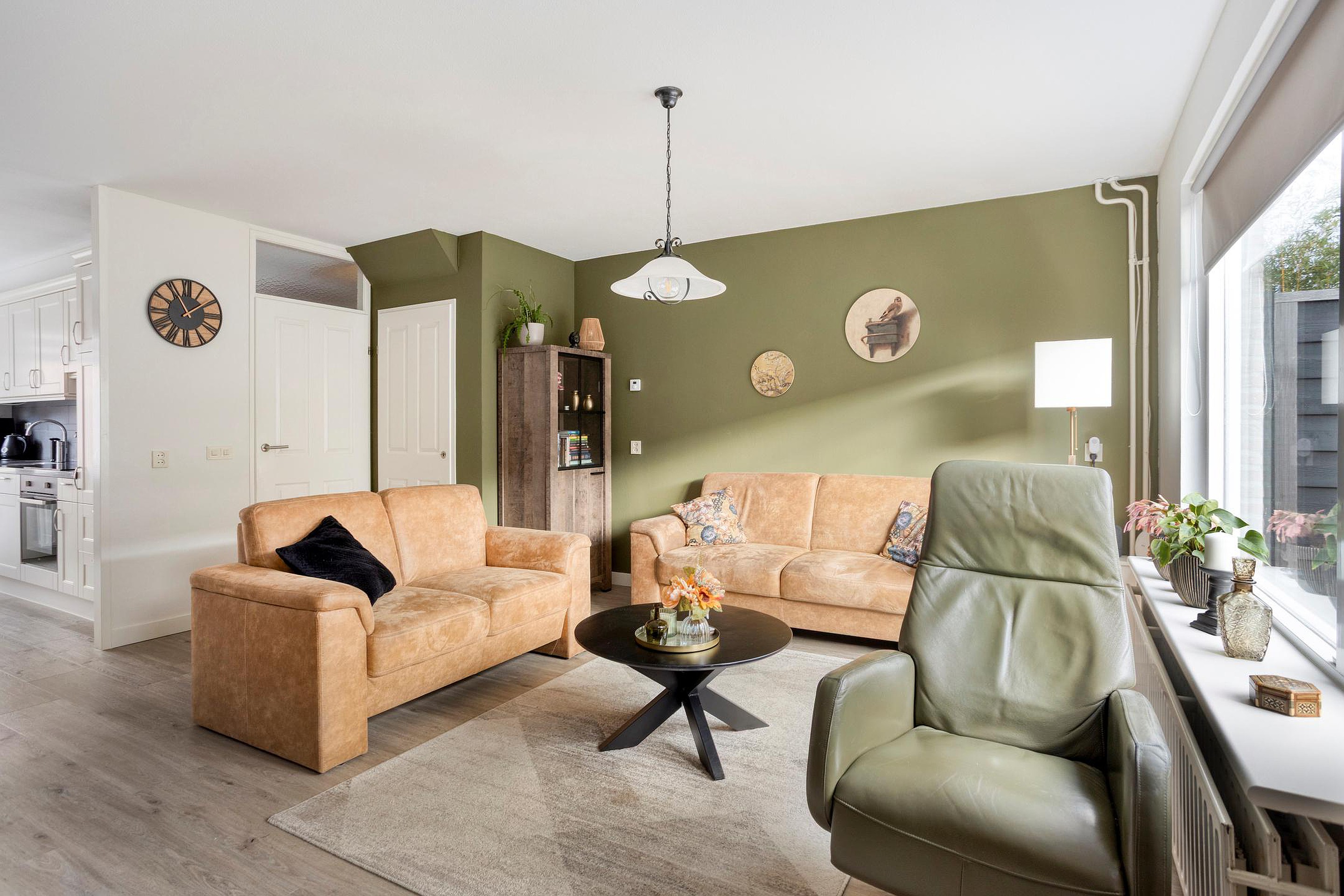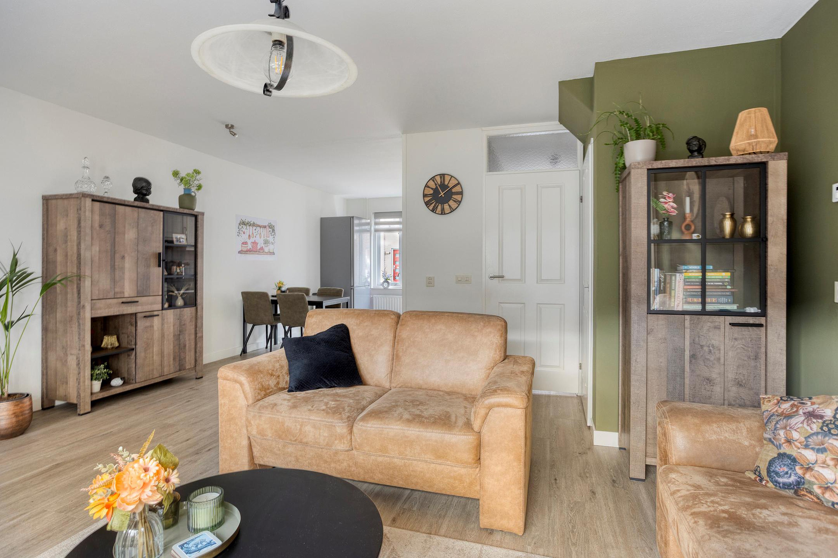 Via de hal betreedt u de lichte woonkamer, waar de open indeling zorgt voor een aangenaam gevoel van ruimte. De kamer biedt volop mogelijkheden om een gezellige zithoek en eethoek te creëren. Dankzij de grote raampartijen geniet u van veel natuurlijk licht, terwijl de toegang tot de tuin de woonkamer verbindt met het buitenleven. Een heerlijke plek om te ontspannen of om gasten te ontvangen.