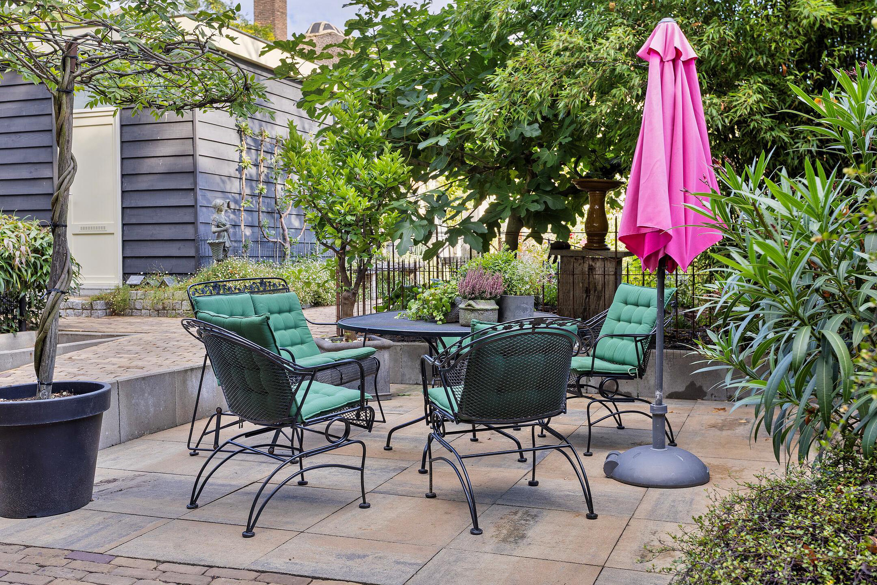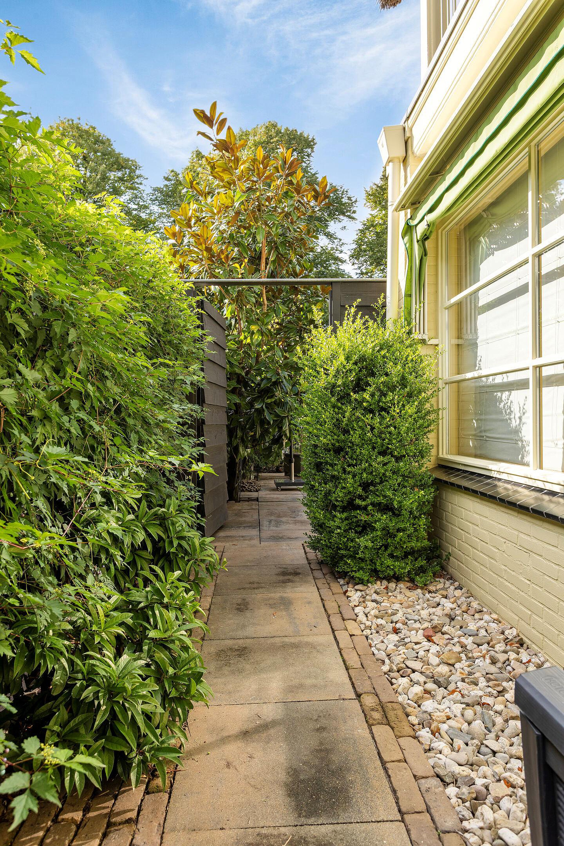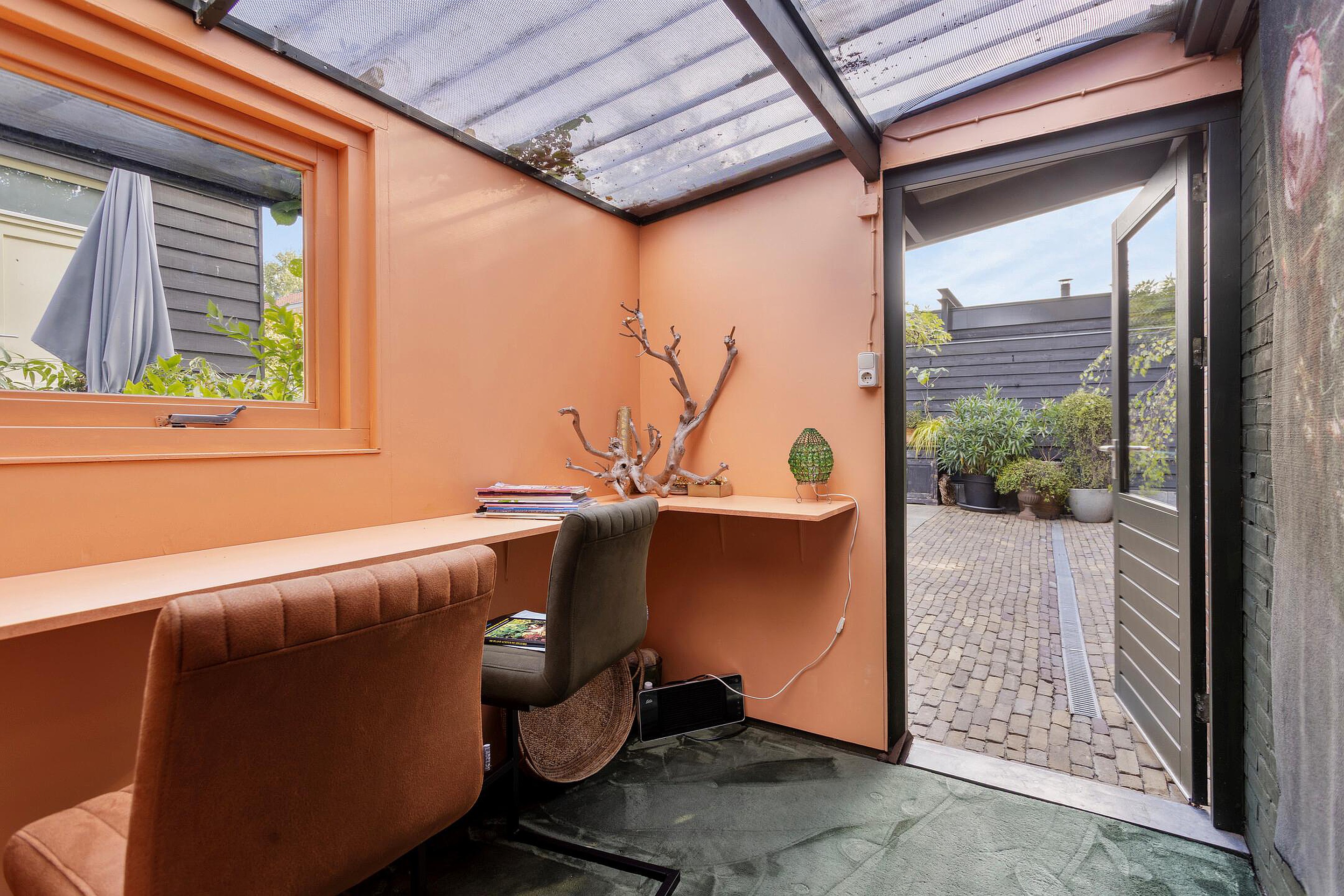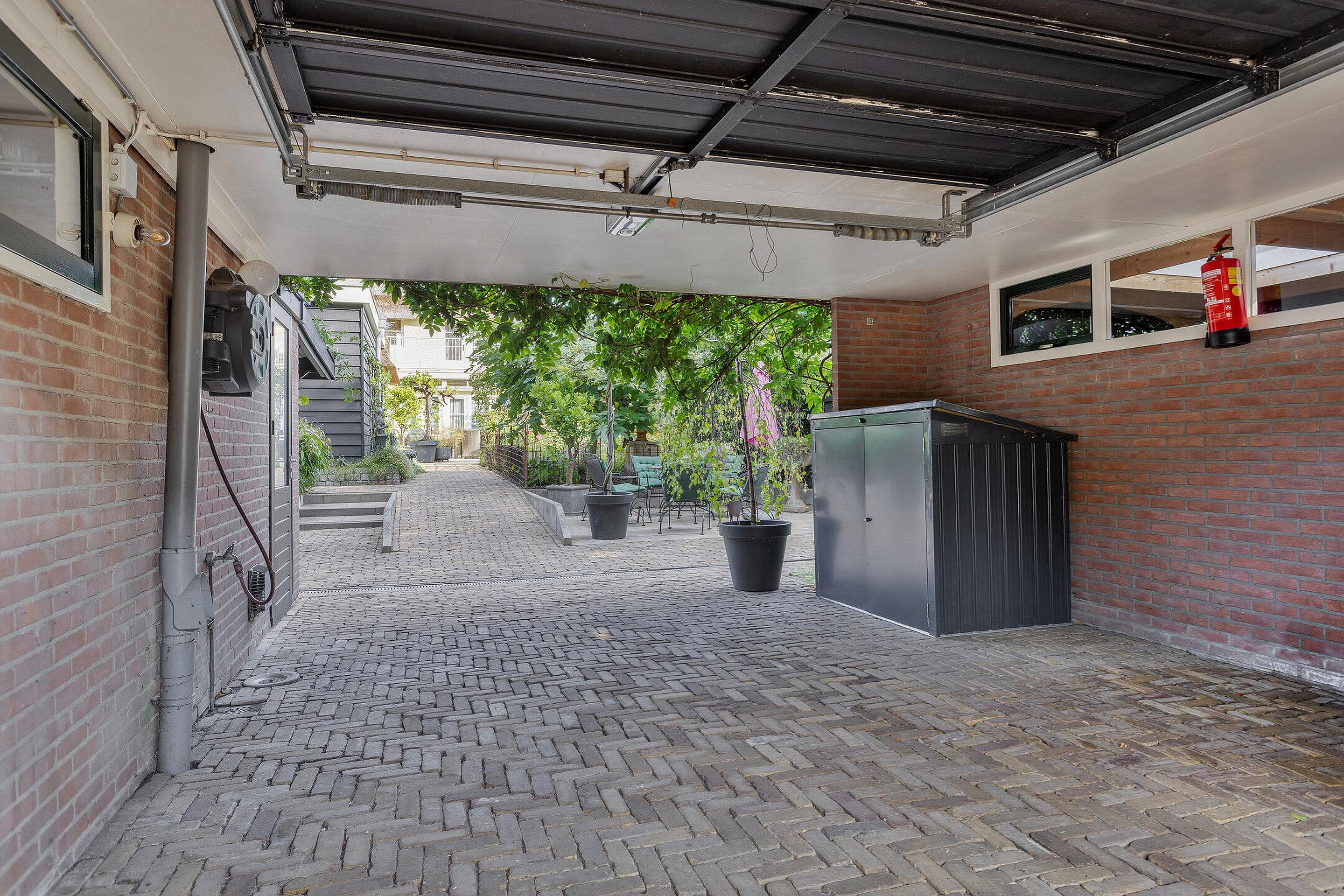 De tuin is zonder twijfel een van de meest bijzondere elementen van deze villa. Met 674 m2 eigen grond heeft u hier genoeg ruimte, privacy en rust. De tuin strekt zich ver naar achteren uit en biedt meerdere terrassen, sierlijke beplanting en verrassende doorkijkjes. Achterin staat een grote vrijstaande garage met aangrenzend een afsluitbare carport en een berging met dubbele lichtkoepel. Als extra toevoeging is er een knus tuinkamertje, sfeervol afgewerkt en voorzien van een raam. De tuin is ontworpen om elk seizoen tot zijn recht te laten komen: van het eerste voorjaarzonnetje tot de warme zomeravonden. Het is een plek waar u kunt eten, loungen, tuinieren en ontspannen — alles in uw eigen groene omgeving.