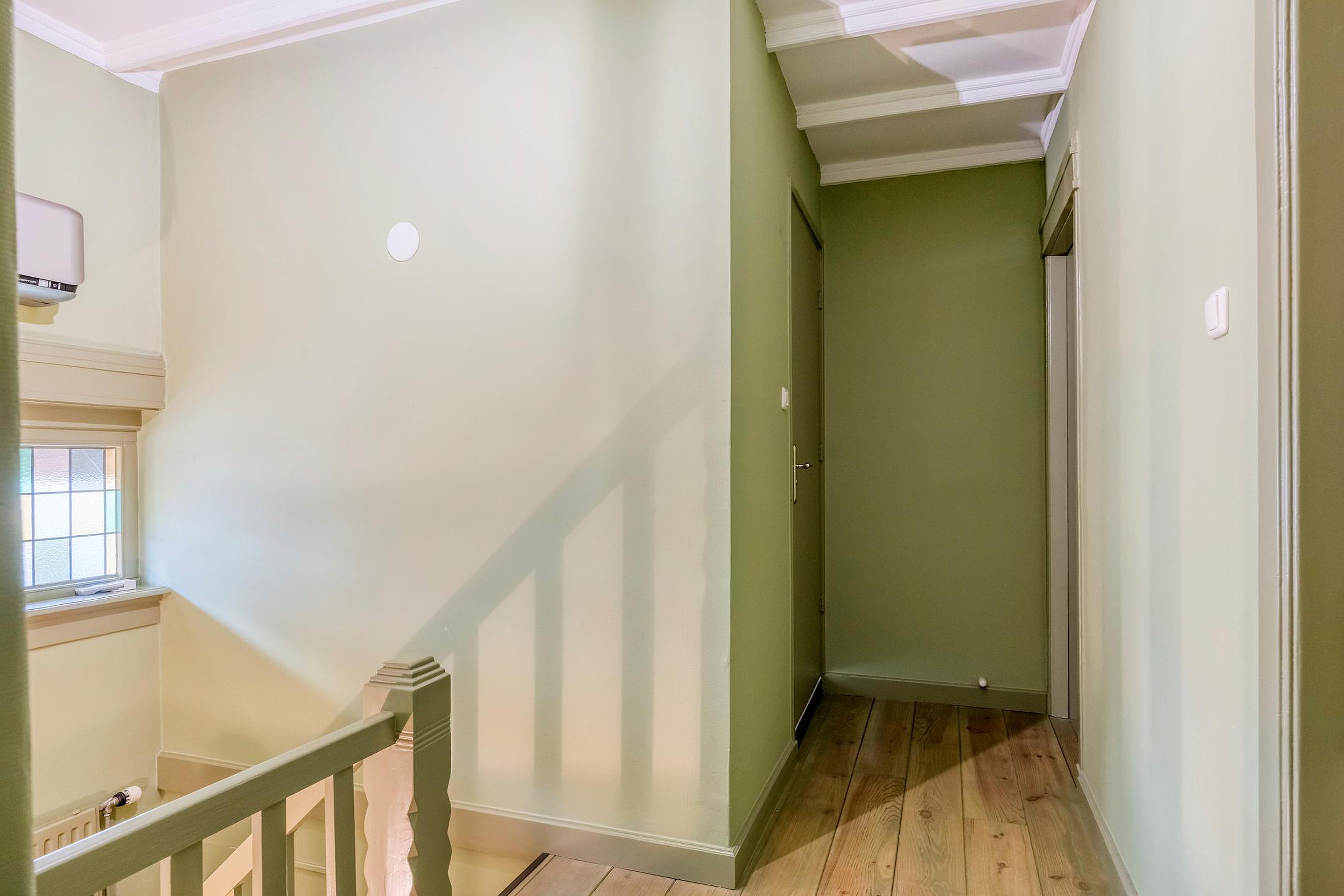 De eerste verdieping brengt u op de lichte overloop met airconditioning, en grenst aan drie ruime slaapkamers en een tweede badkamer. Elke kamer heeft zijn eigen charme en een handig wastafelmeubel. De grootste kamer is eveneens voorzien van airconditioning en biedt toegang tot het royale balkon middels openslaande deuren, vanwaar u uitkijkt over de diepe tuin. De badkamer op deze verdieping is functioneel ingedeeld met een wastafel, douche en toilet. De verdieping voelt luchtig door de ruimte en de hoeveelheid daglicht die overal naar binnen valt.