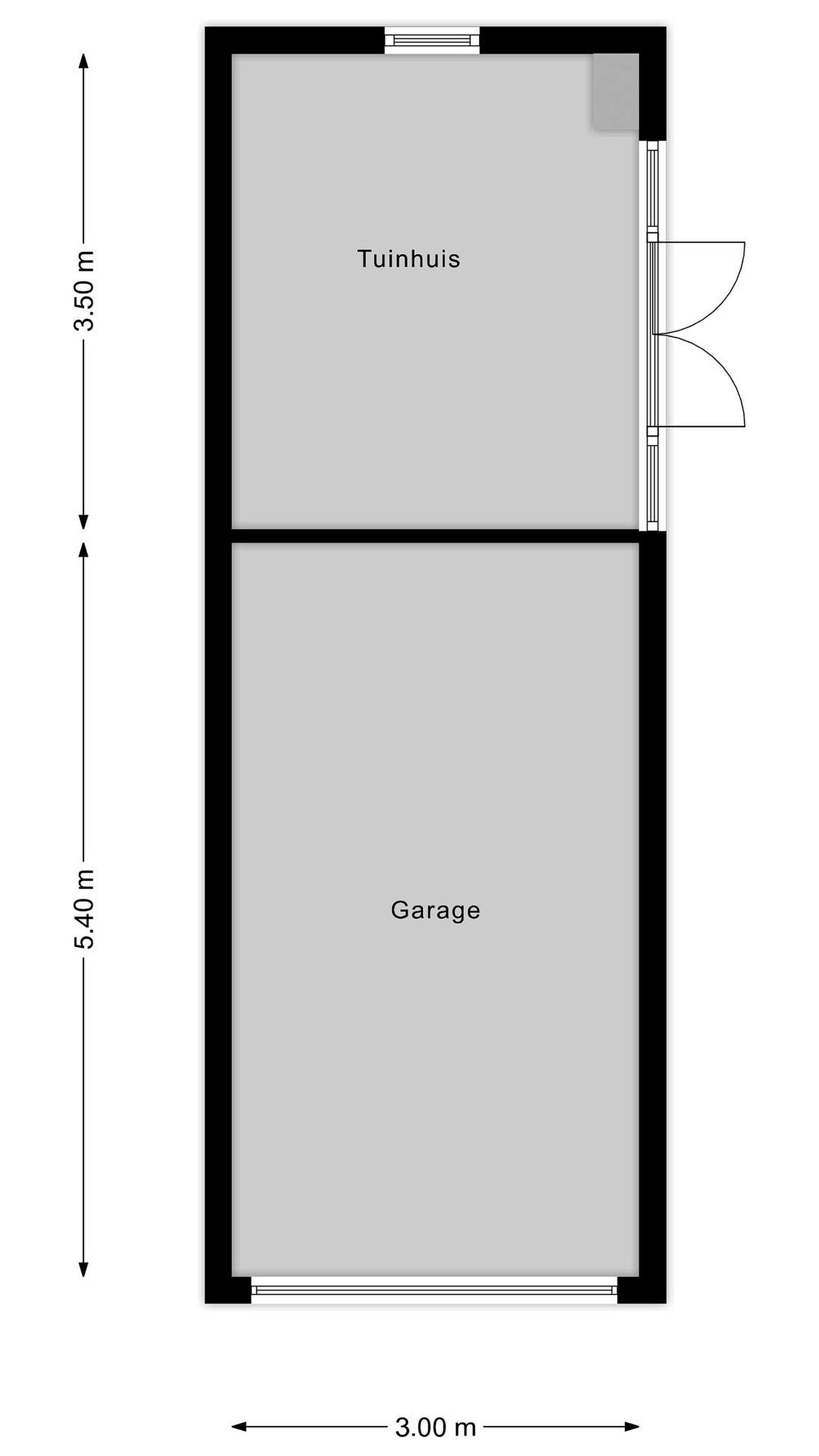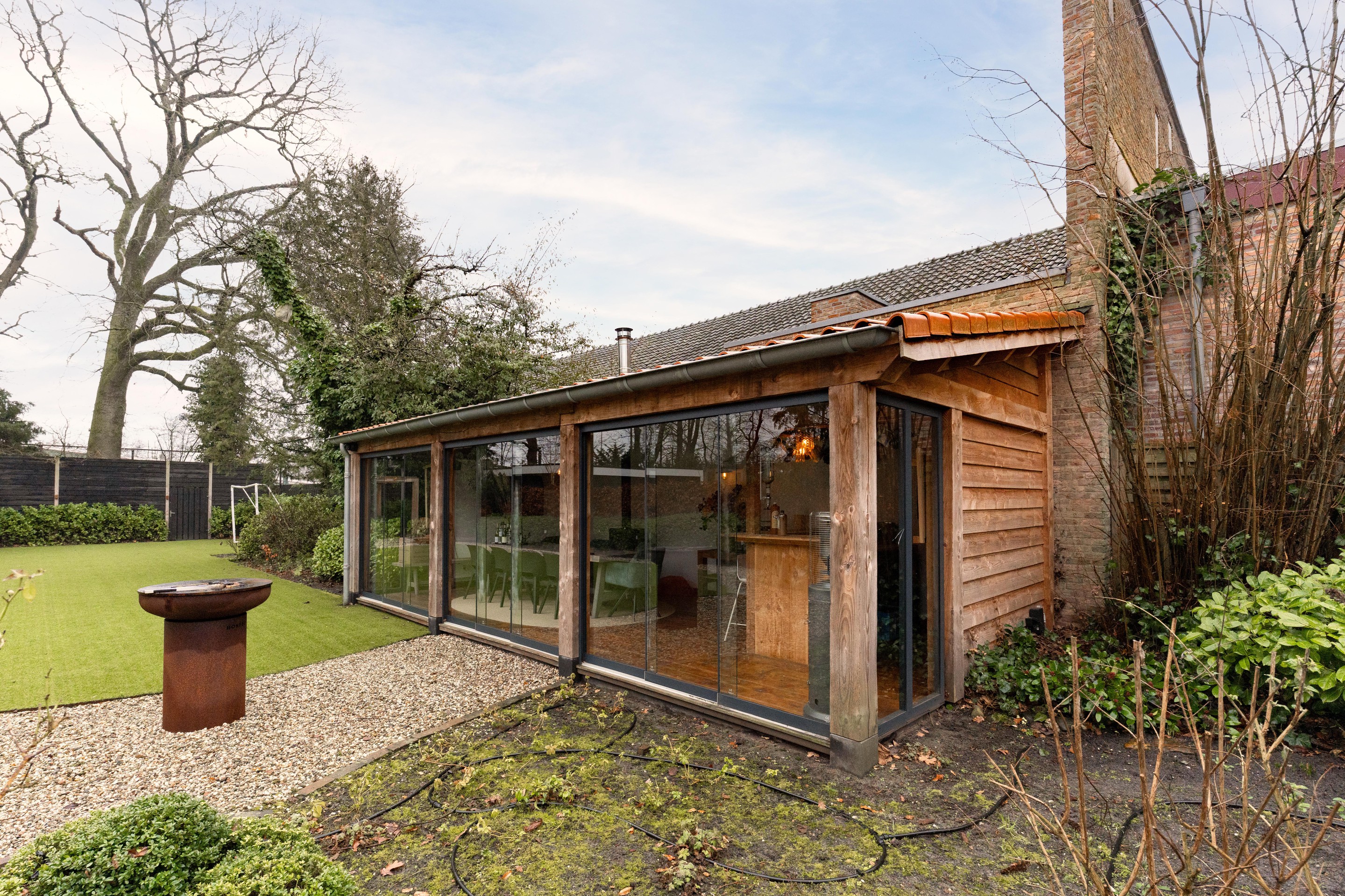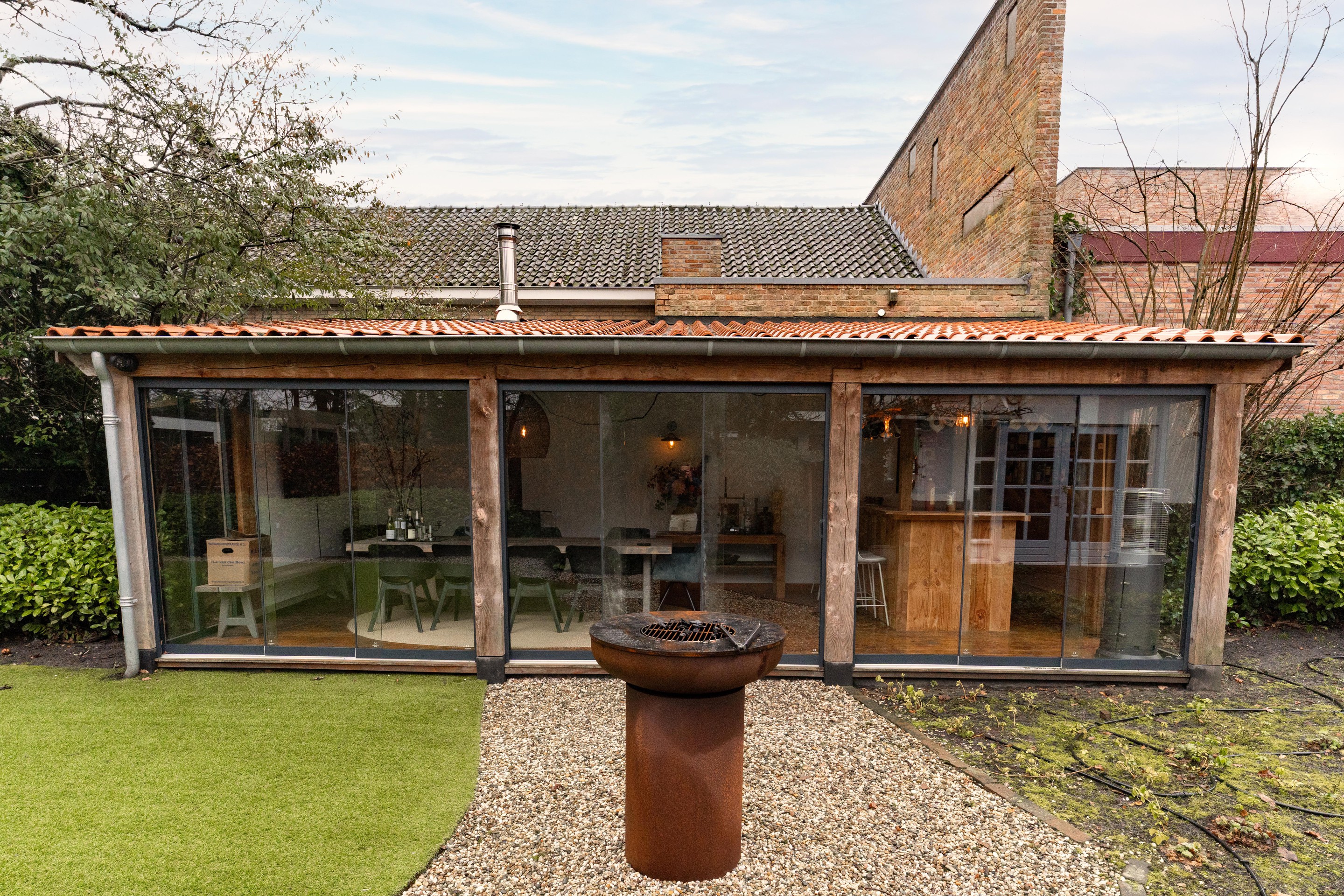 - in het achterste deel van de berging vind je een gezellige tuinkamer van ca. 10,5 m2 met openslaande deuren.