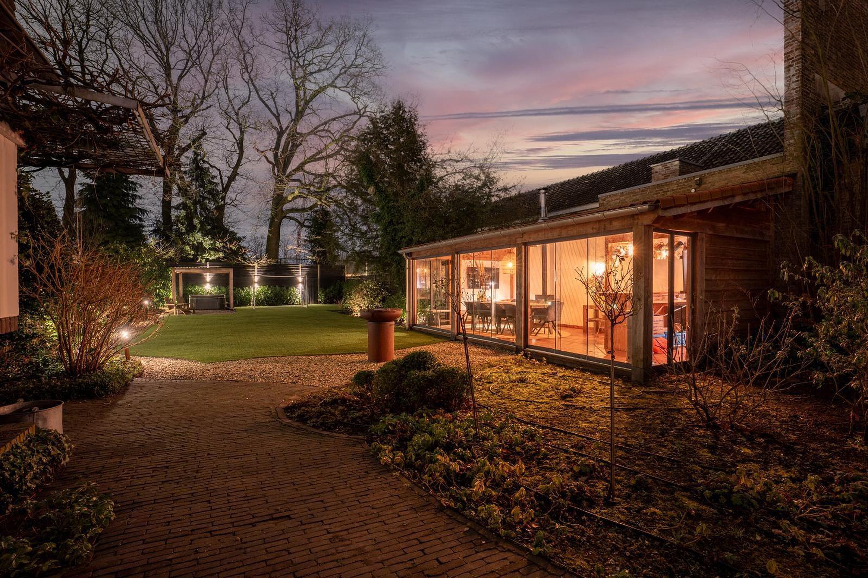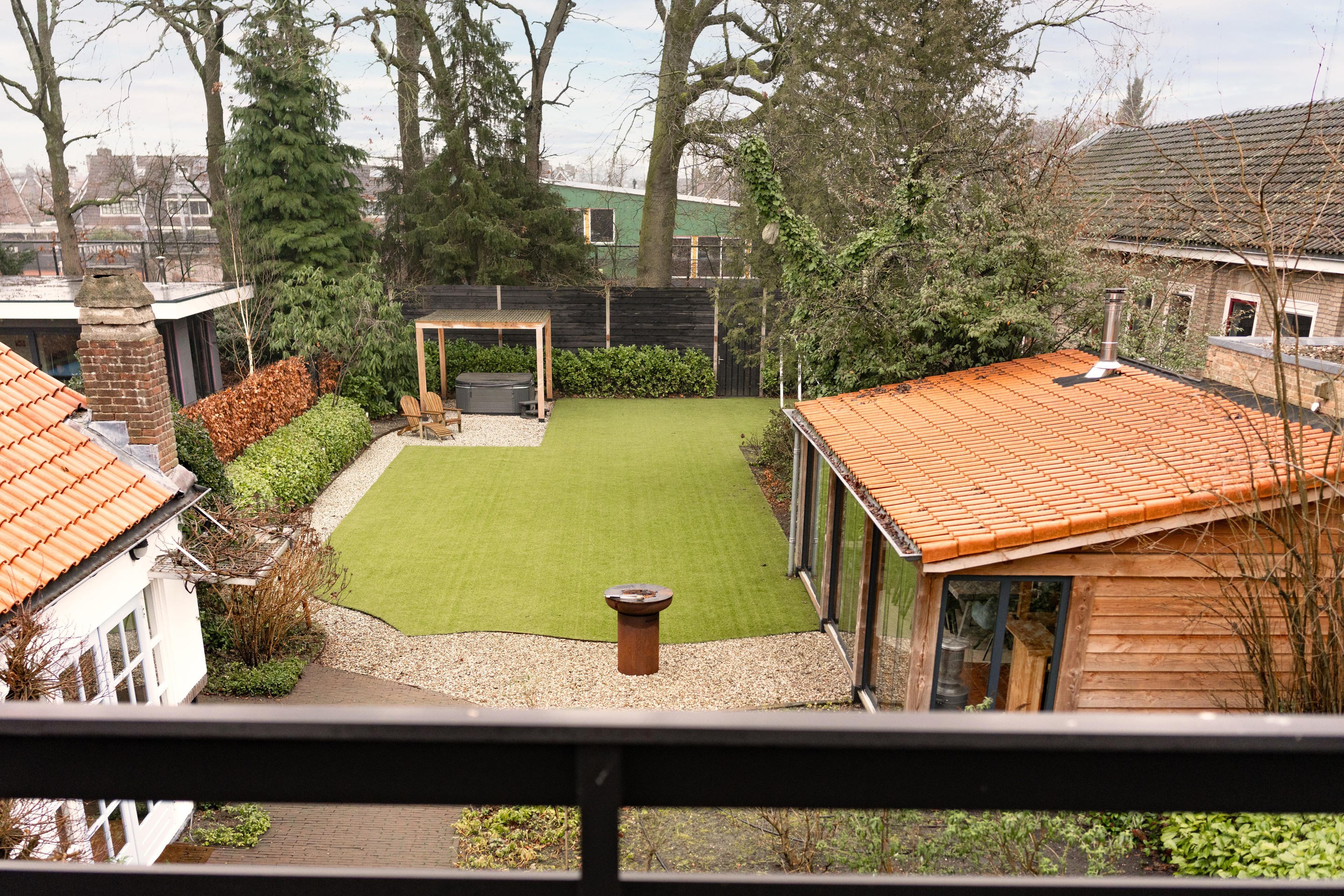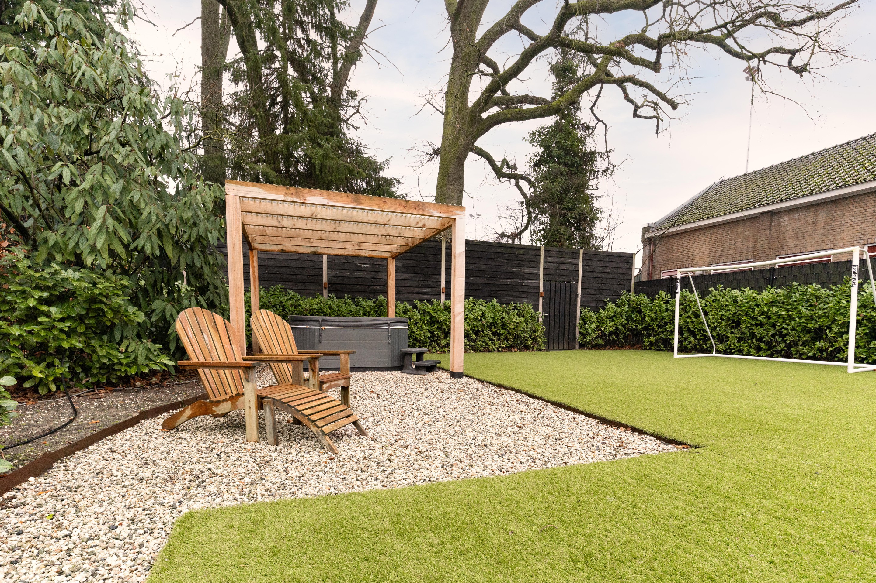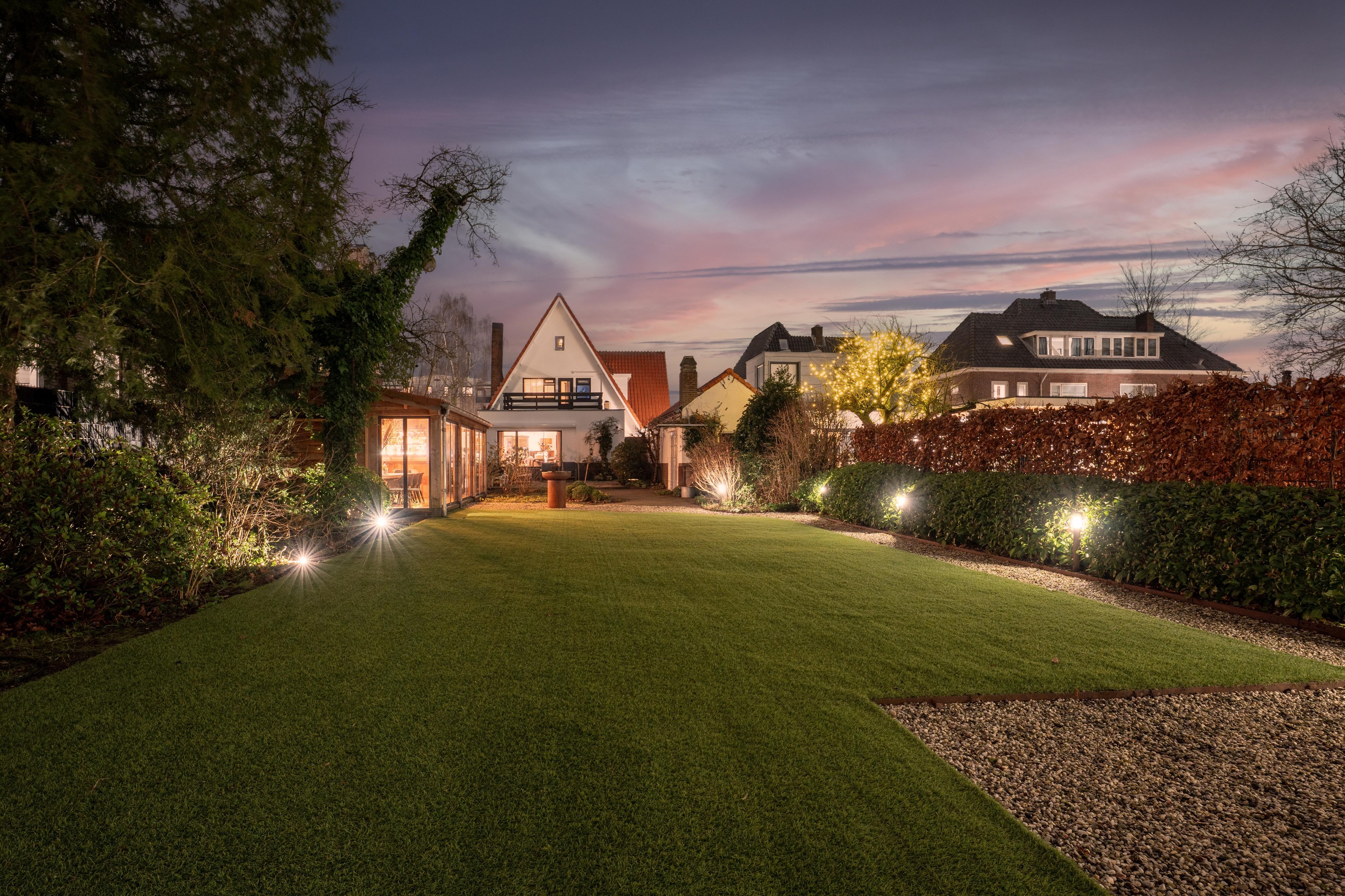 De woning is gelegen op een riant perceel van 1.043 m2. Zowel aan de voor- als aan de achterzijde is de tuin groen, ruim en verzorgd en beschikt het over een ruime veranda met sfeervolle houtkachel. De in 2021 aangelegde achtertuin ligt op het zuidoosten en biedt veel privacy door hoge bomen en beschikt over een beregeningsinstallatie en fraaie tuinverlichting. Door de diverse terrassen, is er op elk moment van de dag een zonnige plek te vinden.