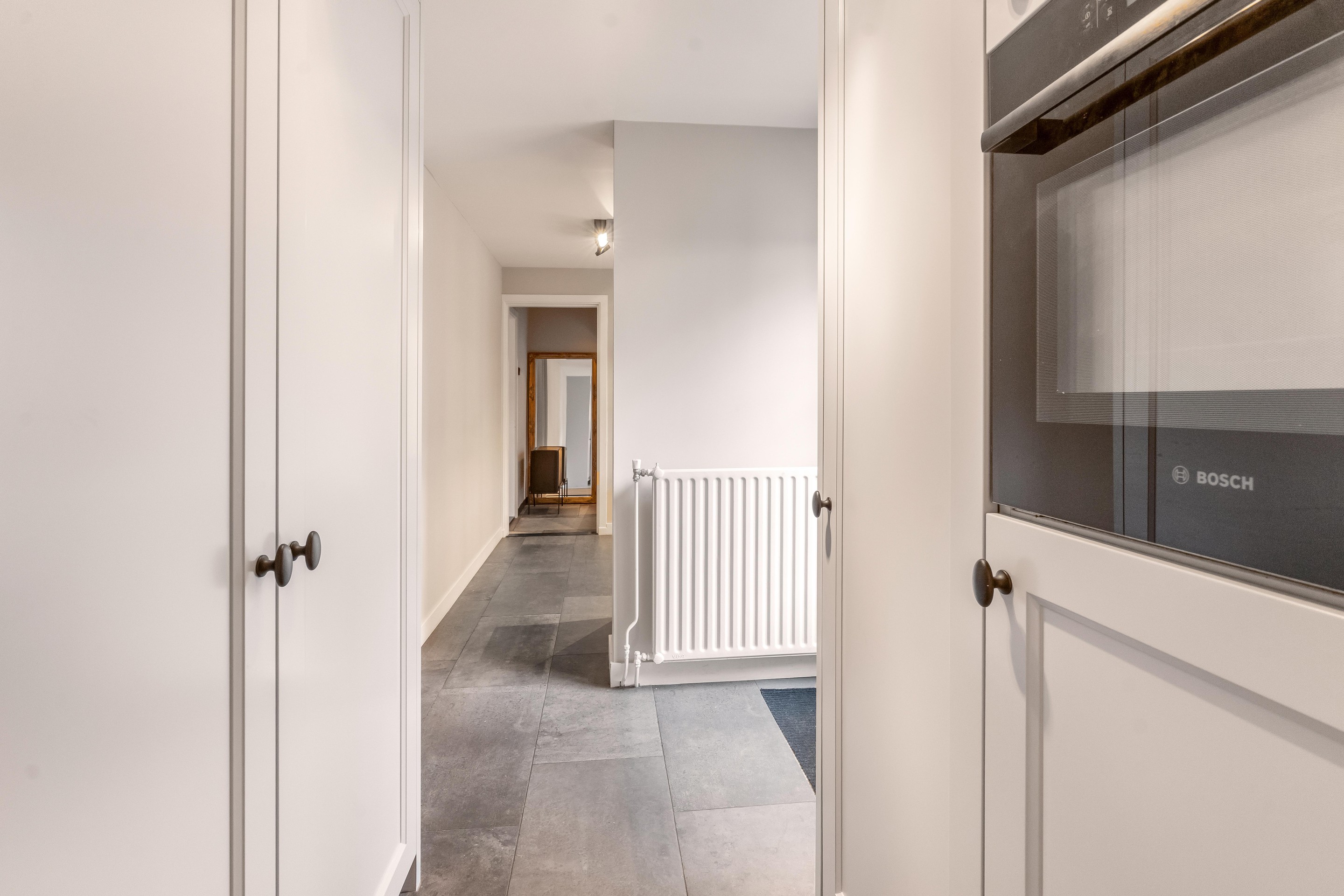De in 2021 vernieuwde keuken is voorzien van een inductie kookplaat, oven, magnetron, vaatwasser, koelkast en een Quooker. Vanuit de keuken bereikt u de bijkeuken met praktische wandkasten, de cv-combiketel (Nefit uit 2021) en de meterkast.