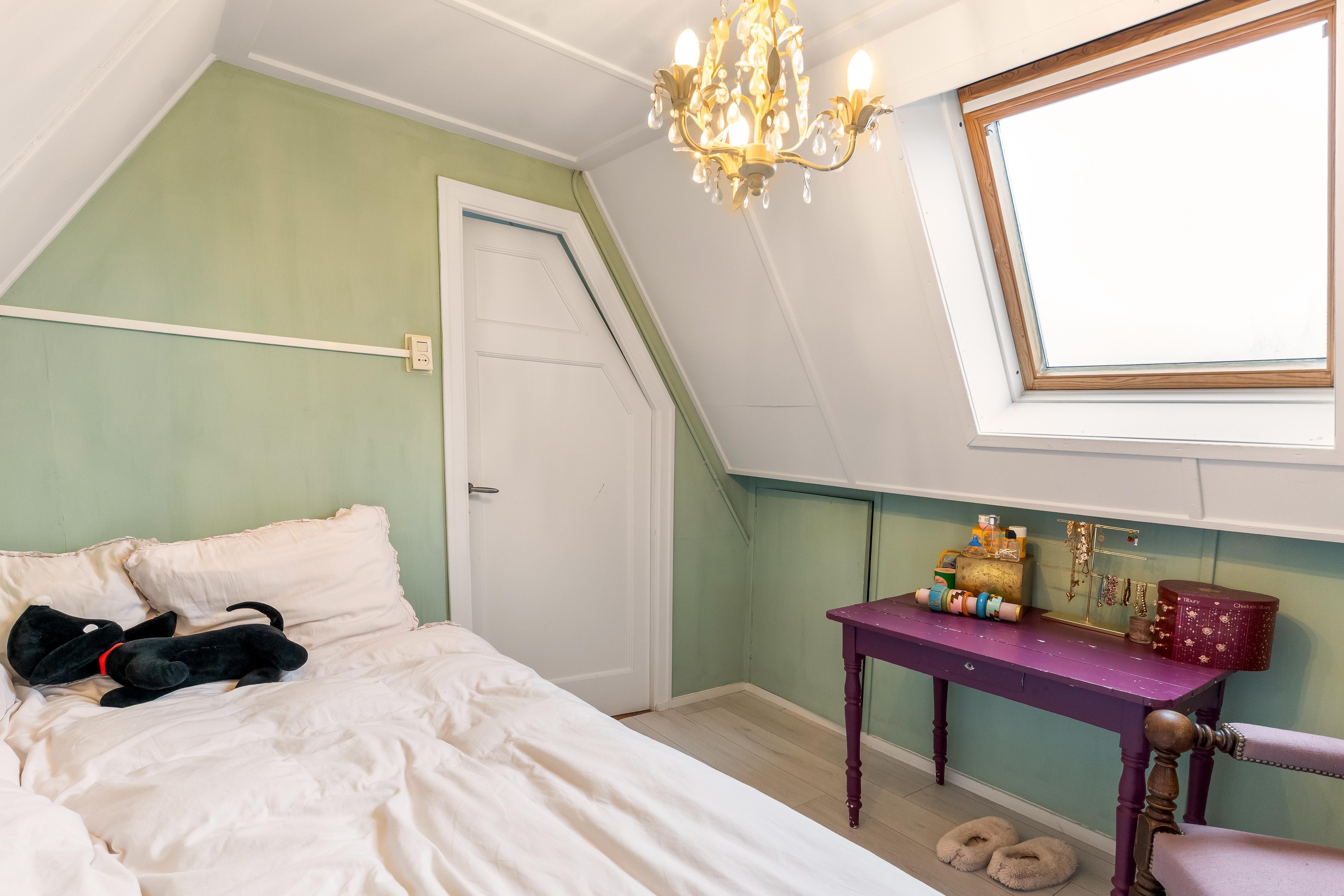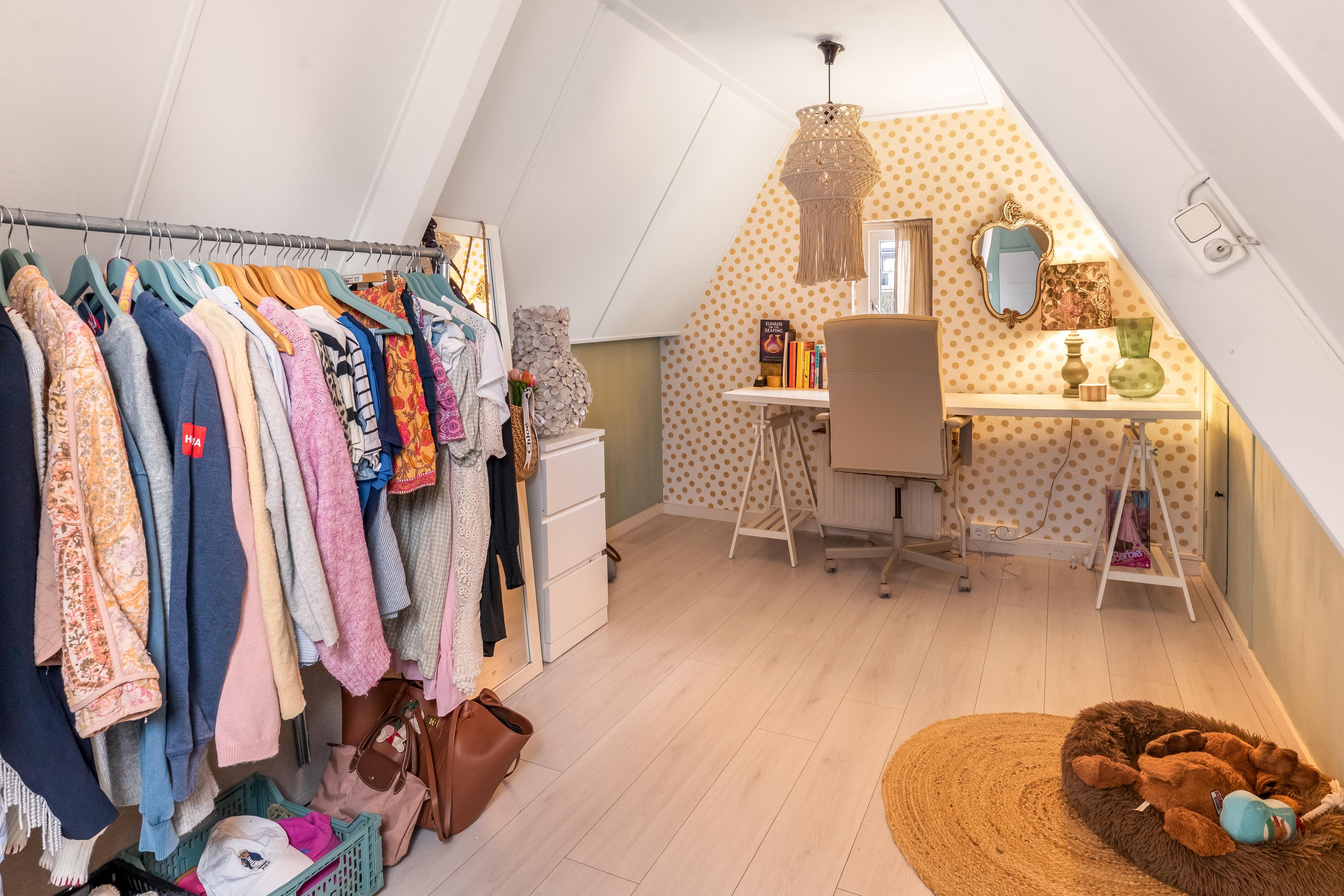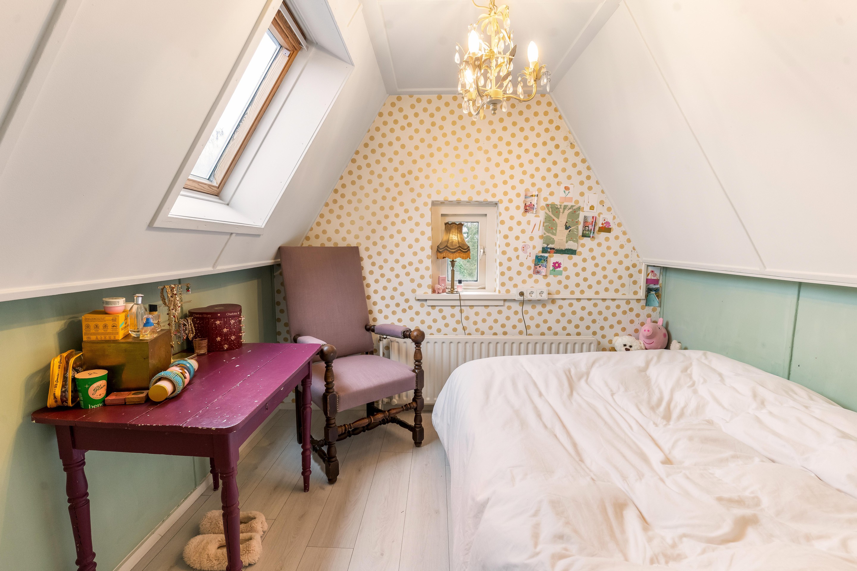 Op deze verdieping bevindt zich de vierde slaapkamer van ca. 7,3 m2. De mogelijkheid bestaat om hier een vijfde kamer te realiseren. Achter de knieschotten zit verrassend veel bergruimte. Op deze verdieping én in de ouderslaapkamer op de eerste verdieping is een wastafel-aansluiting aanwezig.