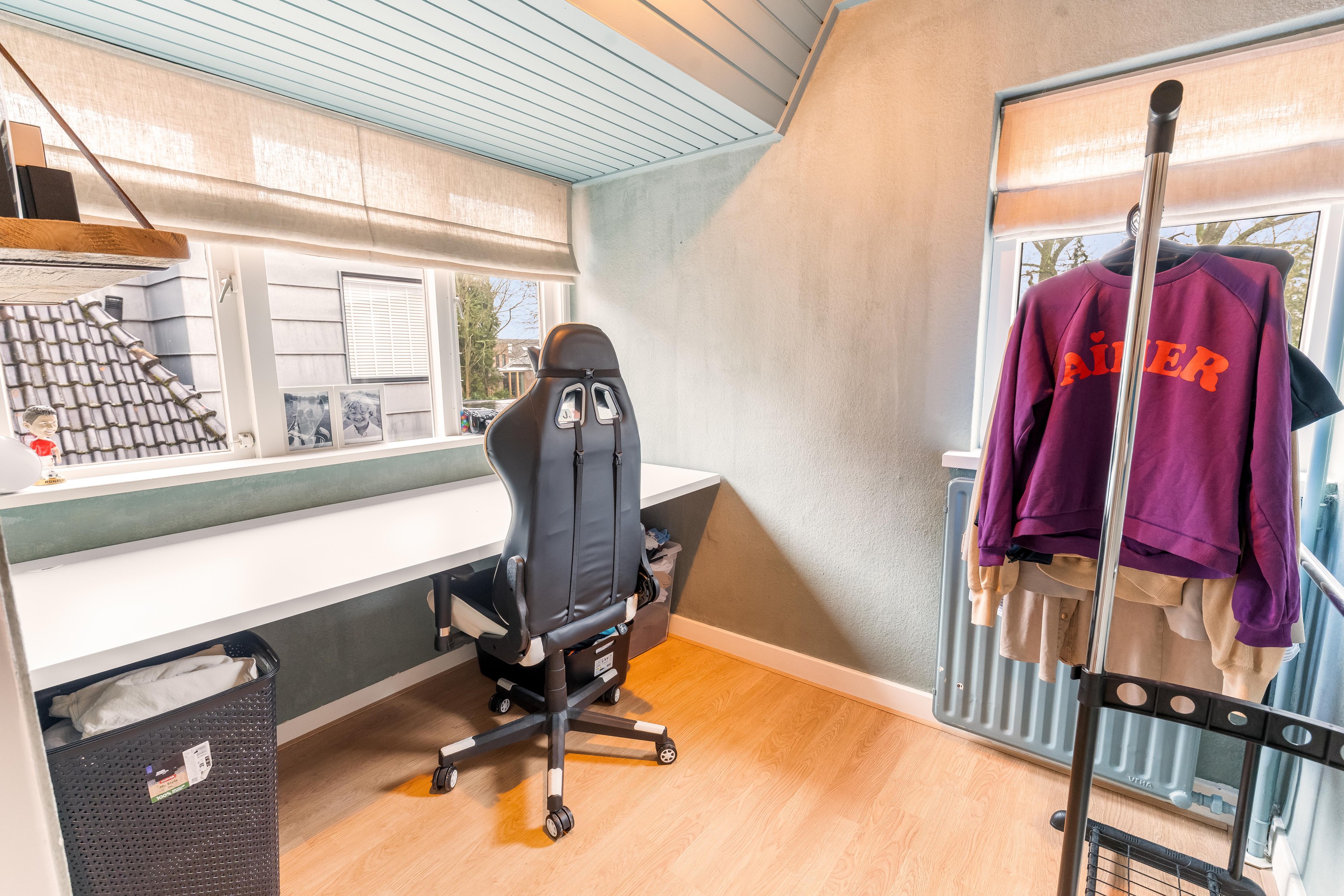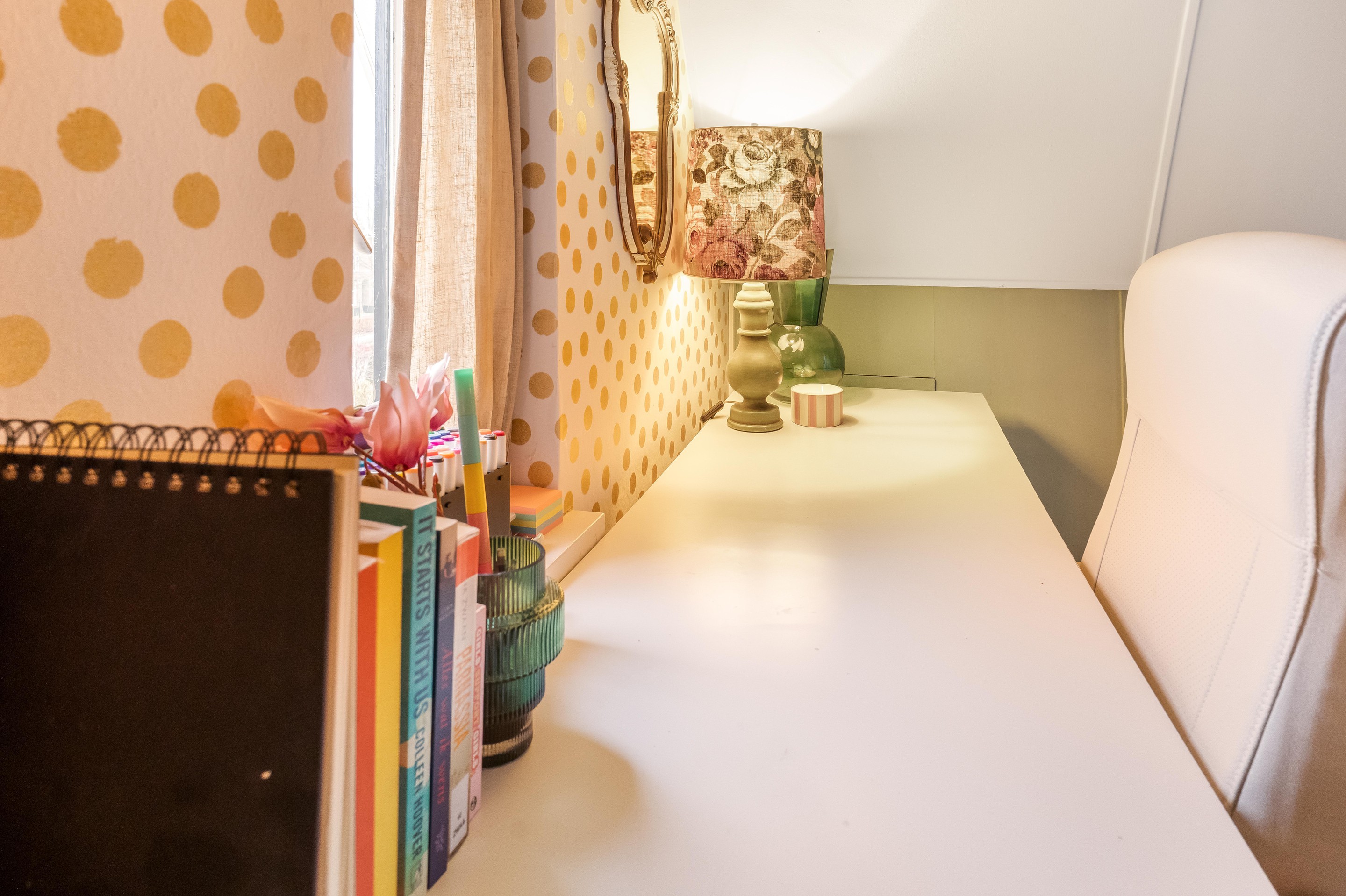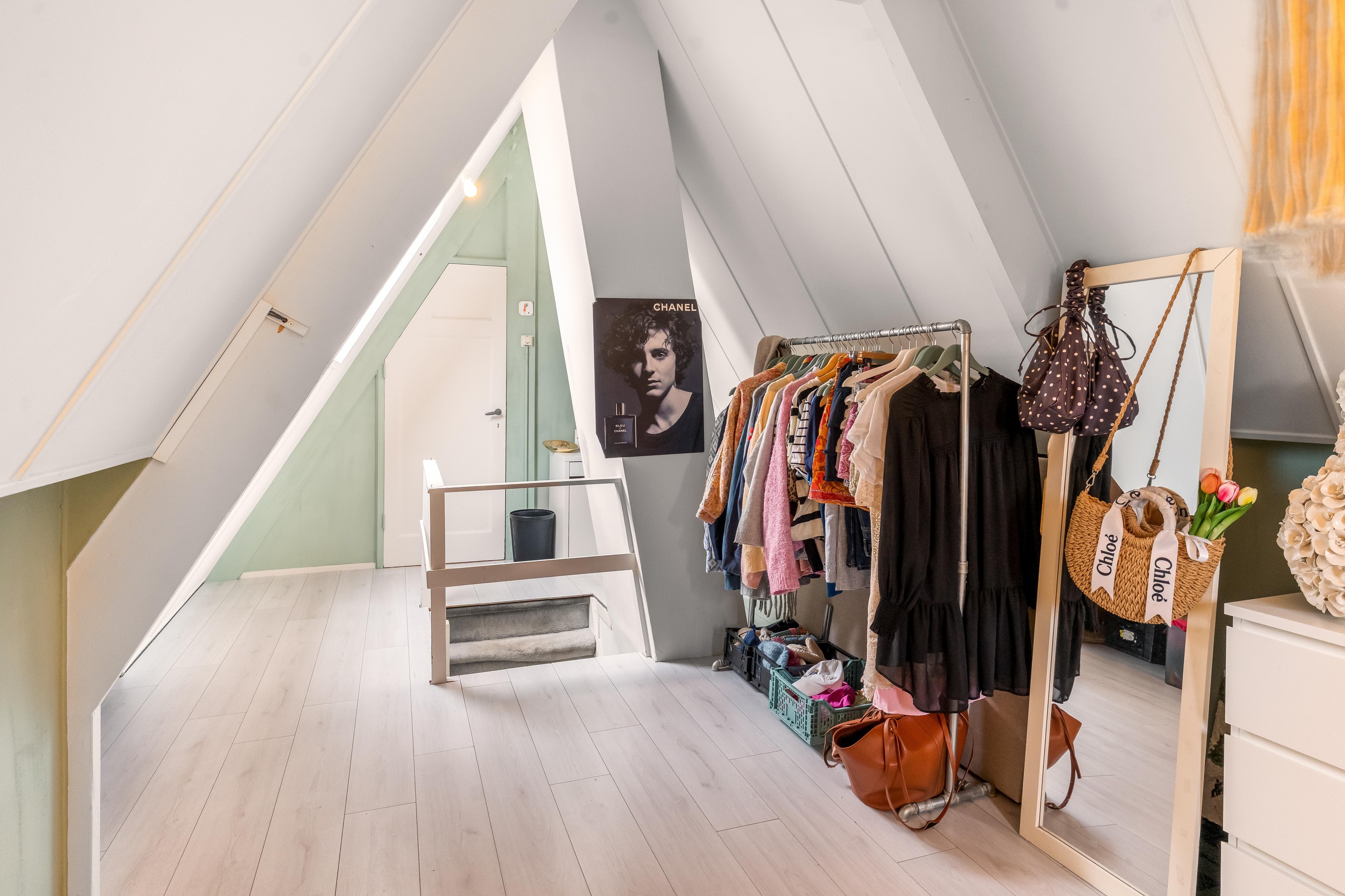 Op deze verdieping bevindt zich de vierde slaapkamer van ca. 7,3 m2. De mogelijkheid bestaat om hier een vijfde kamer te realiseren. Achter de knieschotten zit verrassend veel bergruimte. Op deze verdieping én in de ouderslaapkamer op de eerste verdieping is een wastafel-aansluiting aanwezig.