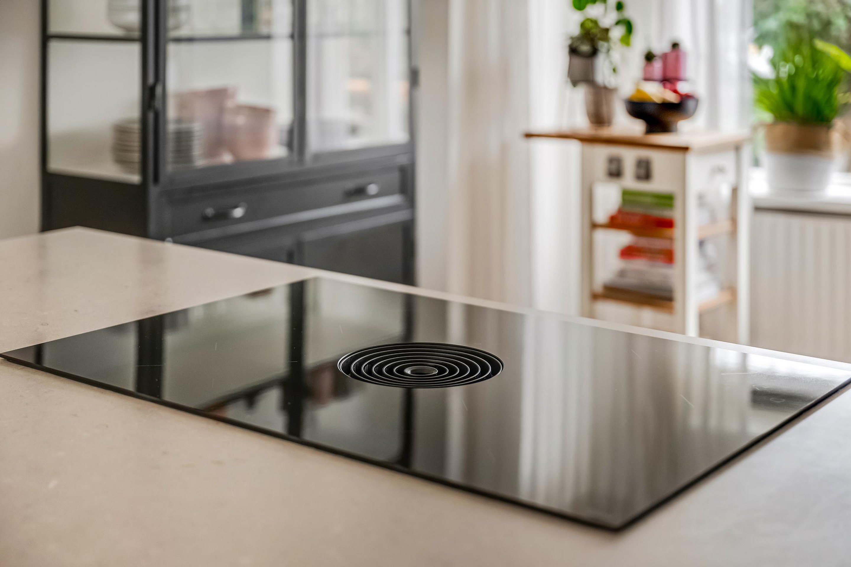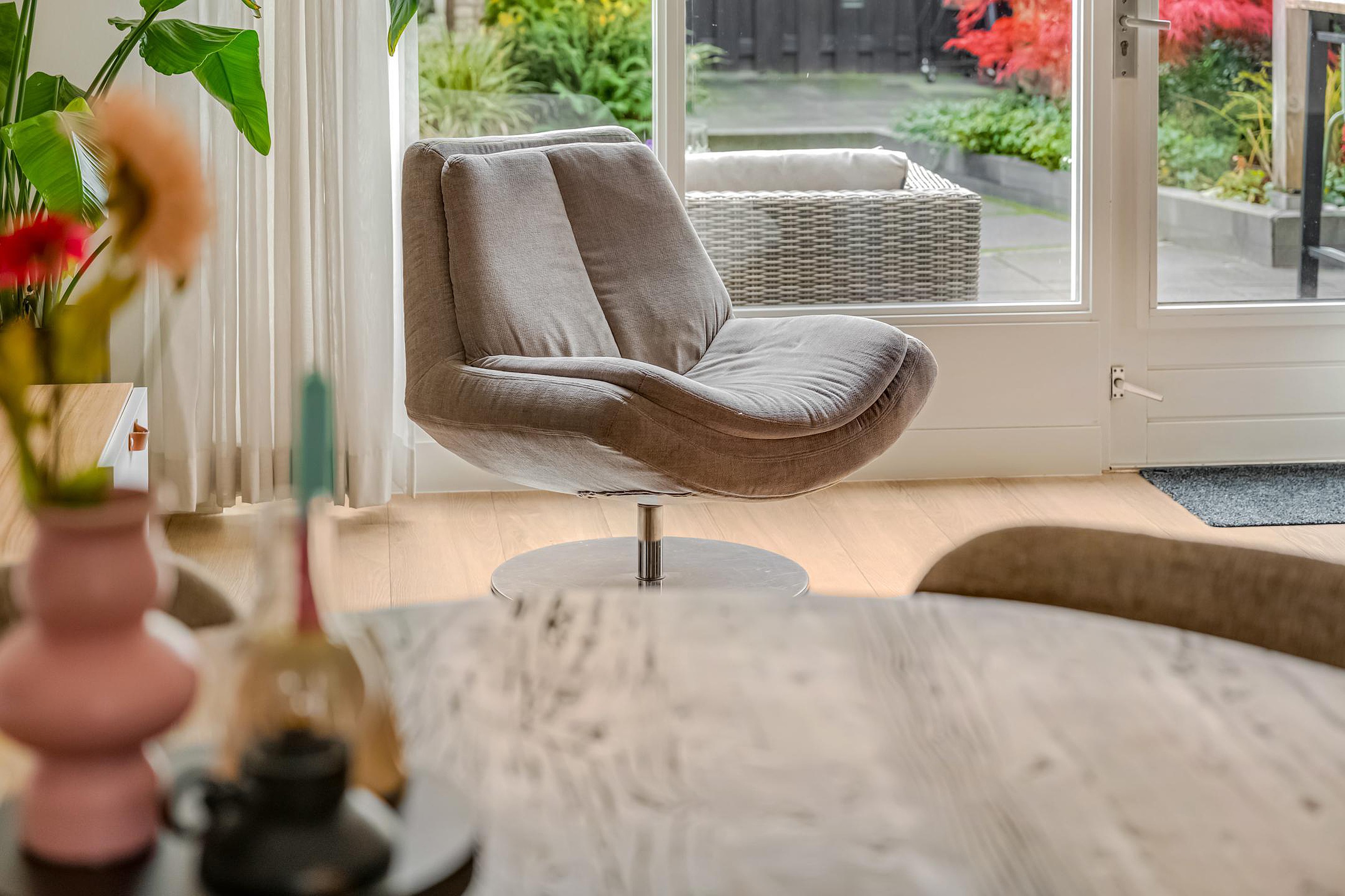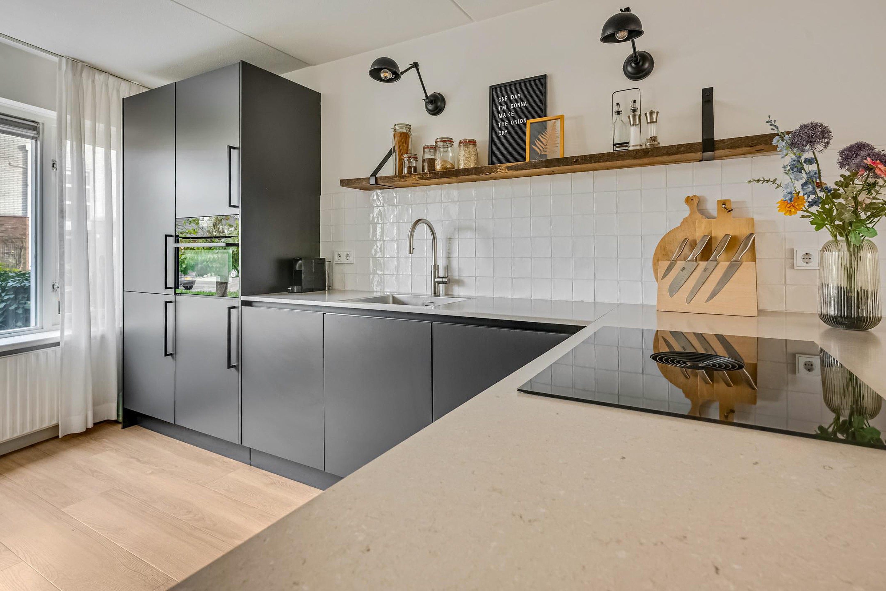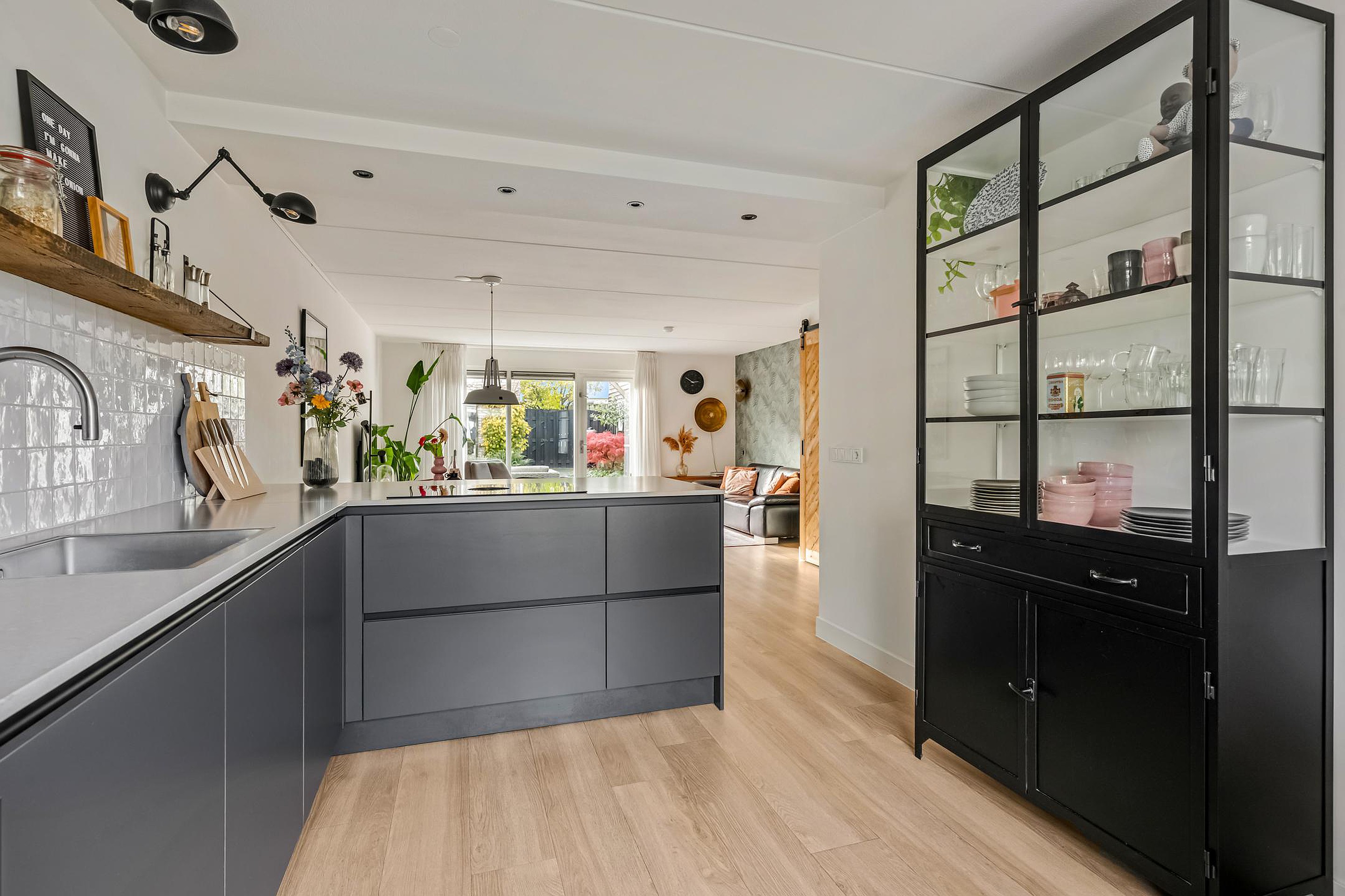 Via de ontvangsthal met garderobe, meterkast en toilet komt u in de ruime en lichte woonkamer. Grote raampartijen zorgen voor een prettige lichtinval en een fijne verbinding met de tuin. Aan de voorzijde vindt u de moderne L-vormige keuken, voorzien van een barretje, Bora inductiekookplaat, Quooker en voldoende kastruimte. Een ideale plek om te koken én gezellig aan te schuiven. De begane grond is afgewerkt met een comfortabele PVC-vloer met vloerverwarming.
