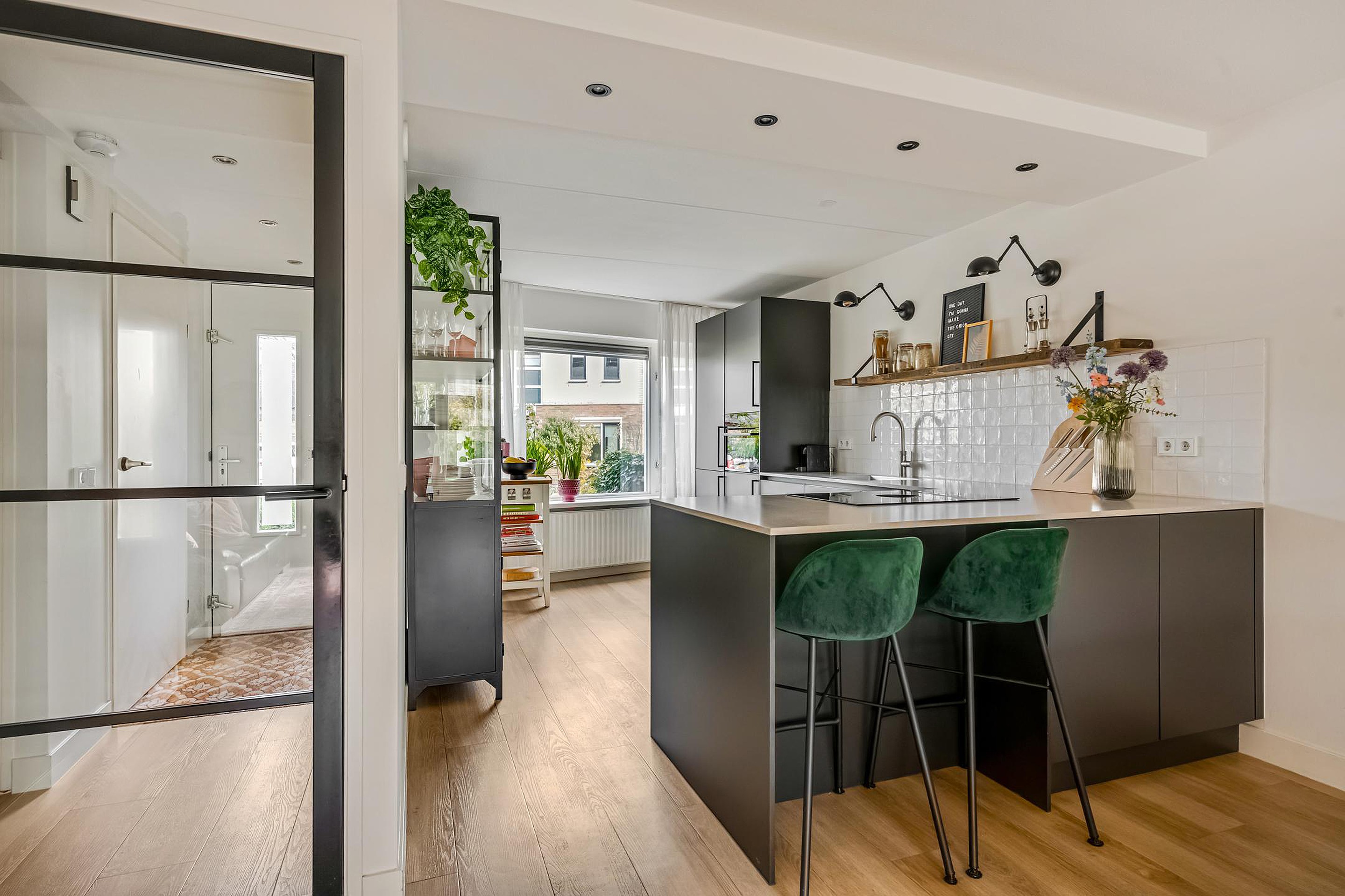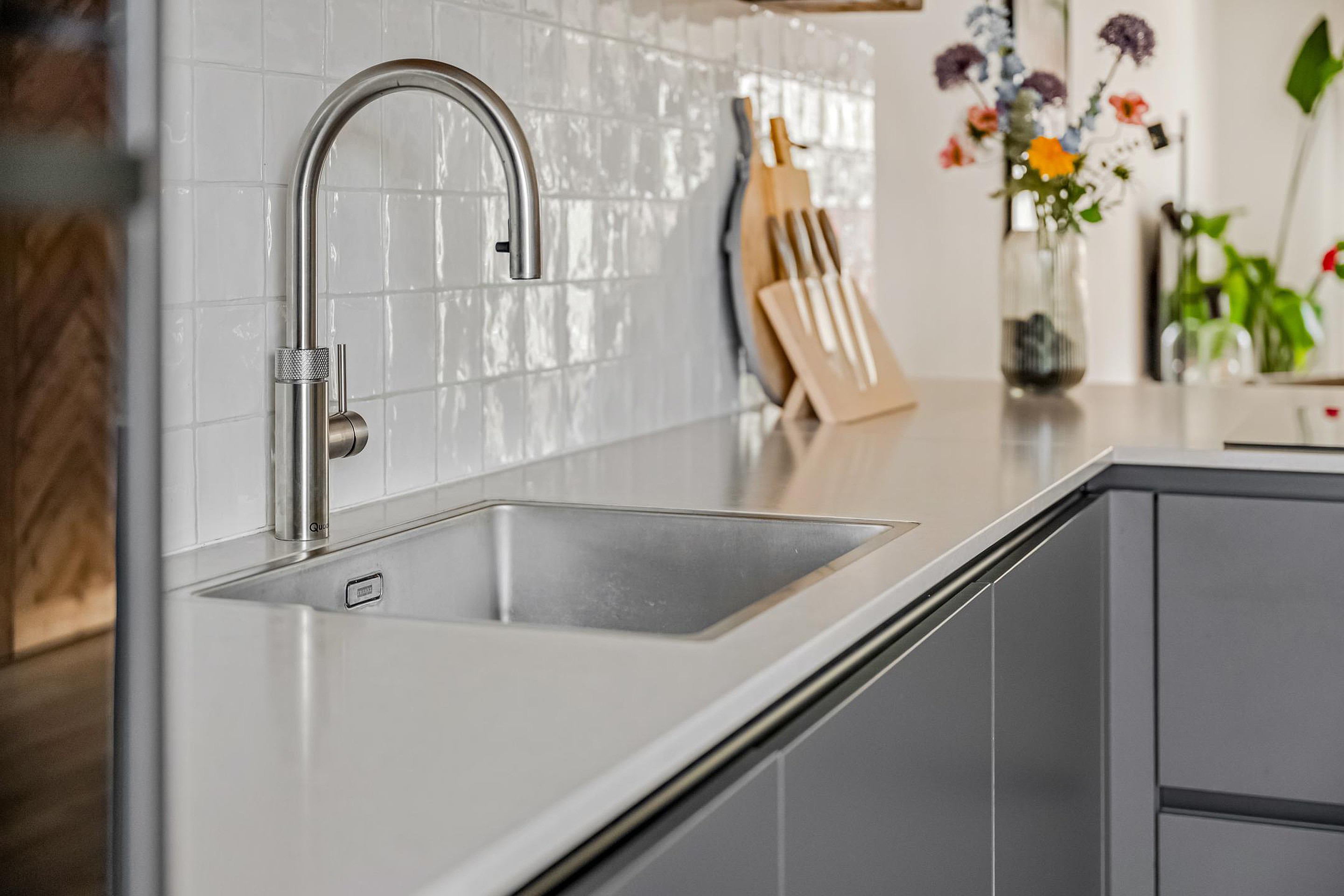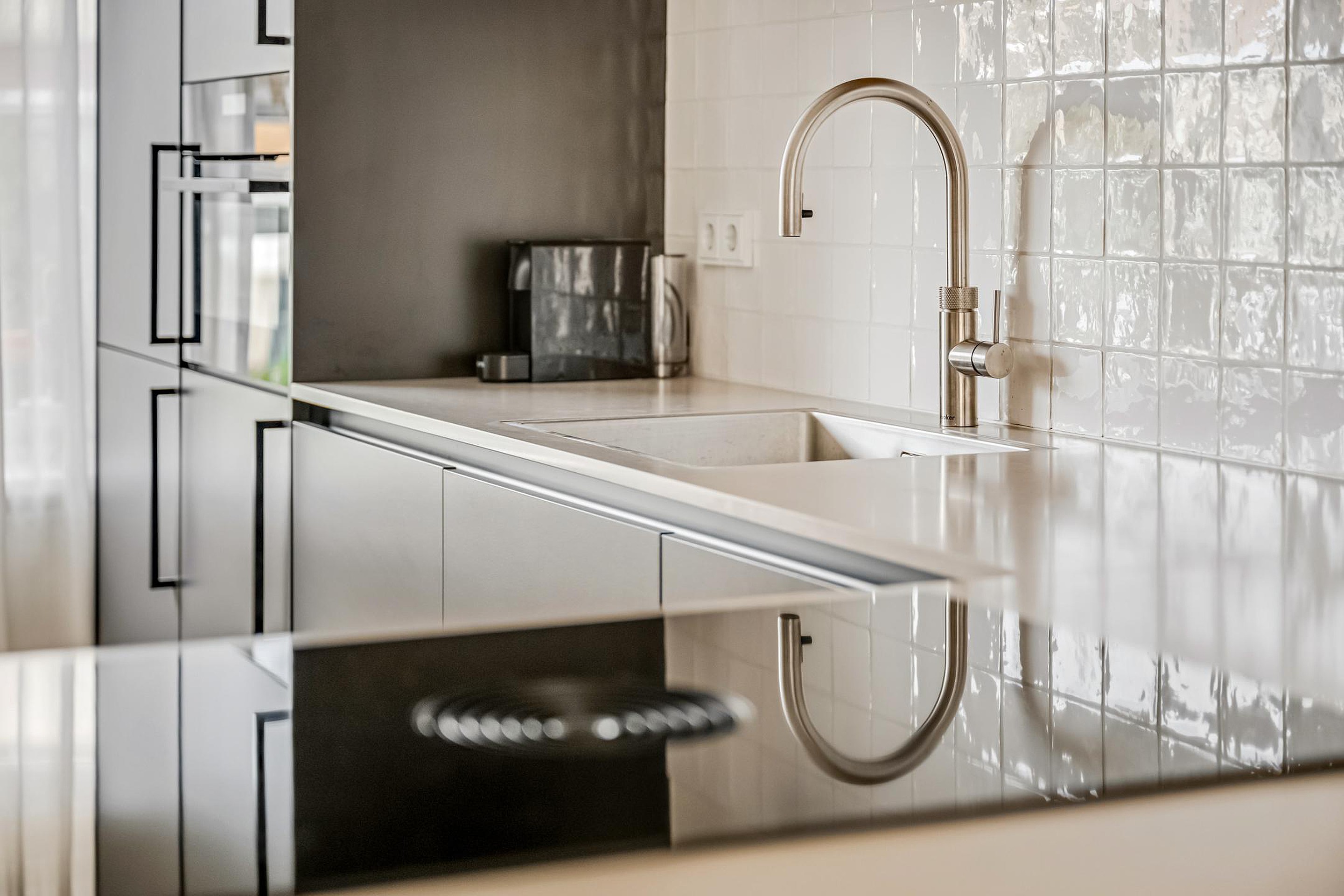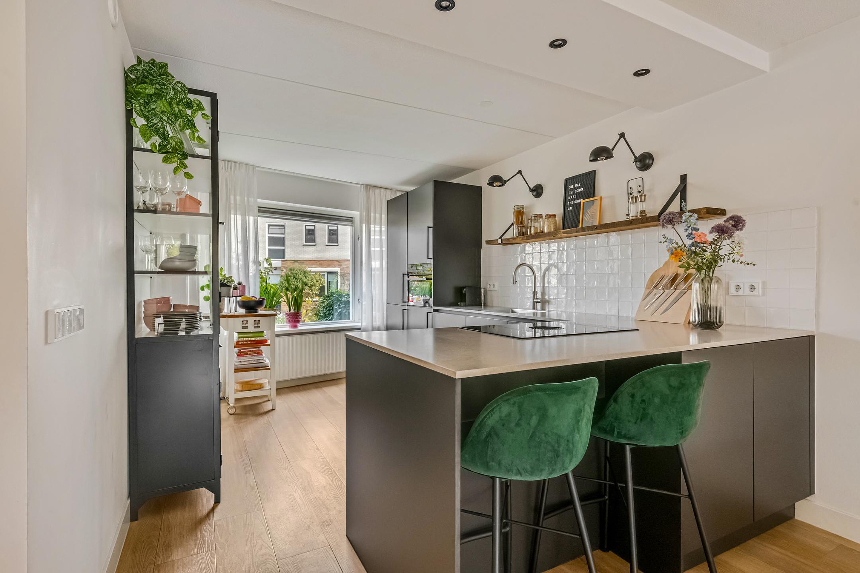 Via de ontvangsthal met garderobe, meterkast en toilet komt u in de ruime en lichte woonkamer. Grote raampartijen zorgen voor een prettige lichtinval en een fijne verbinding met de tuin. Aan de voorzijde vindt u de moderne L-vormige keuken, voorzien van een barretje, Bora inductiekookplaat, Quooker en voldoende kastruimte. Een ideale plek om te koken én gezellig aan te schuiven. De begane grond is afgewerkt met een comfortabele PVC-vloer met vloerverwarming.