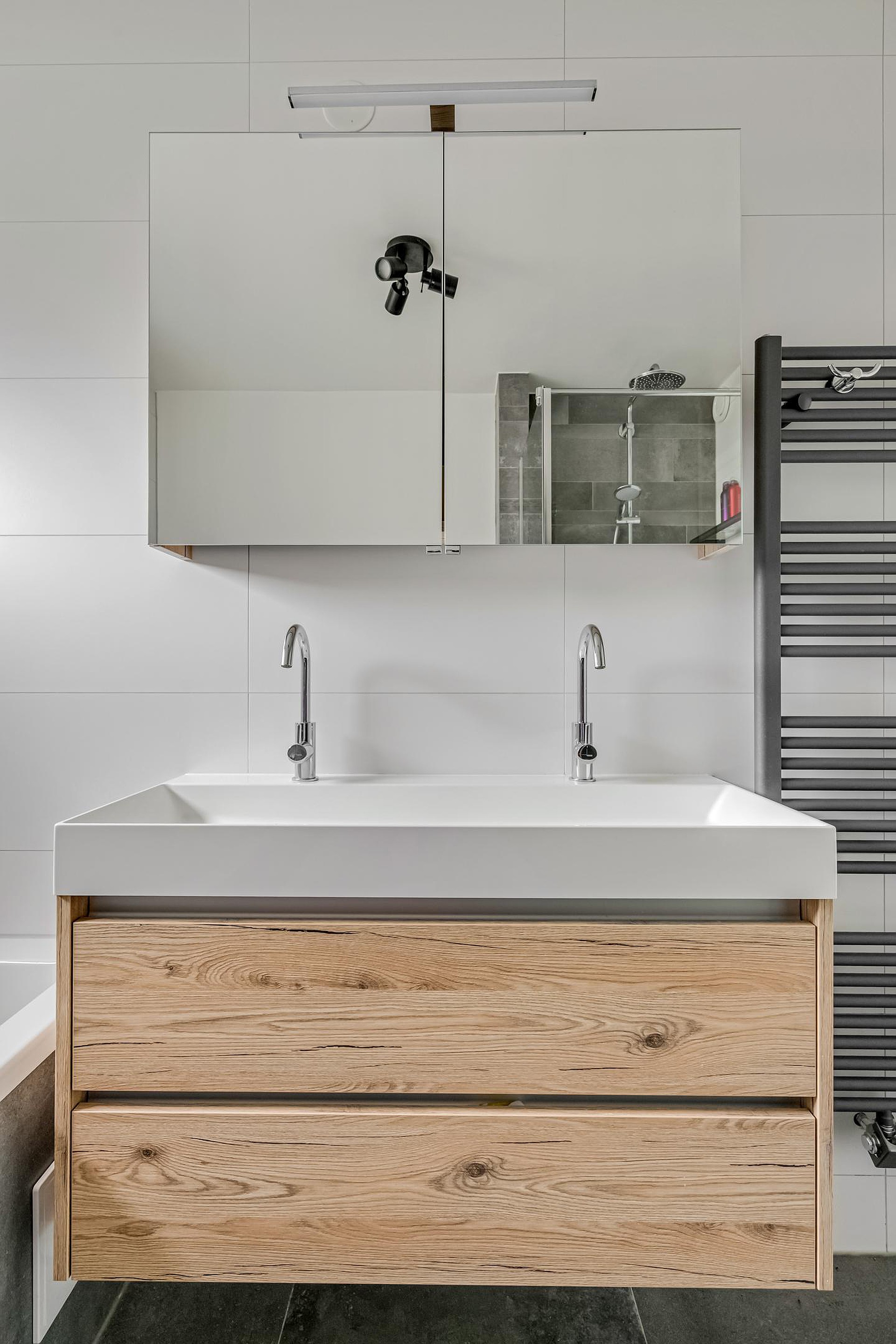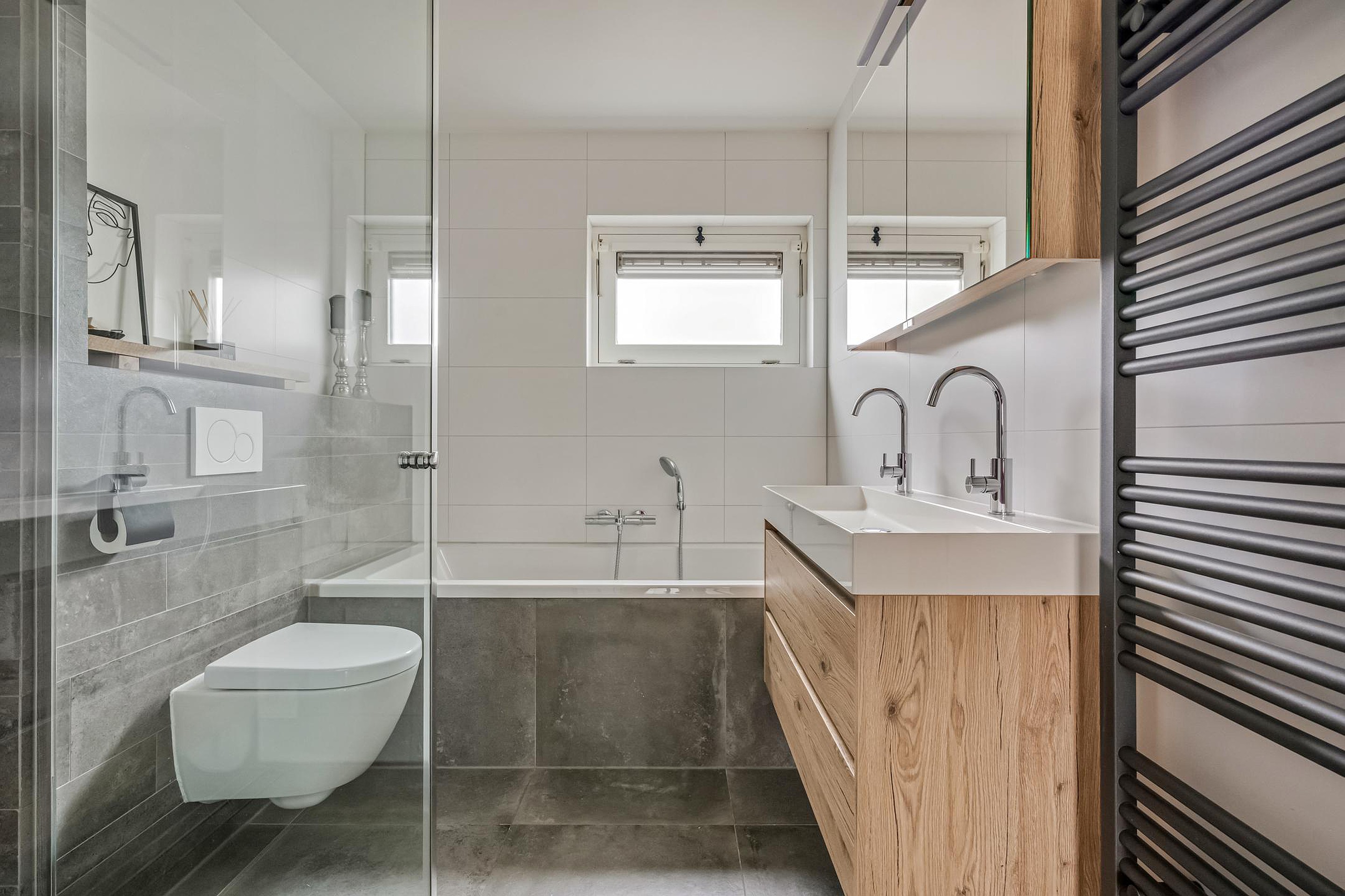 De eerste verdieping biedt drie slaapkamers, allemaal netjes afgewerkt met laminaat en volop daglicht. De stijlvolle badkamer is voorzien van een ligbad, dubbele wastafel, separate regendouche (en handdouche) en tweede toilet. Daarnaast beschikt de badkamer over vloerverwarming en een designradiator. In deze badkamer kunt u heerlijk ontspannen na een lange dag.
