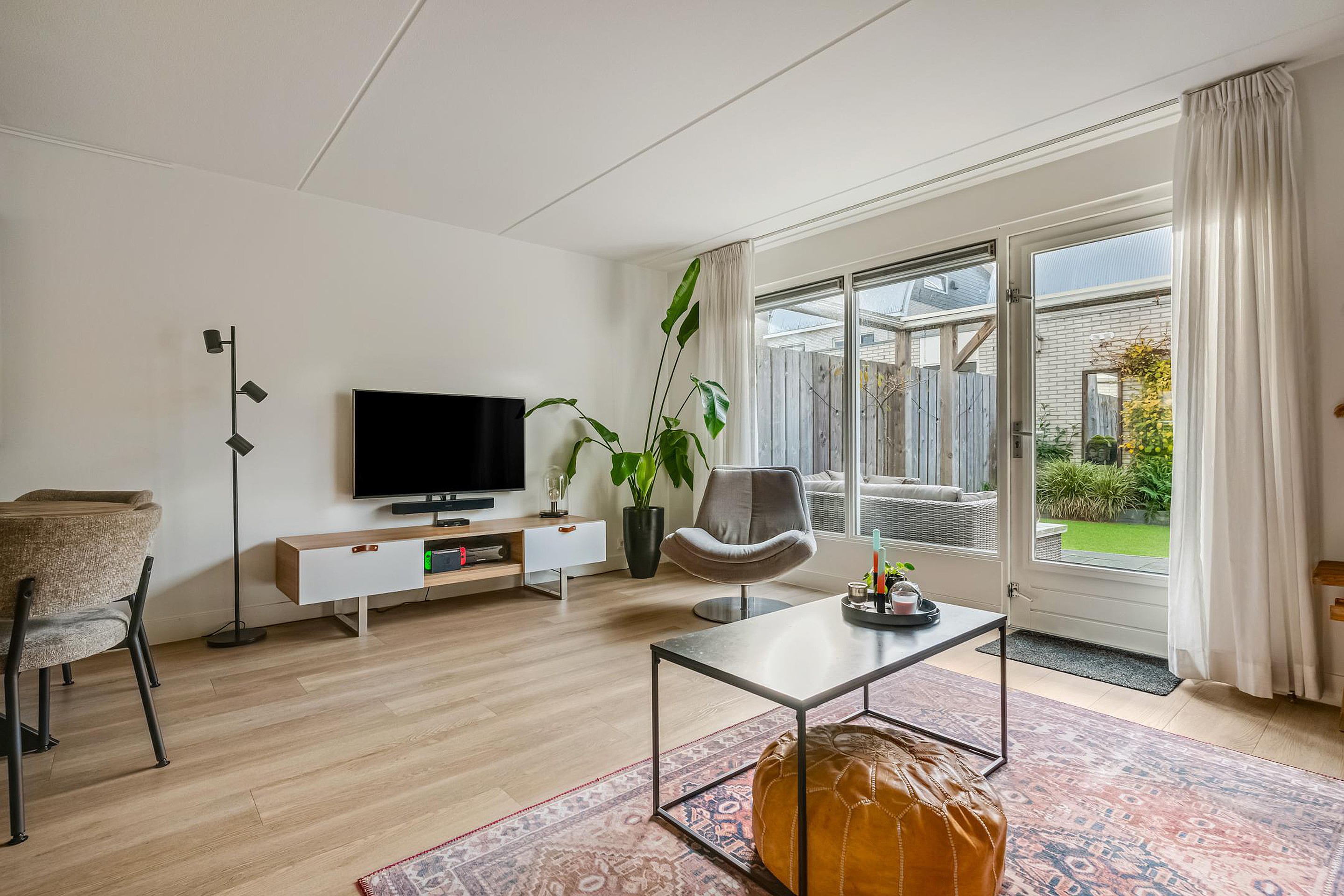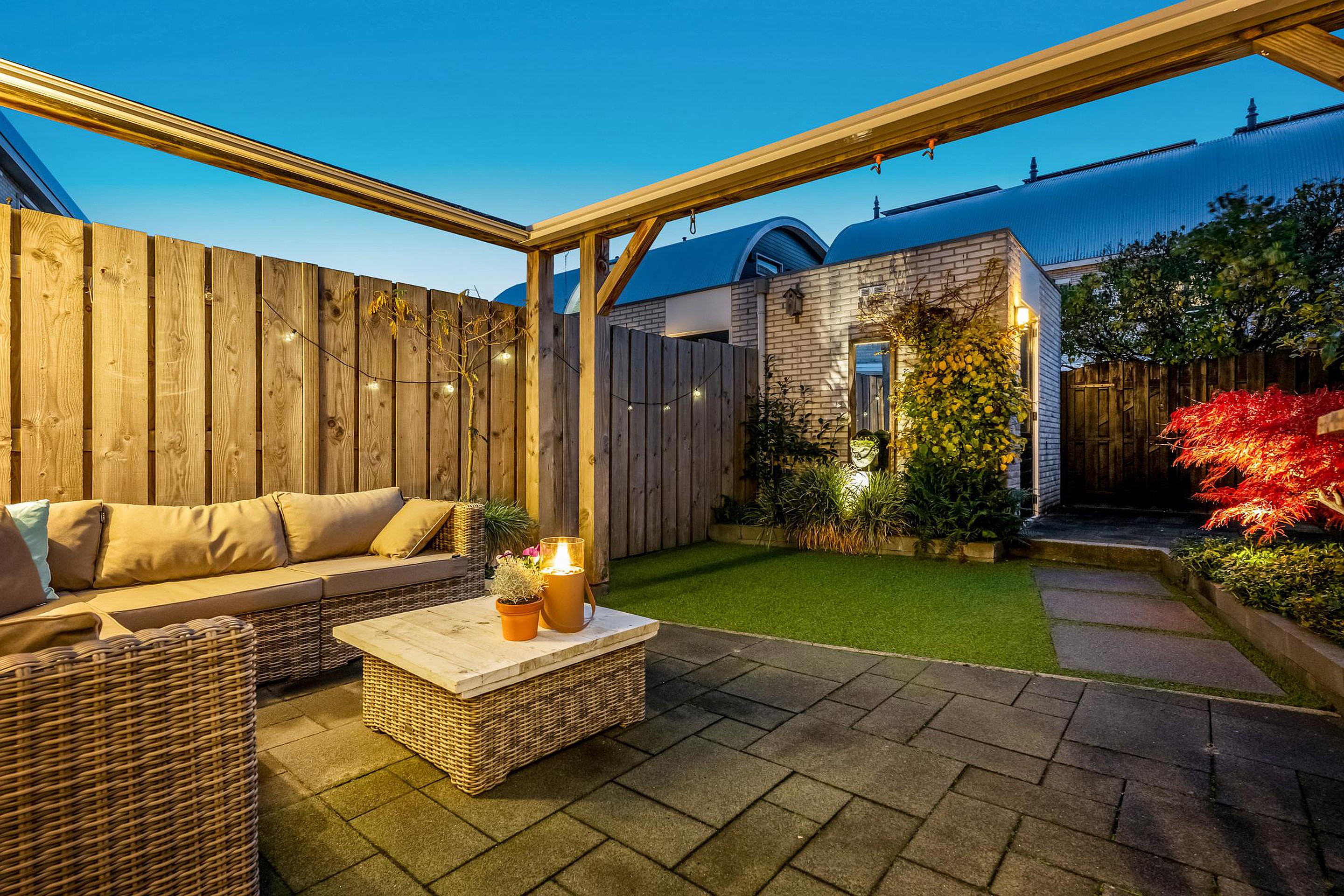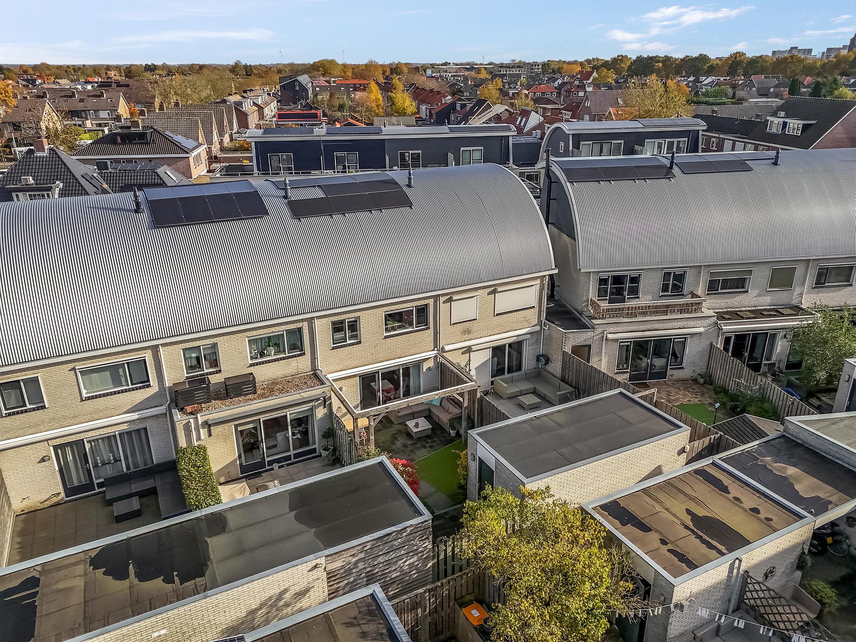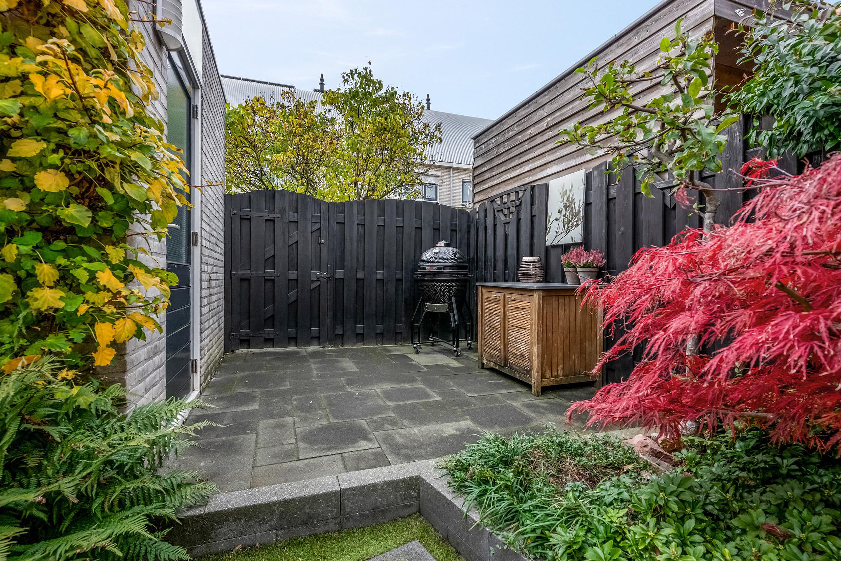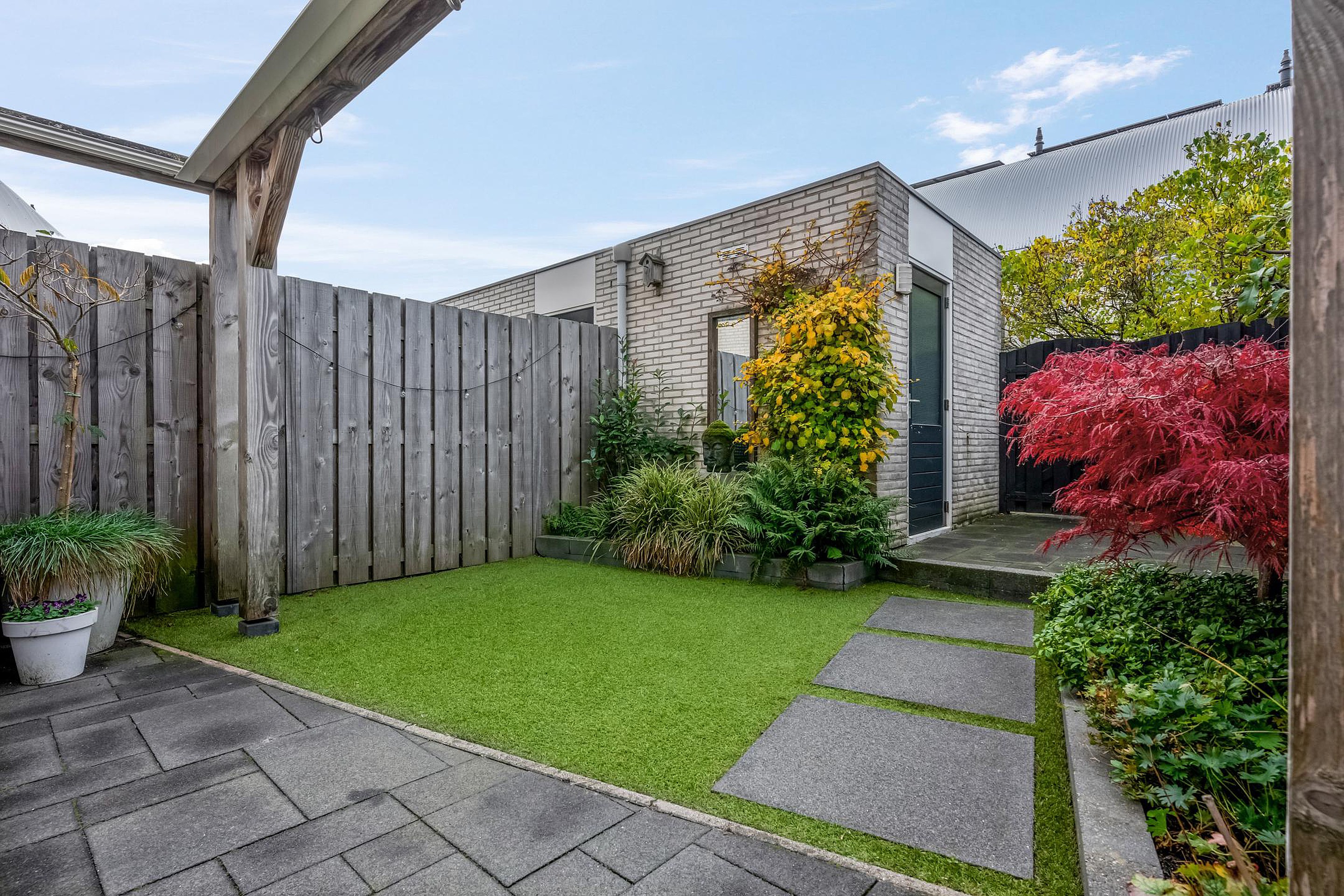 De achtertuin is fraai aangelegd en gericht op het zuidwesten. Dankzij het kunstgras en de onderhoudsarme indeling heeft u weinig werk en veel comfort. Er is genoeg ruimte voor een lounge- of tuintafel en met het grote zonnescherm creëert u eenvoudig een schaduwrijke plek. Achterin de tuin staat een vrijstaande berging, ideaal voor fietsen en tuingereedschap.