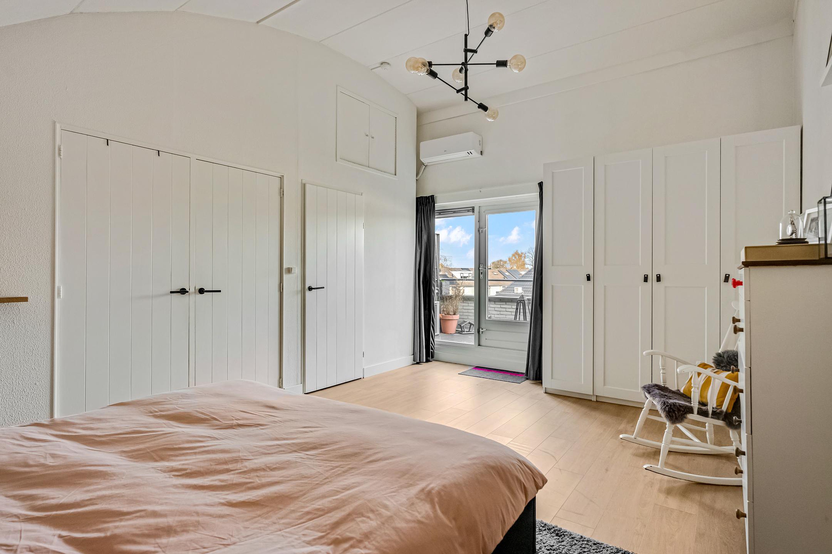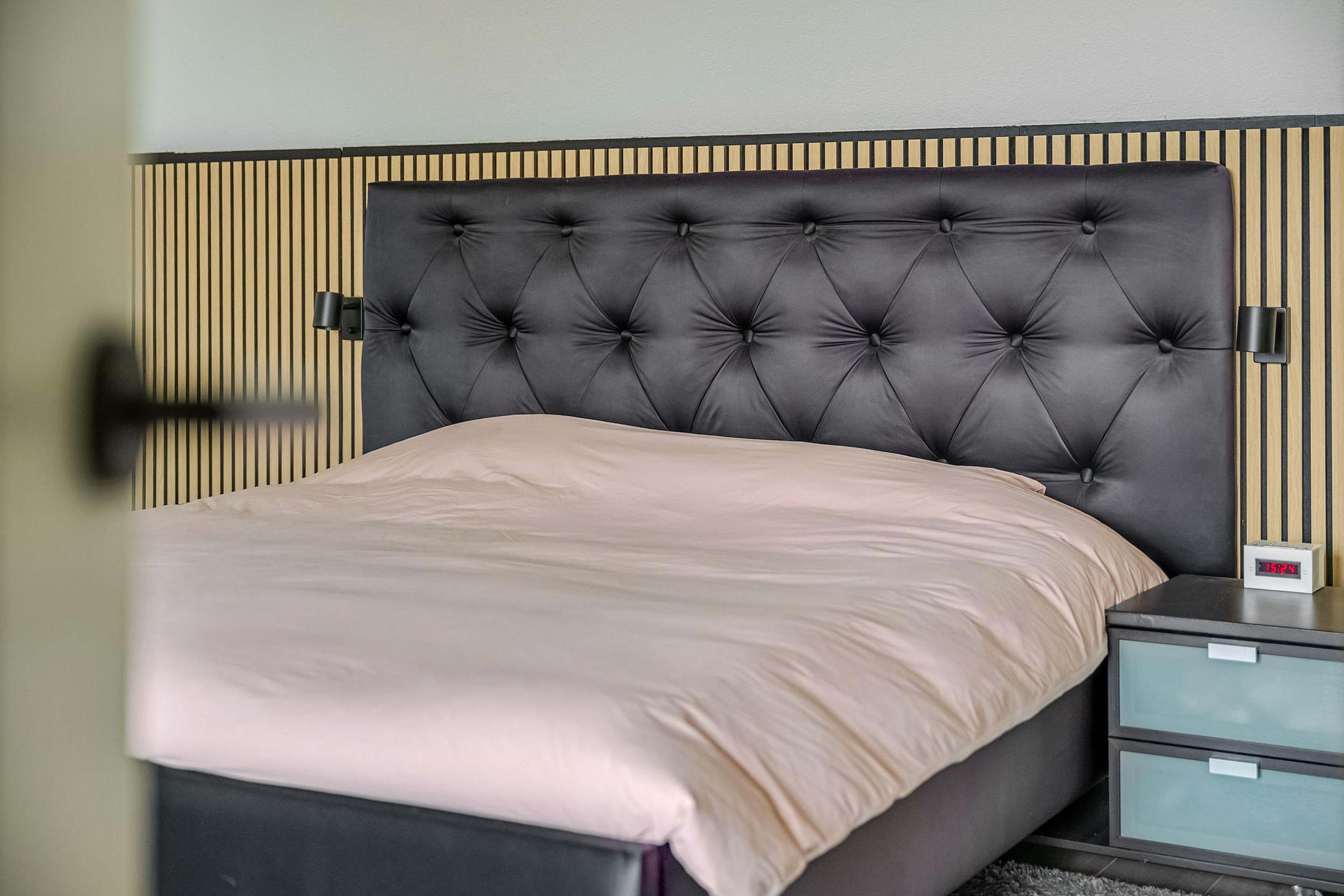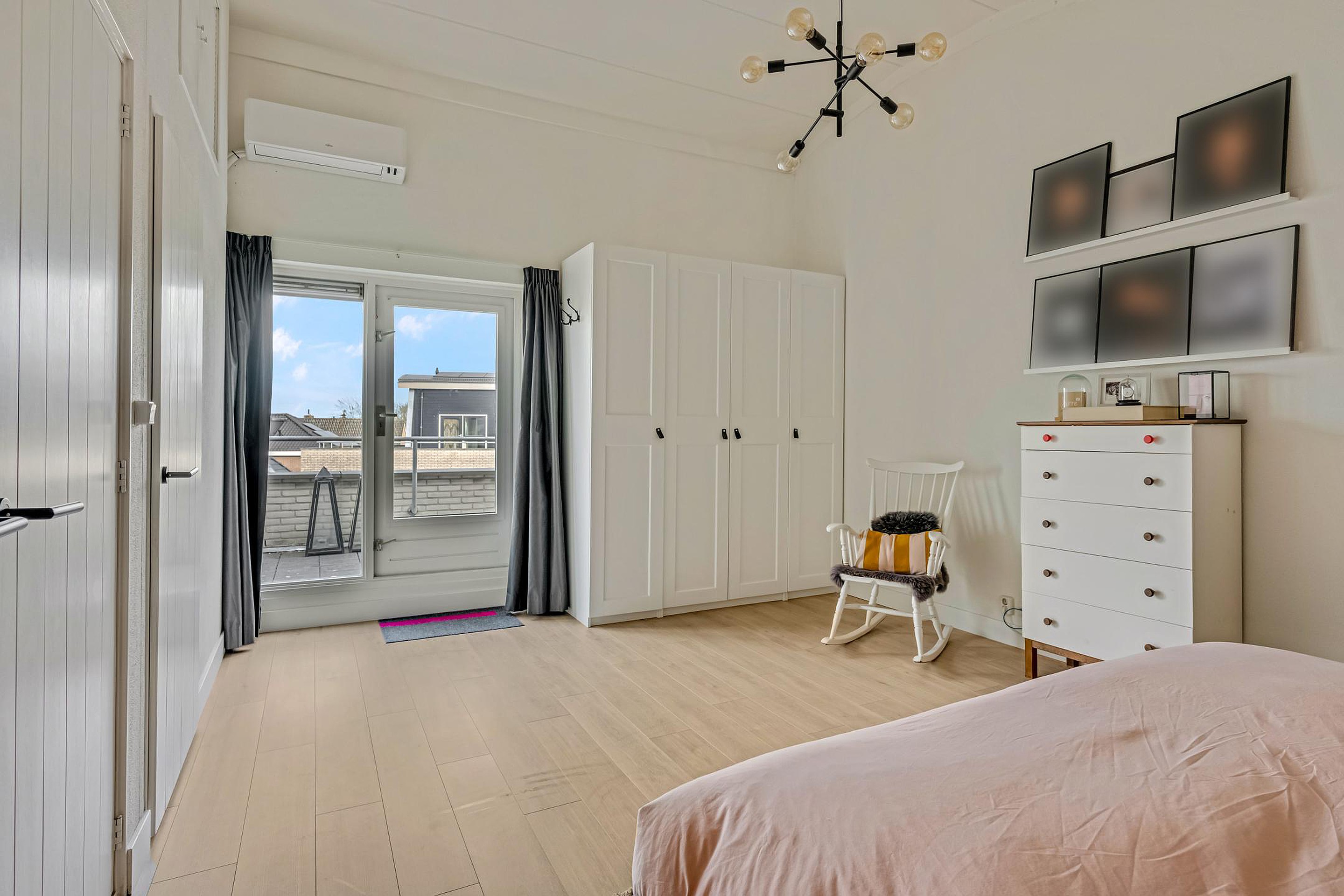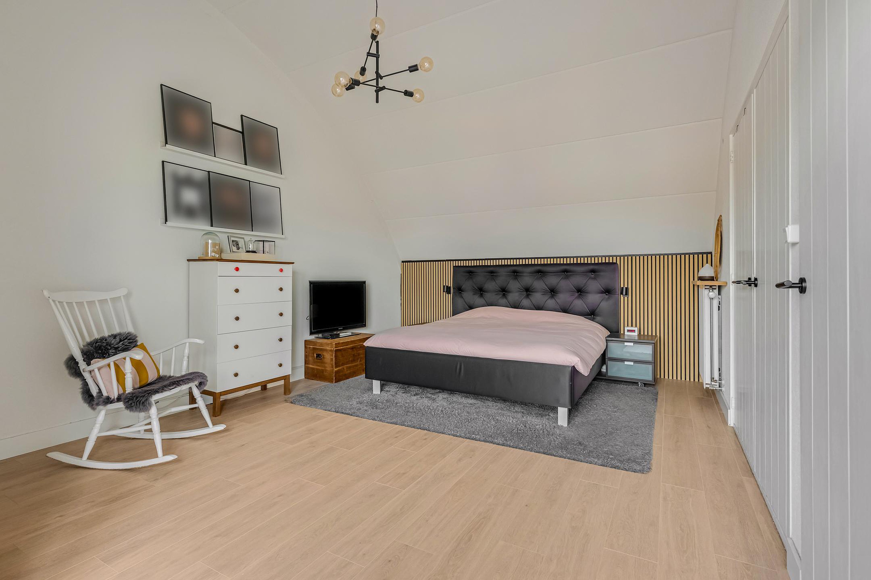 Op de tweede verdieping vindt u een royale vierde slaapkamer. Deze ruimte is prachtig afgewerkt, met zicht op de ronde dakvorm en een fijne nokhoogte van circa 3,6 meter. Hierdoor voelt de verdieping bijzonder ruimtelijk aan. Daarnaast beschikt u hier over veel bergruimte én heeft u toegang tot een heerlijk dakterras, waar u ’s ochtends volop van de zon geniet. Ook deze verdieping is voorzien van laminaat.