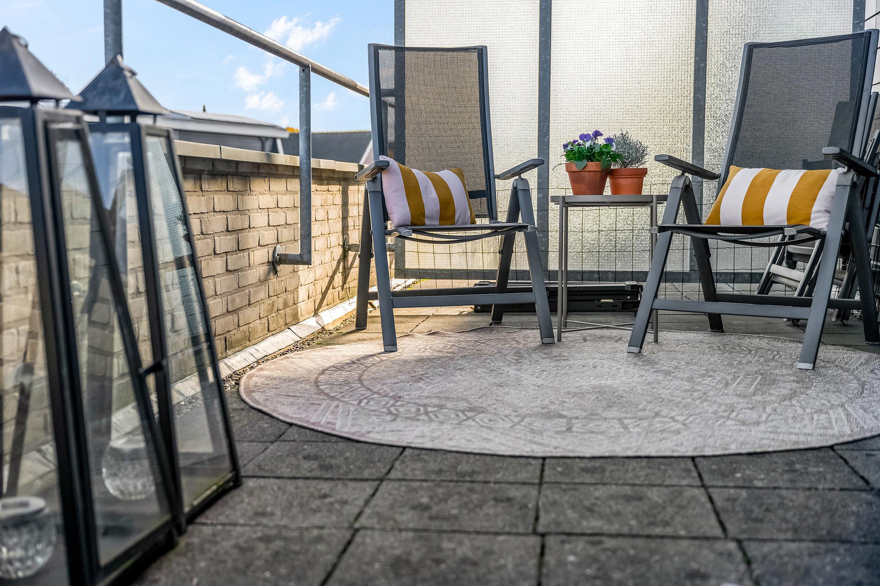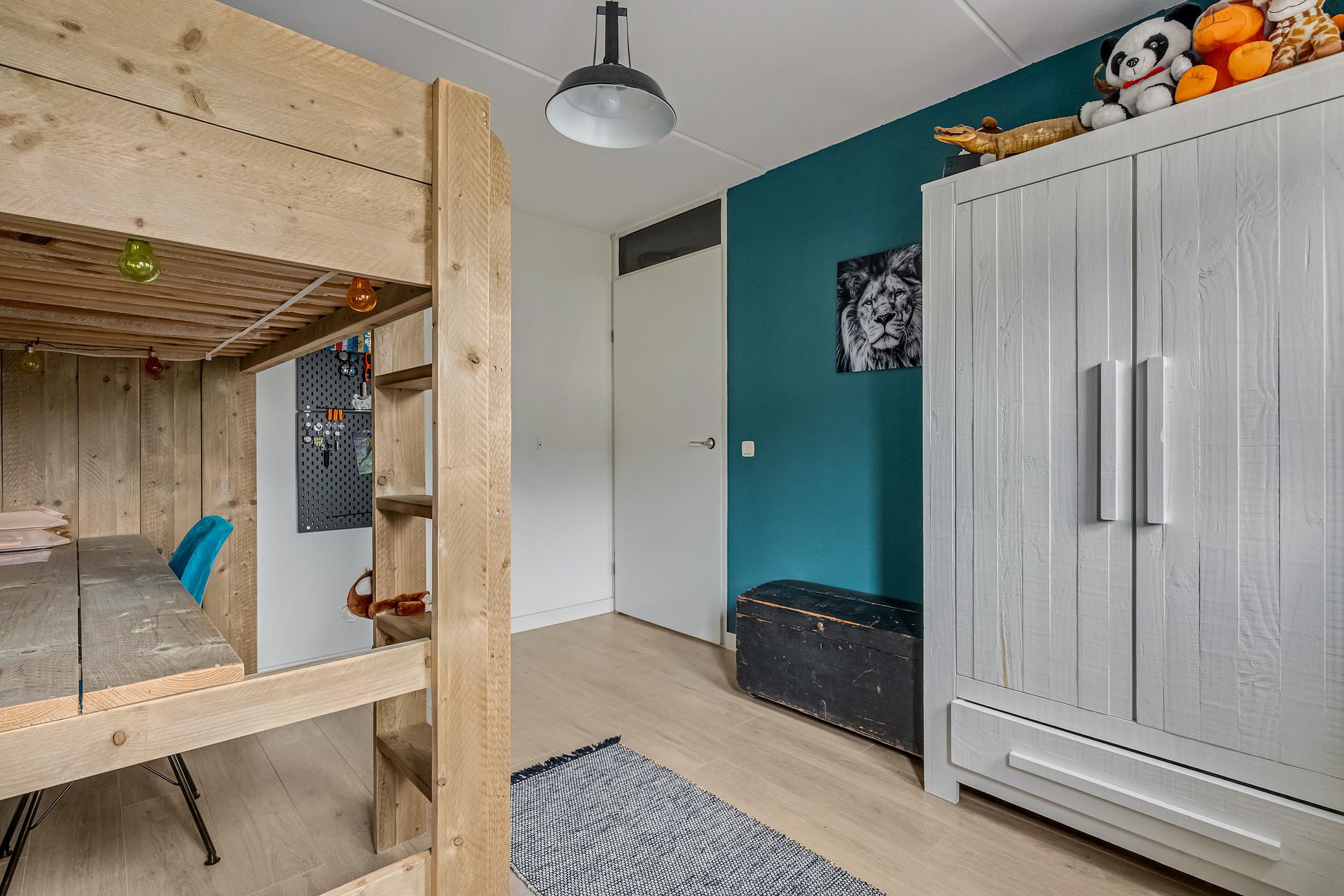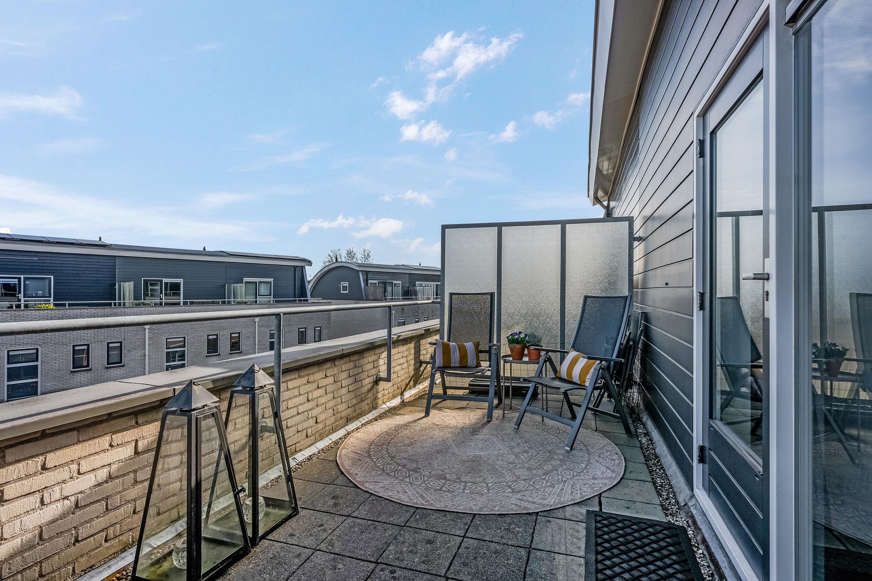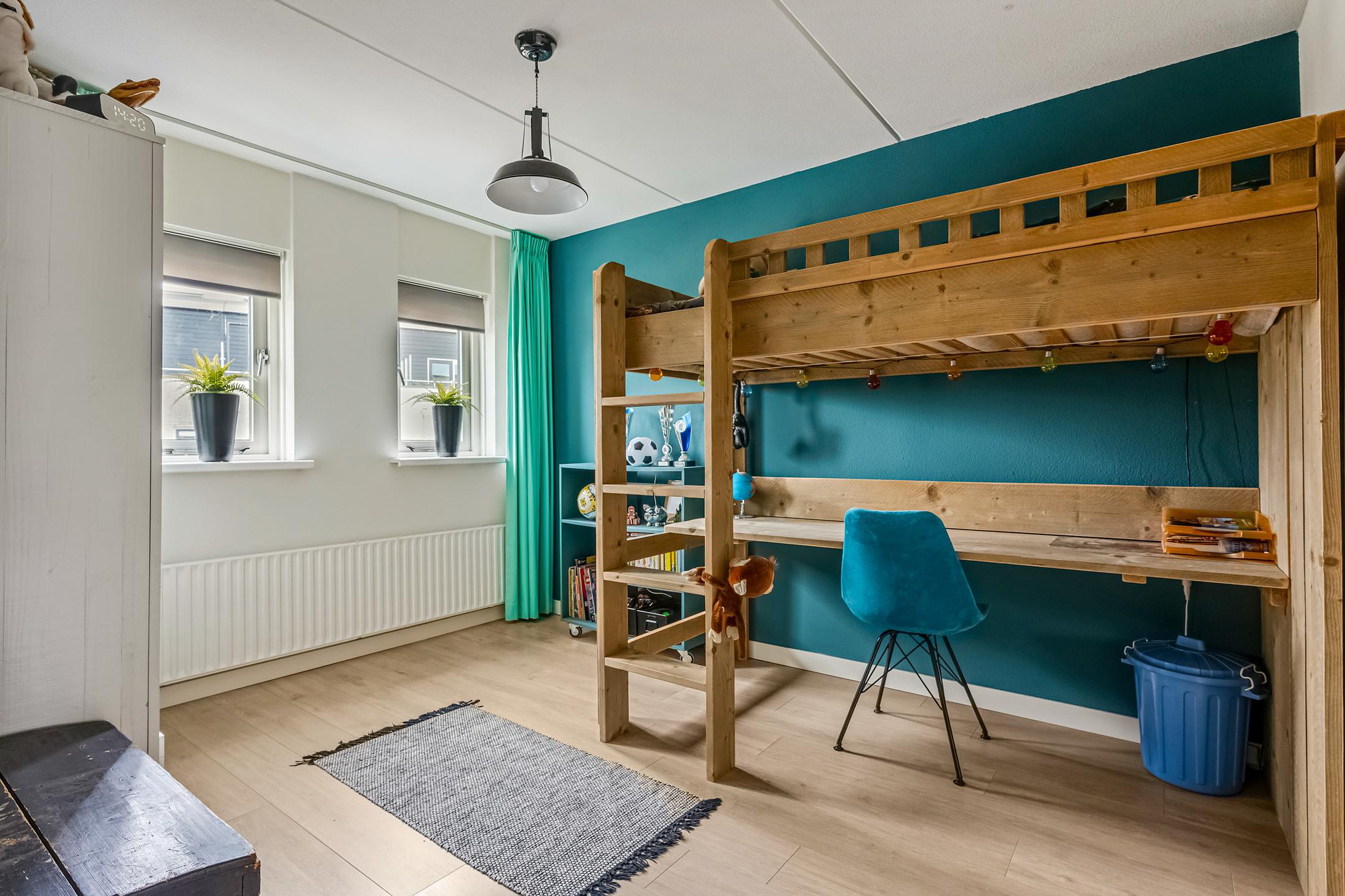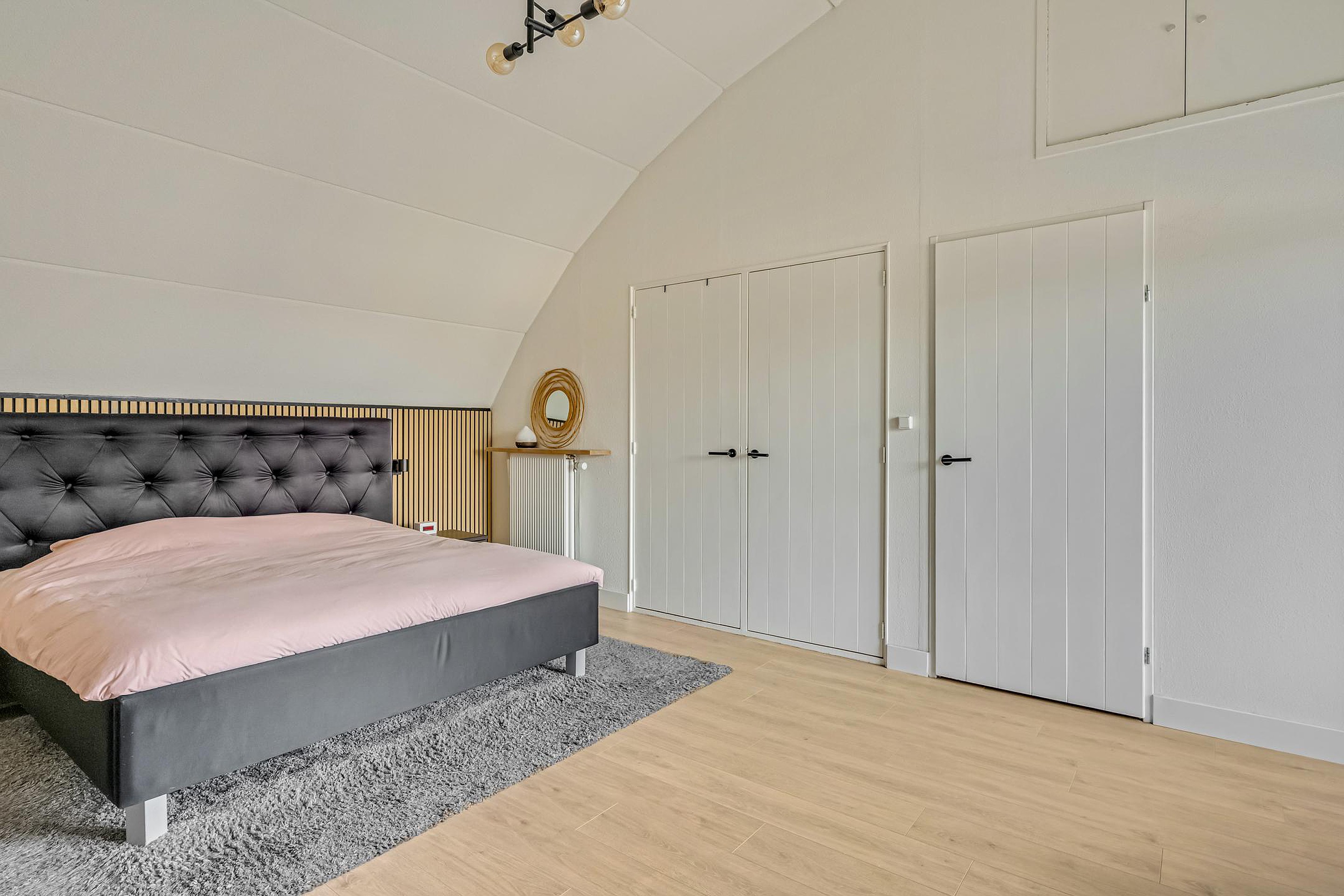 Op de tweede verdieping vindt u een royale vierde slaapkamer. Deze ruimte is prachtig afgewerkt, met zicht op de ronde dakvorm en een fijne nokhoogte van circa 3,6 meter. Hierdoor voelt de verdieping bijzonder ruimtelijk aan. Daarnaast beschikt u hier over veel bergruimte én heeft u toegang tot een heerlijk dakterras, waar u ’s ochtends volop van de zon geniet. Ook deze verdieping is voorzien van laminaat.