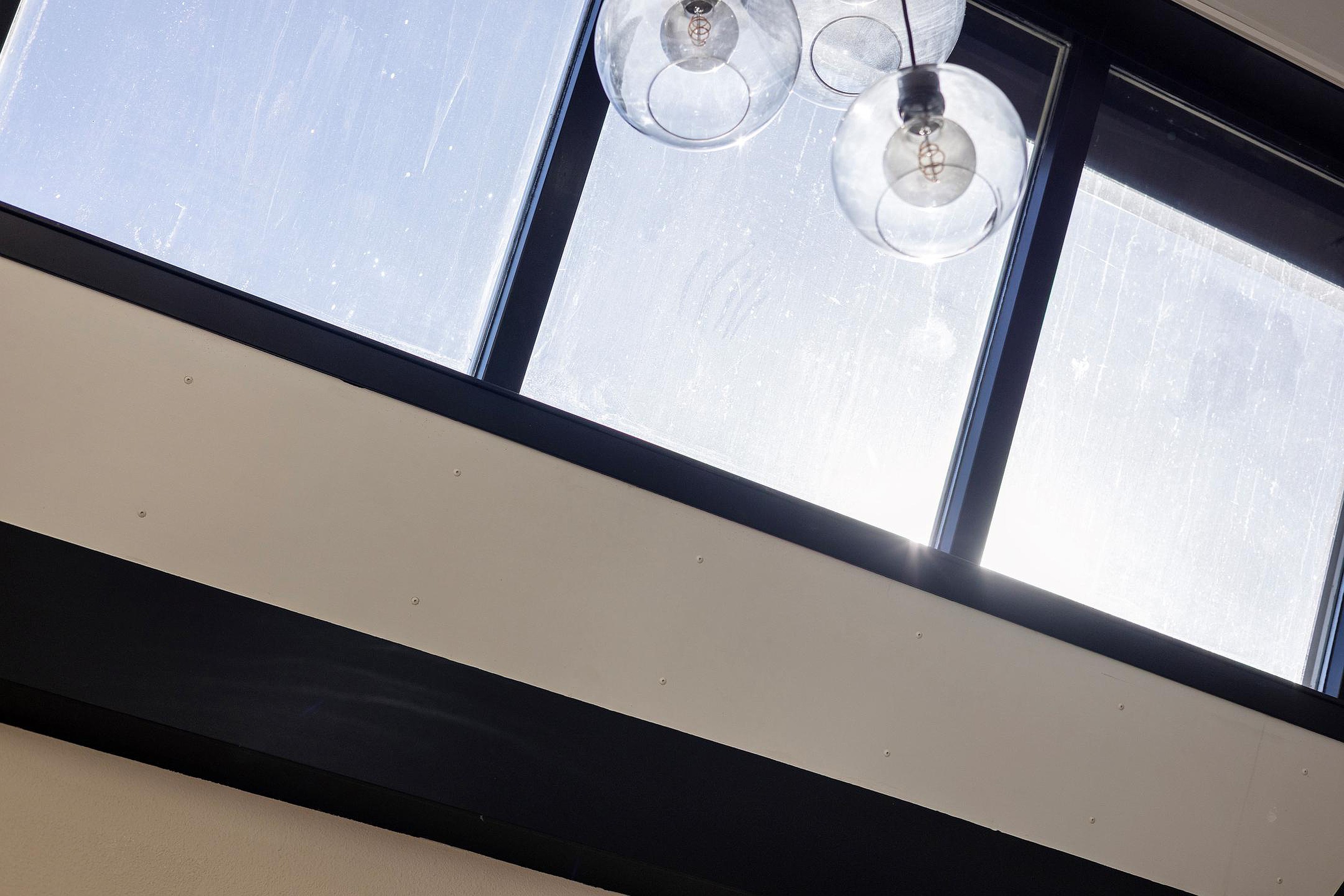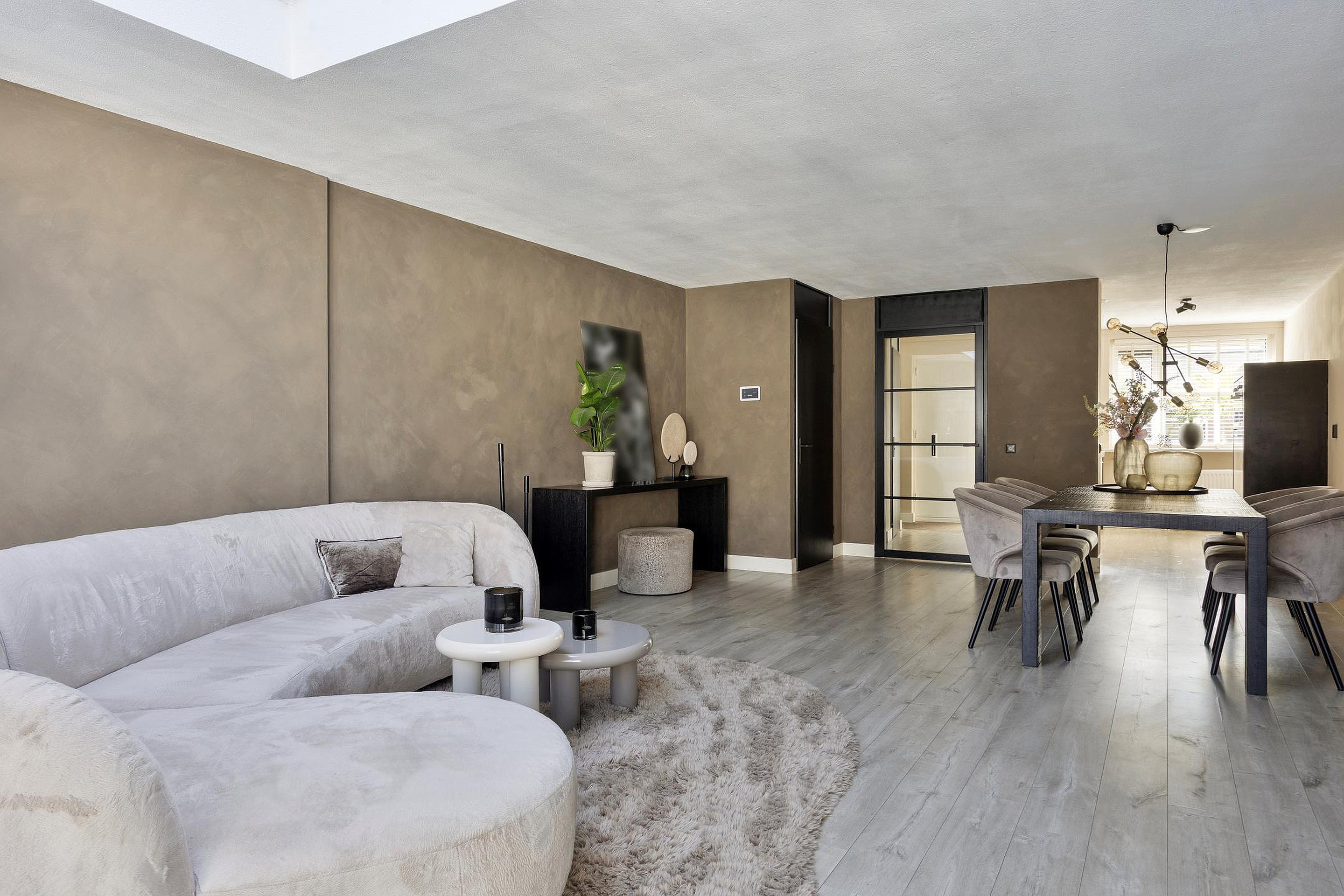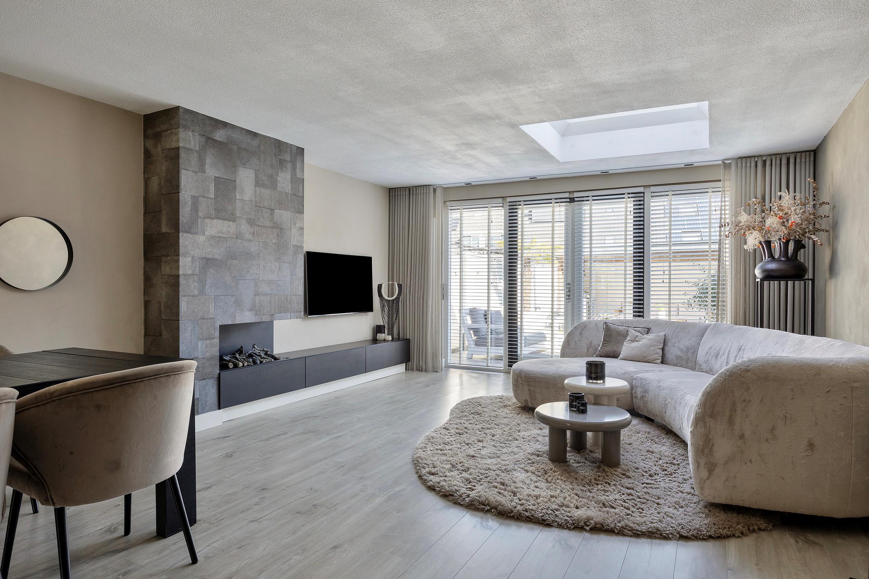 De woonkamer verwelkomt u met een ruimtelijk en open karakter en heeft een moderne uitstraling met een luxe afwerking. Dankzij de grote raampartijen en de lichtstraat baadt de ruimte in een overvloed aan natuurlijk daglicht, wat het geheel extra aantrekkelijk maakt.