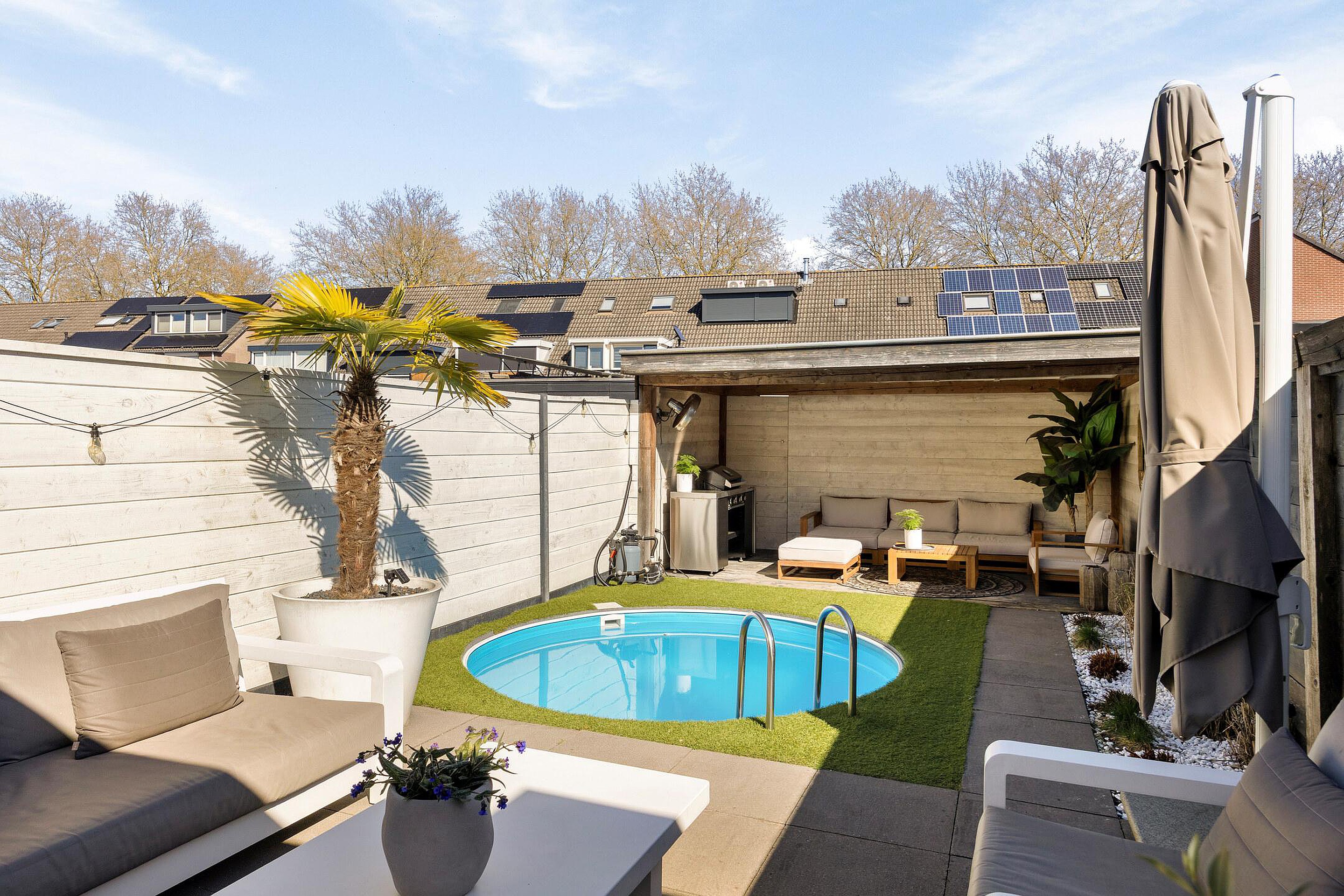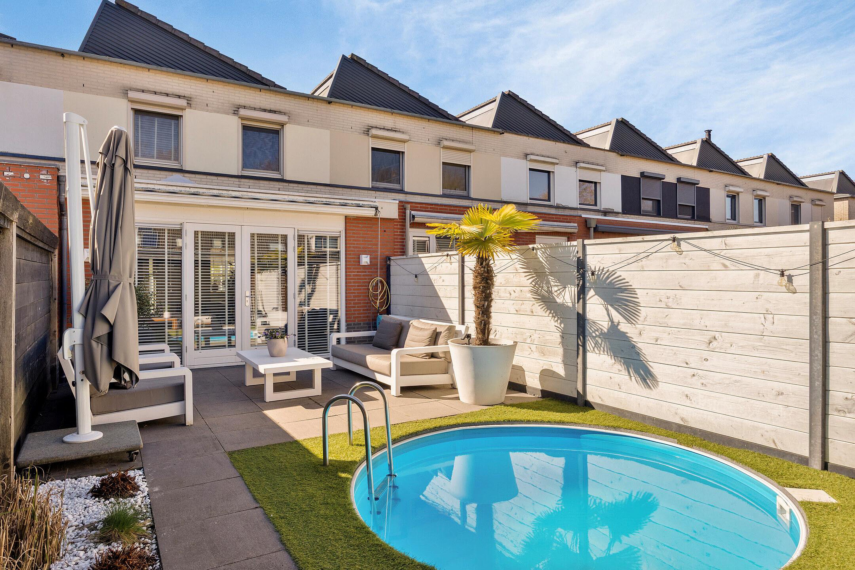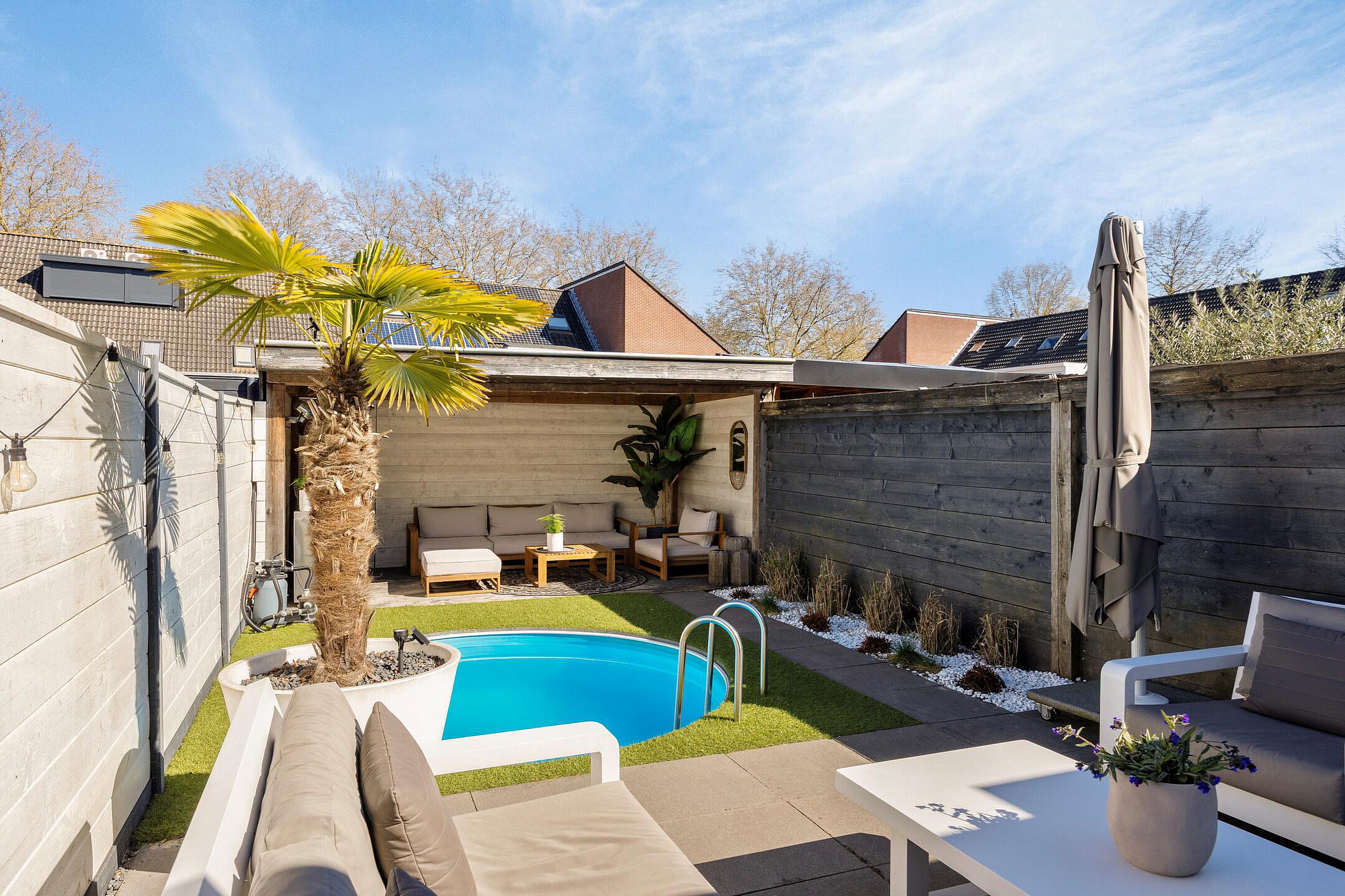 De sfeervolle achtertuin vormt een absoluut hoogtepunt: een fraai aangelegd geheel met een luxe zwembad en een stijlvolle veranda, waar u in alle rust kunt ontspannen en genieten van het buitenleven. Een unieke kans voor wie op zoek is naar een comfortabele en instapklare woning met een exclusieve uitstraling.