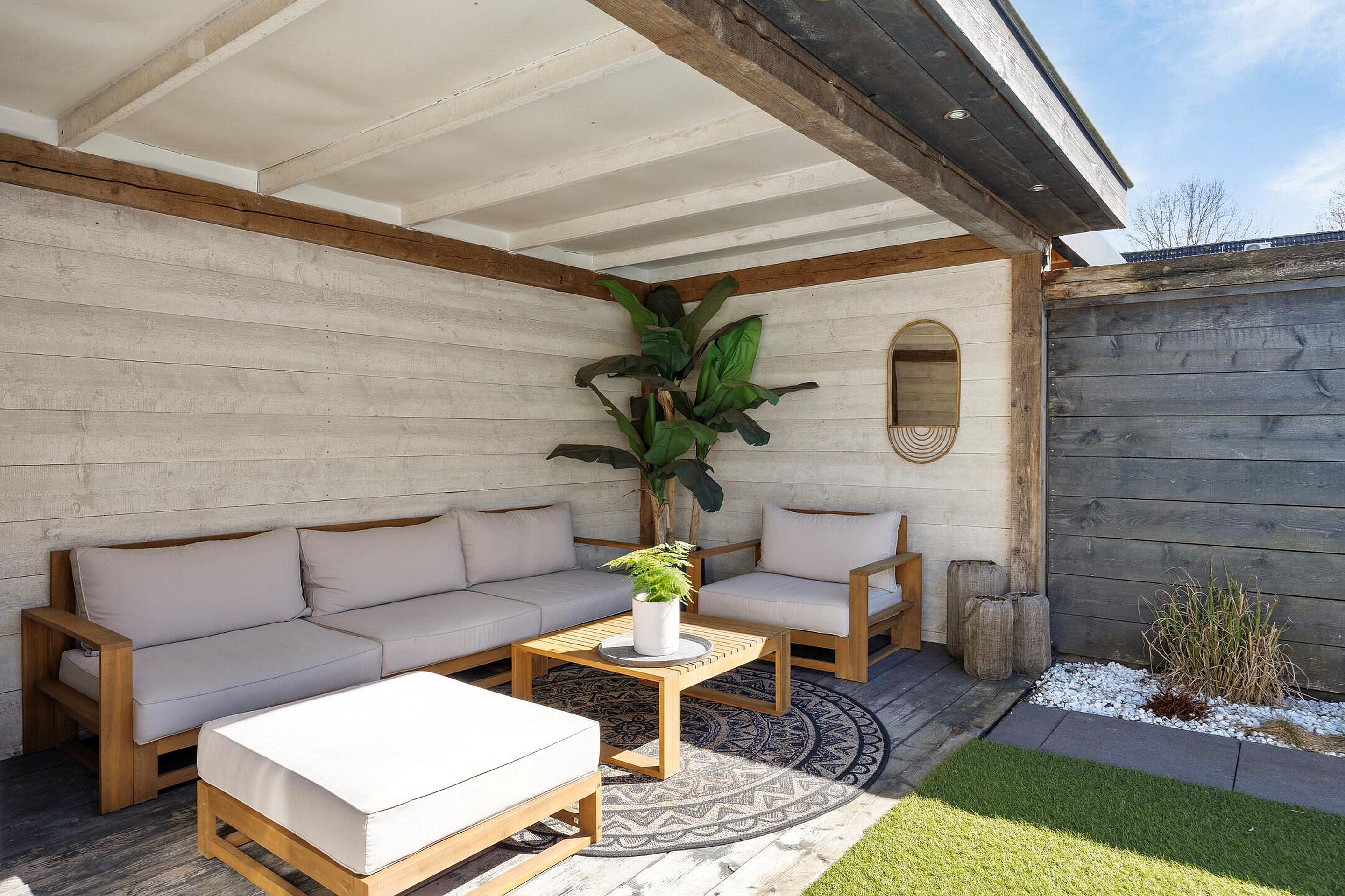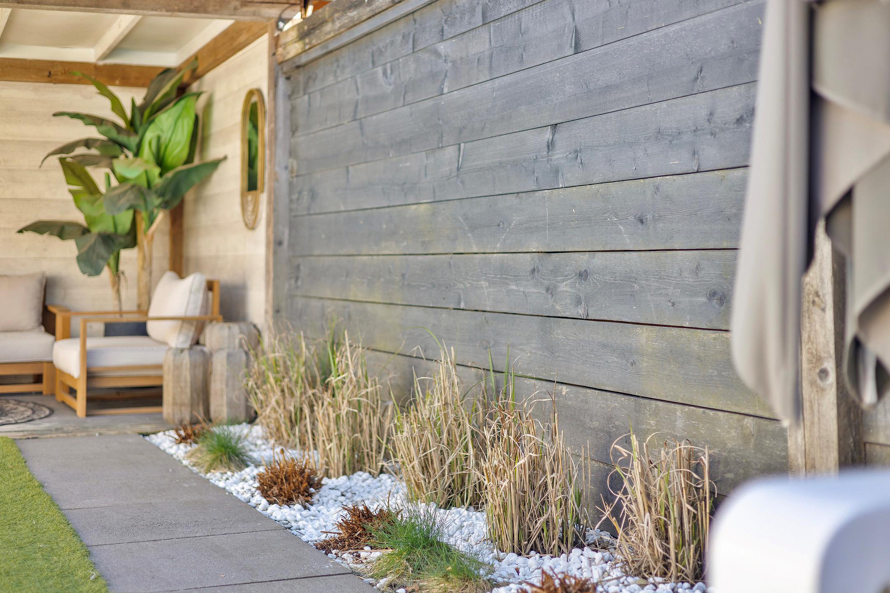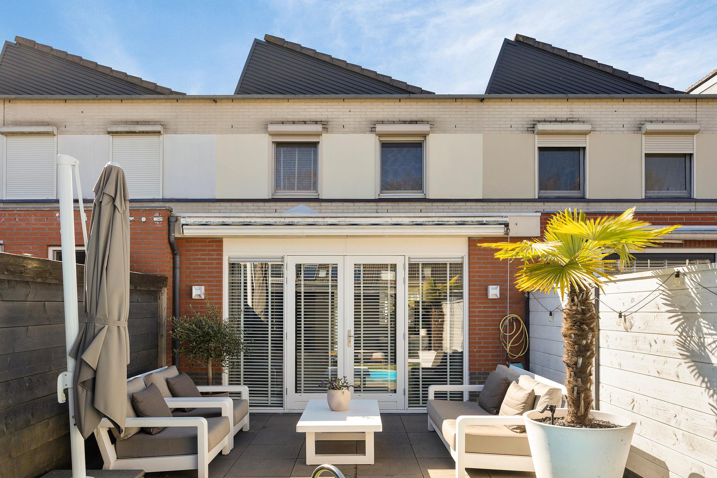 De achtertuin is een stijlvolle en uitnodigende buitenruimte waar comfort en luxe samenkomen. De strakke bestrating wordt speels afgewisseld met groen, wat zorgt voor een moderne en ontspannen sfeer. Het royale terras biedt volop ruimte voor meerdere zitplekken, ideaal om te loungen of gezellig te dineren met vrienden en familie.