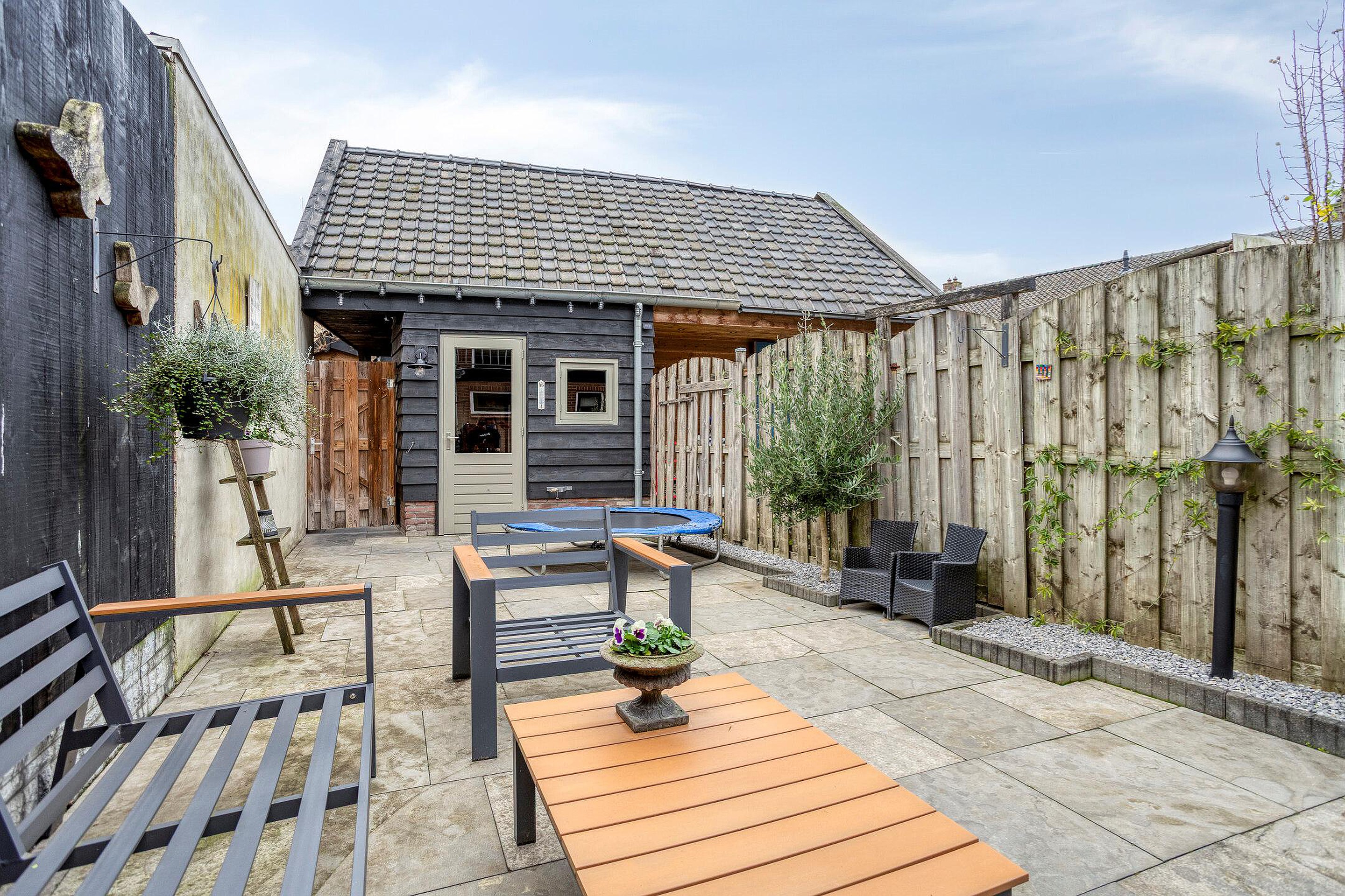 De achtertuin met grote berging en achterom maakt het plaatje compleet: hier geniet u van ruimte en volop mogelijkheden voor ontspanning. Of u nu graag buiten eet, een hobbyruimte zoekt of kinderen alle speelruimte wilt bieden, deze tuin past zich moeiteloos aan uw woonwensen aan. Een sfeervol, instapklaar huis waar de authenticiteit van het bouwjaar bewaard is gebleven, maar waar u tegelijk profiteert van hedendaags gemak en een doordachte indeling.