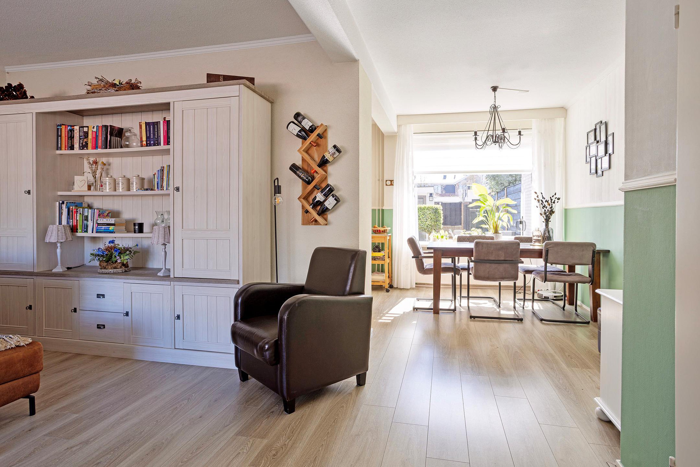 De woonkamer vormt het hart van de begane grond en valt direct op door de ruime opzet en de prettige lichtinval. Hier heeft u alle ruimte om een comfortabele zithoek te creëren en daarnaast een gezellige eethoek te plaatsen. De open indeling zorgt voor een fijne verbinding tussen de verschillende leefruimtes. Ook is hier de trap naar de 1e verdieping.