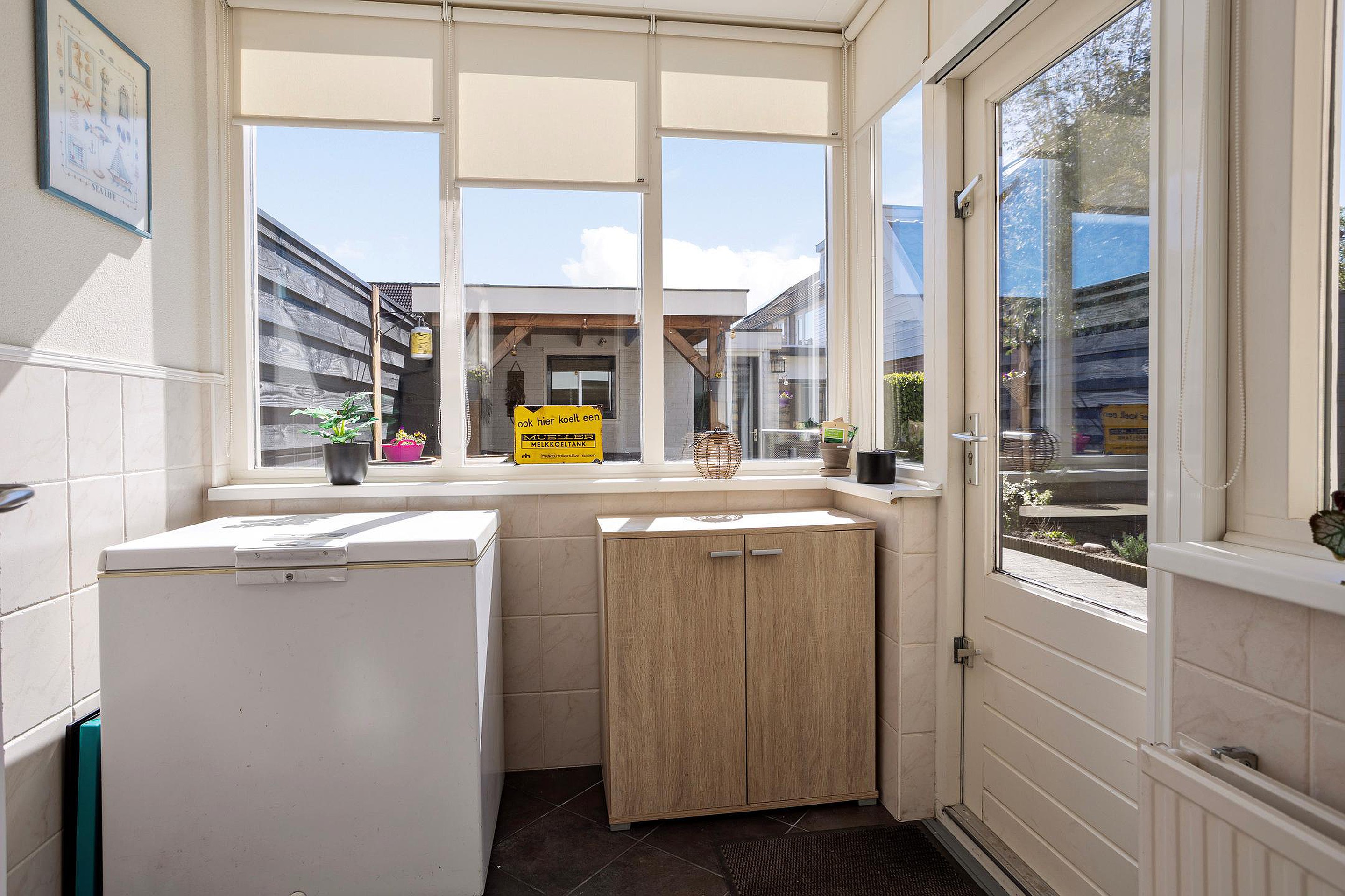 Aansluitend aan de keuken vindt u de bijkeuken, een praktische extra ruimte die ideaal is voor opslag en tevens toegang biedt tot de achtertuin.