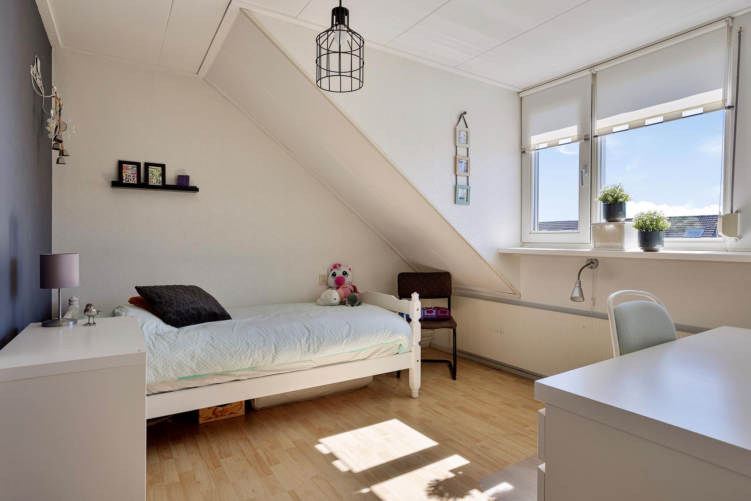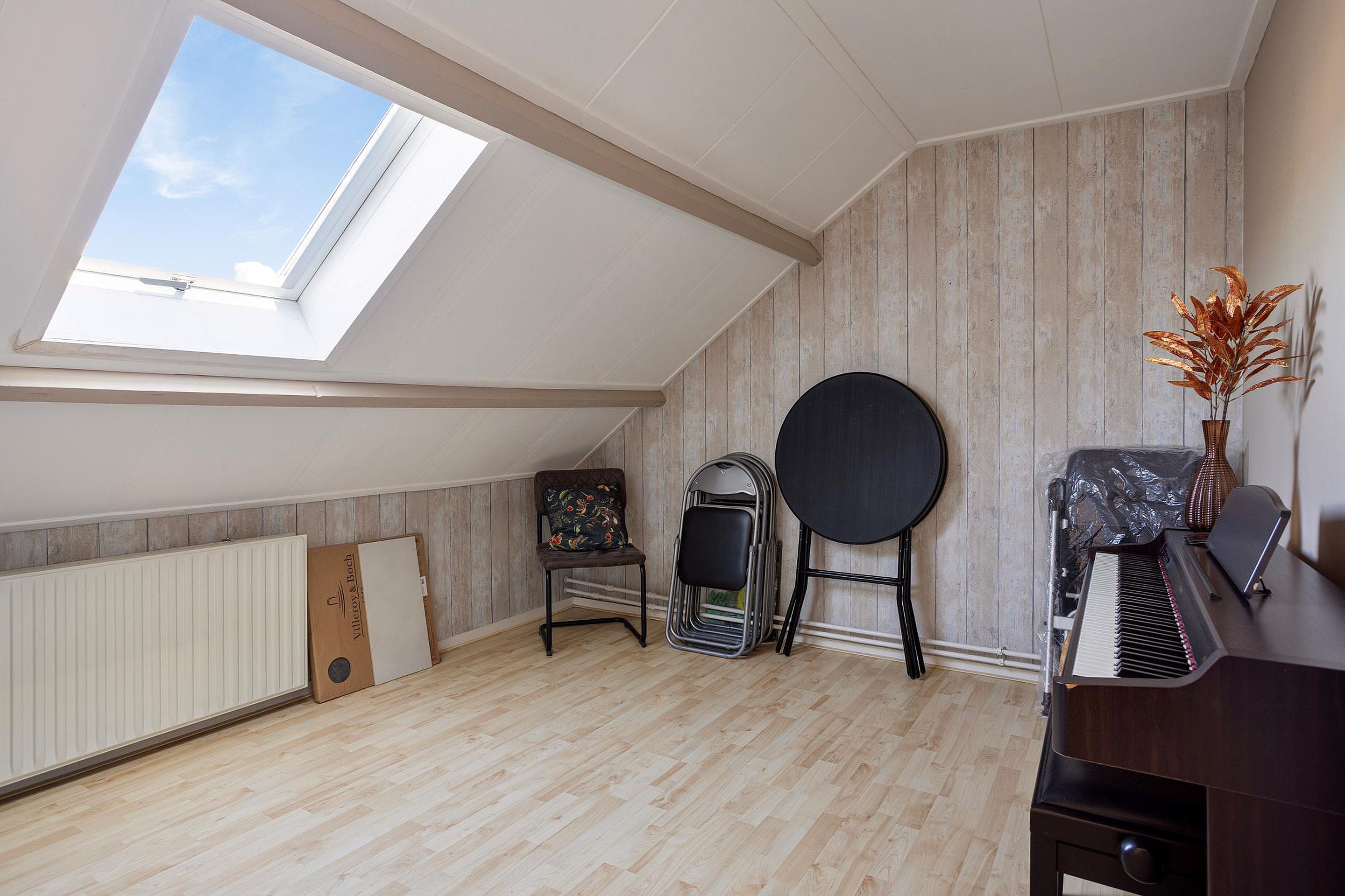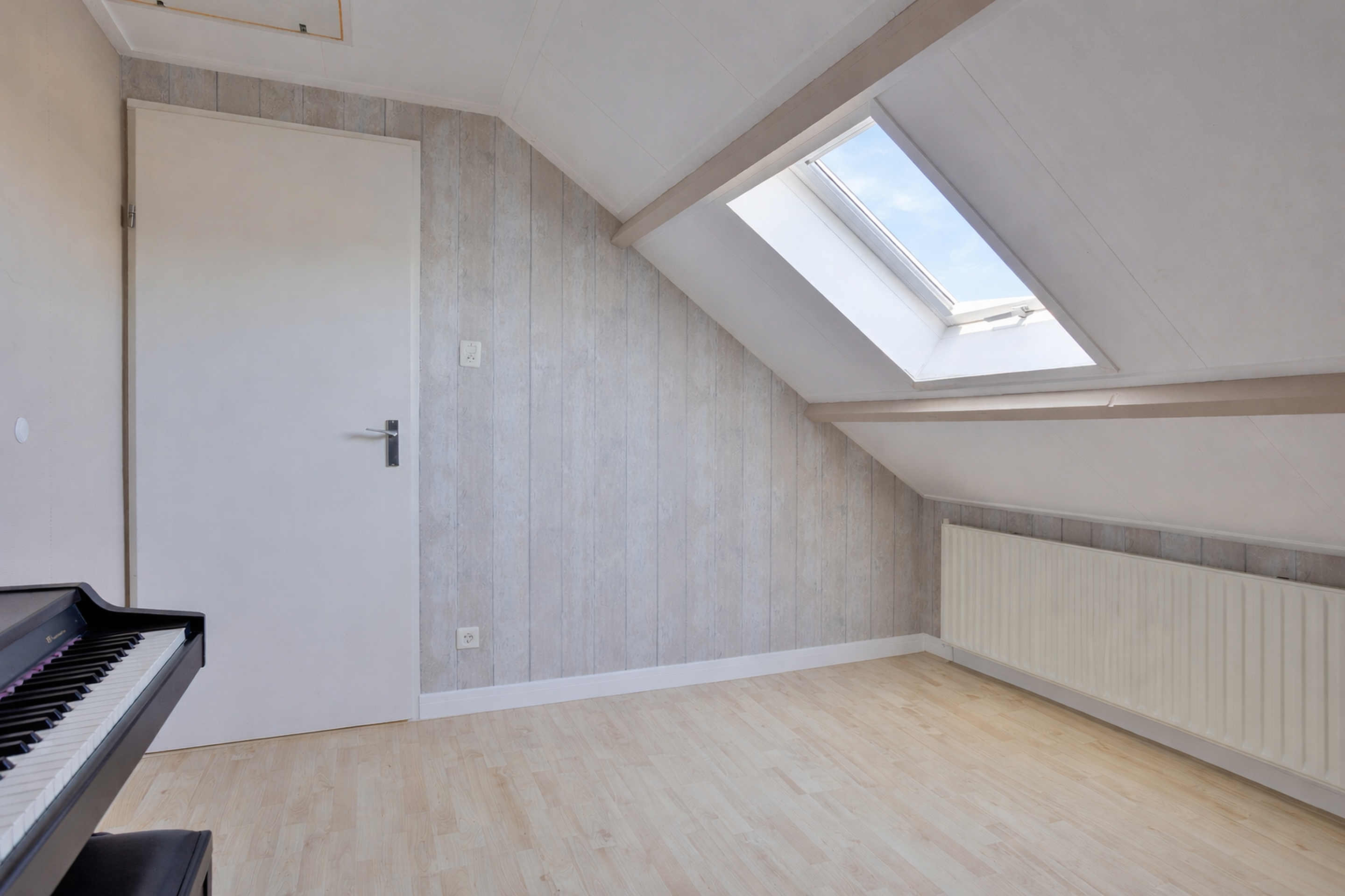 Via een vaste trap bereikt u de tweede verdieping, waar zich nog twee slaapkamers bevinden, gelegen in de punt van het dak. Ondanks de schuine wanden ervaart u hier verrassend veel ruimte. De overloop is eveneens royaal en de kamers zijn netjes onderhouden en praktisch in te richten.