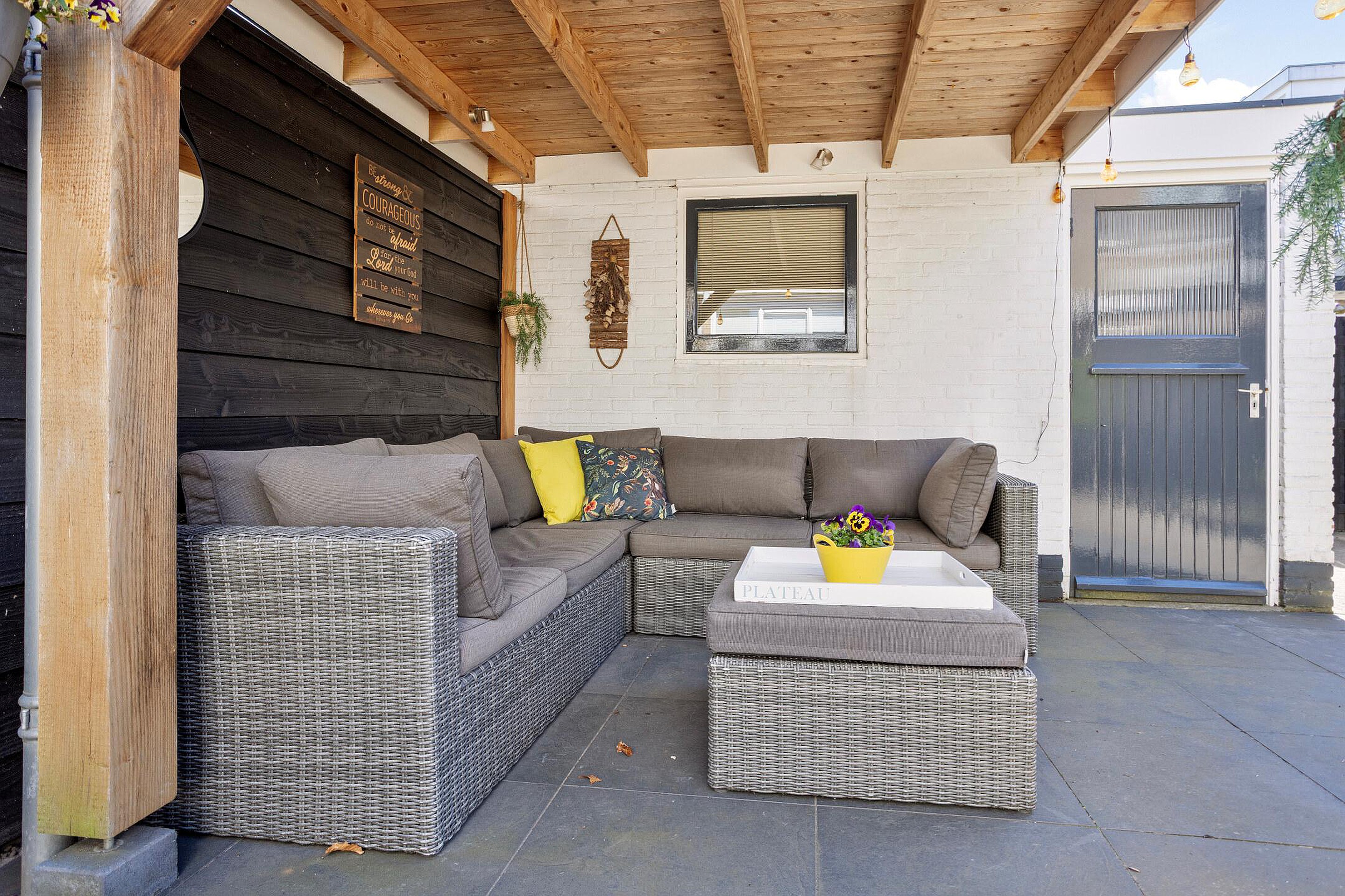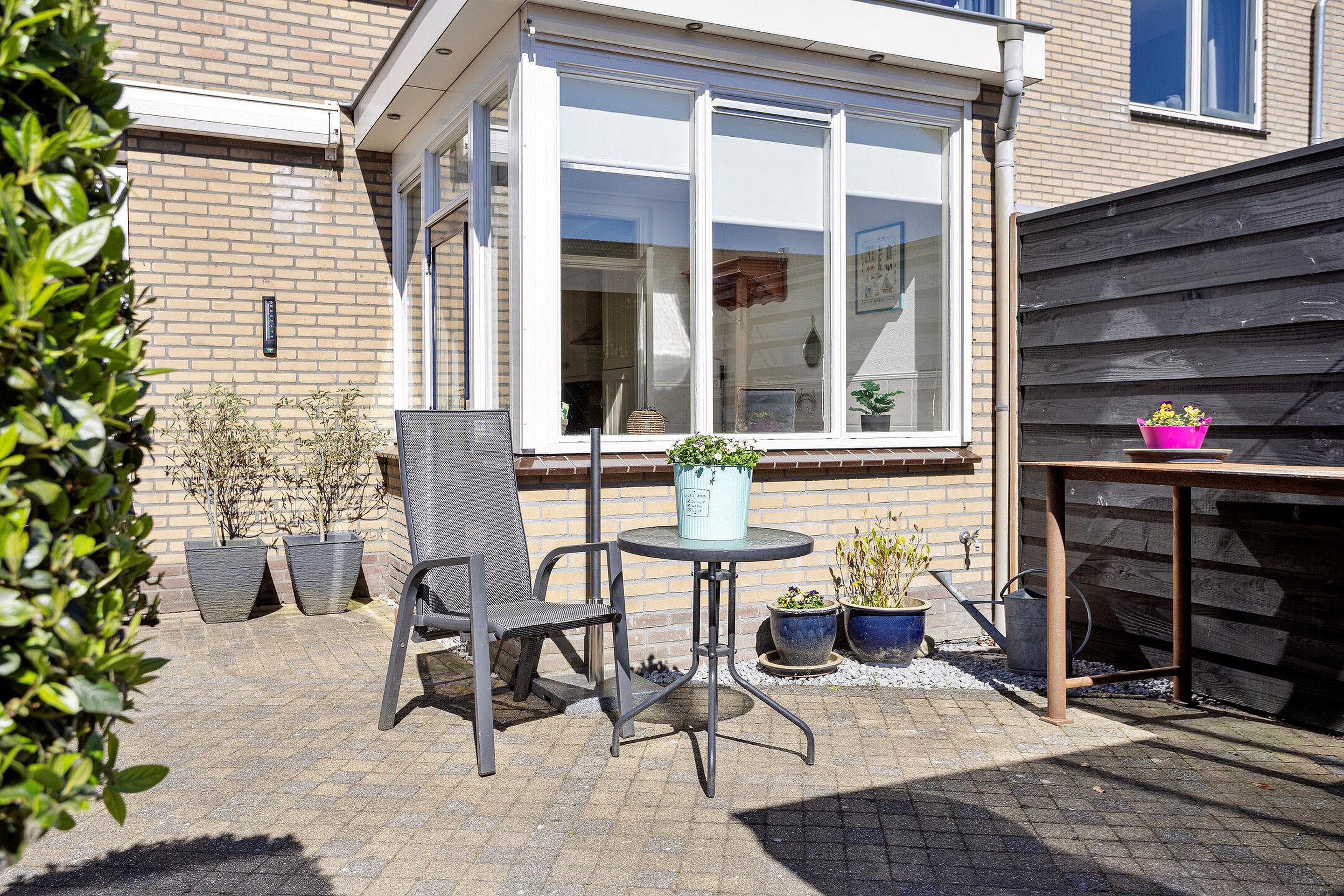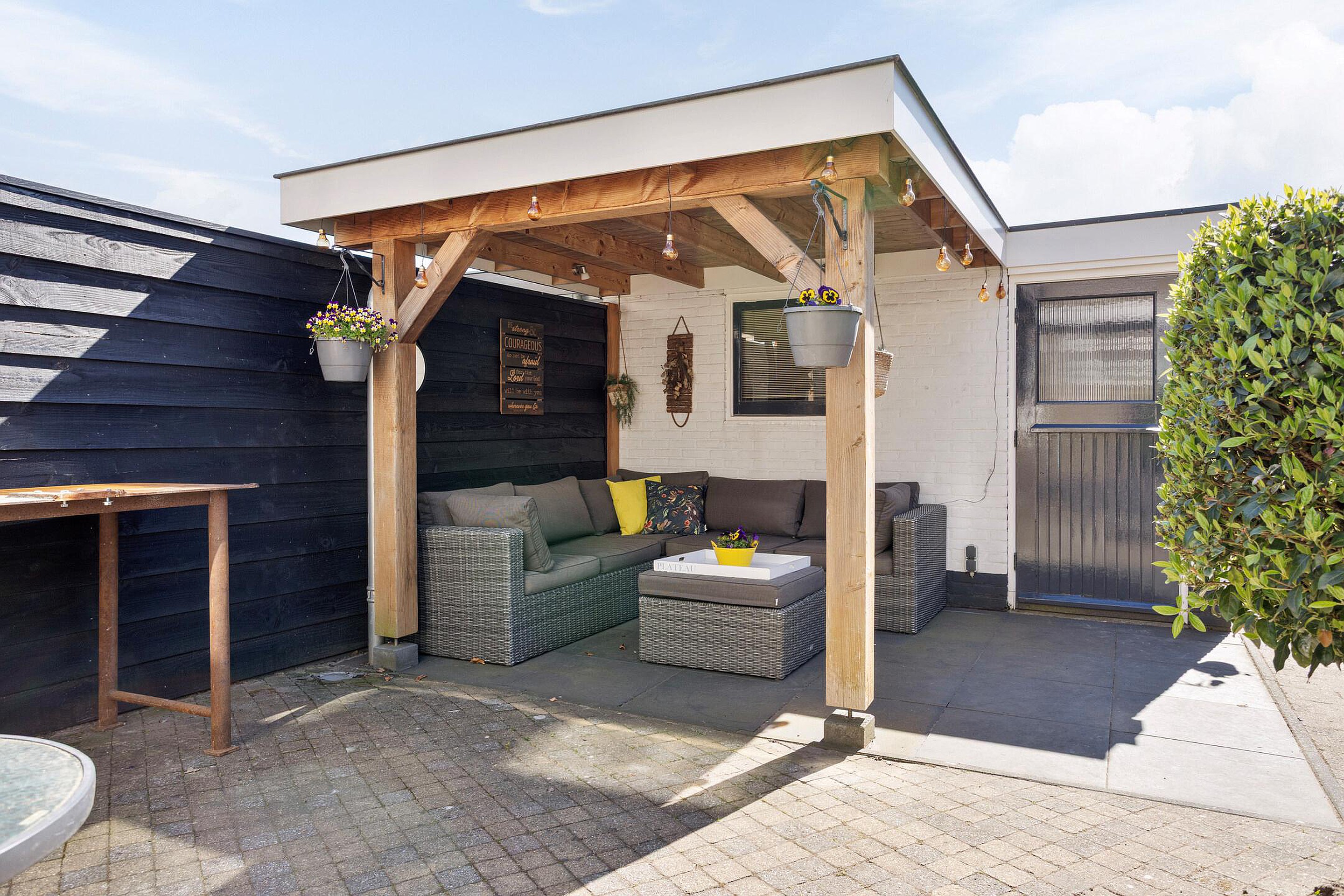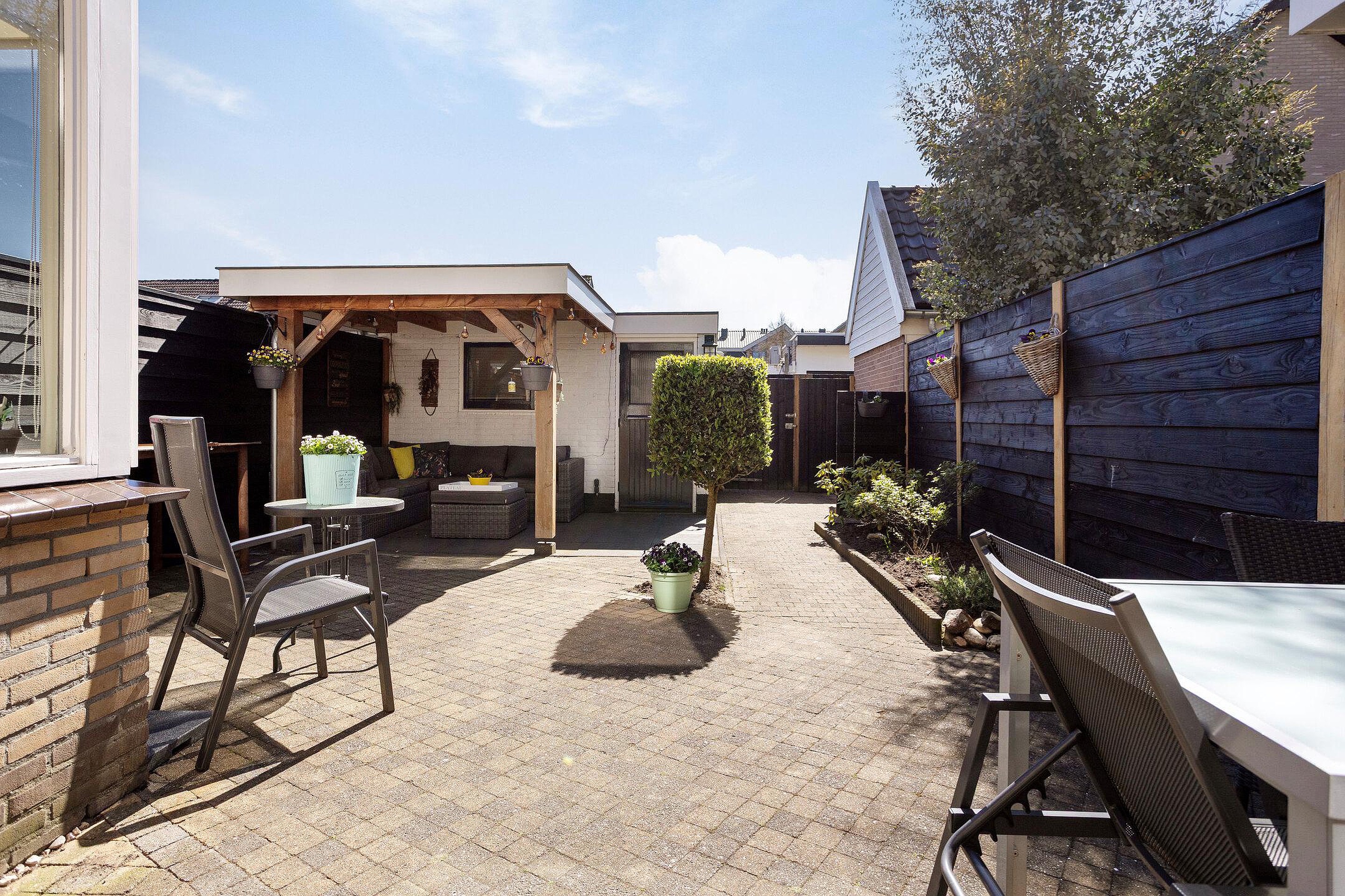 De zonnige achtertuin is onderhoudsarm aangelegd met bestrating en een prettige afwisseling van groen. U heeft hier volop ruimte om een terras in te richten en te genieten van het buitenleven. Daarnaast beschikt de tuin over een berging en een overkapping, ideaal voor extra opslag of een beschutte zitplek. De aanwezigheid van een achterom maakt het geheel extra praktisch.